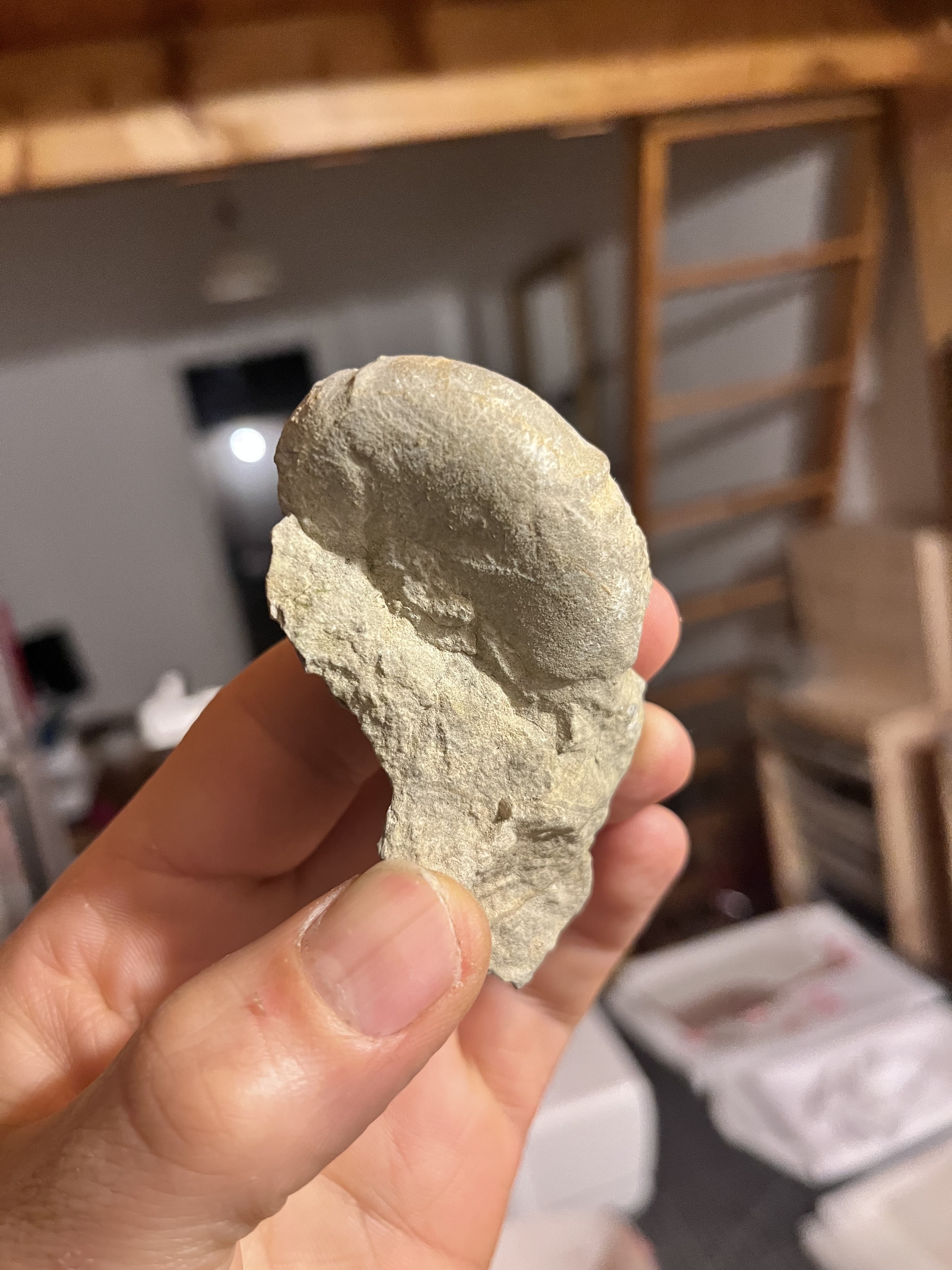 La forme fait penser à un oursin mais je ne pense pas, j’y vois des constrictions… ammonite, probablement Sowerbyceras comme l’a suggéré @hervé