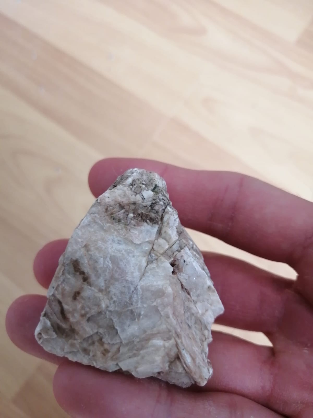 Barytine (avec silice qui a faussé le test de dureté). La deuxième photo est floue et la mise au point a été faite sur le bois de la table.