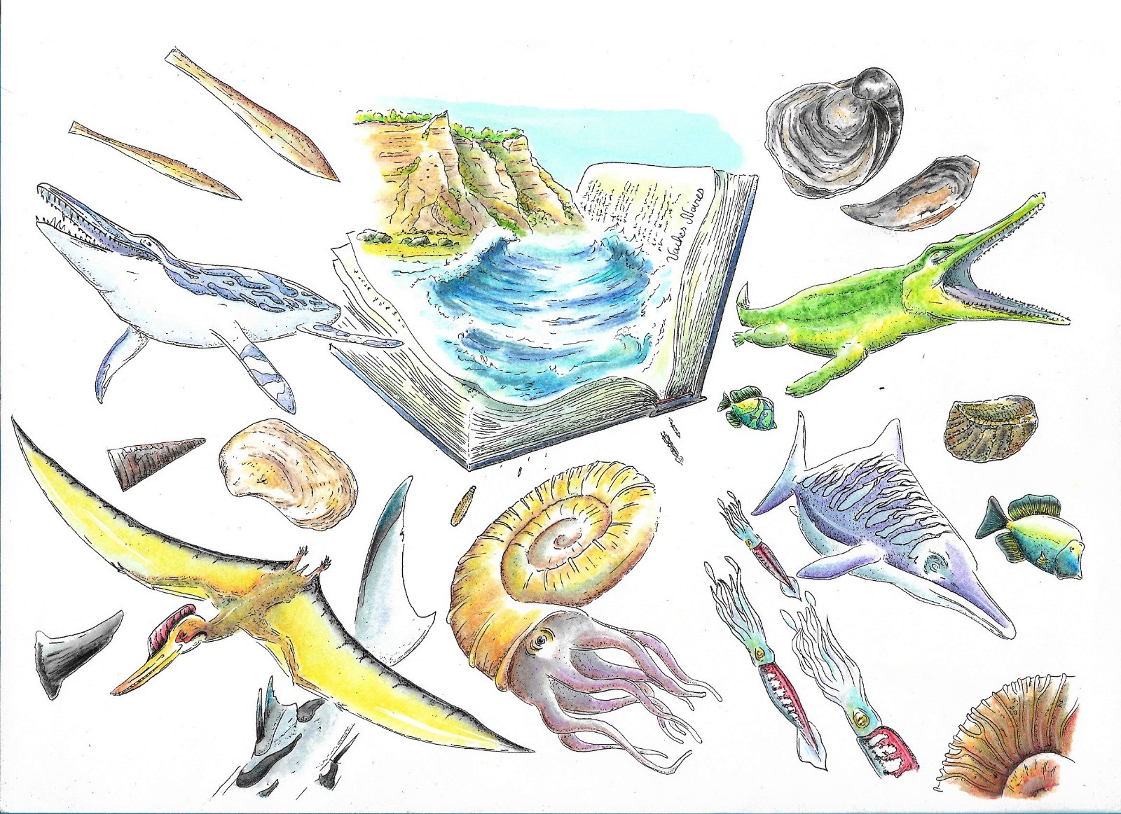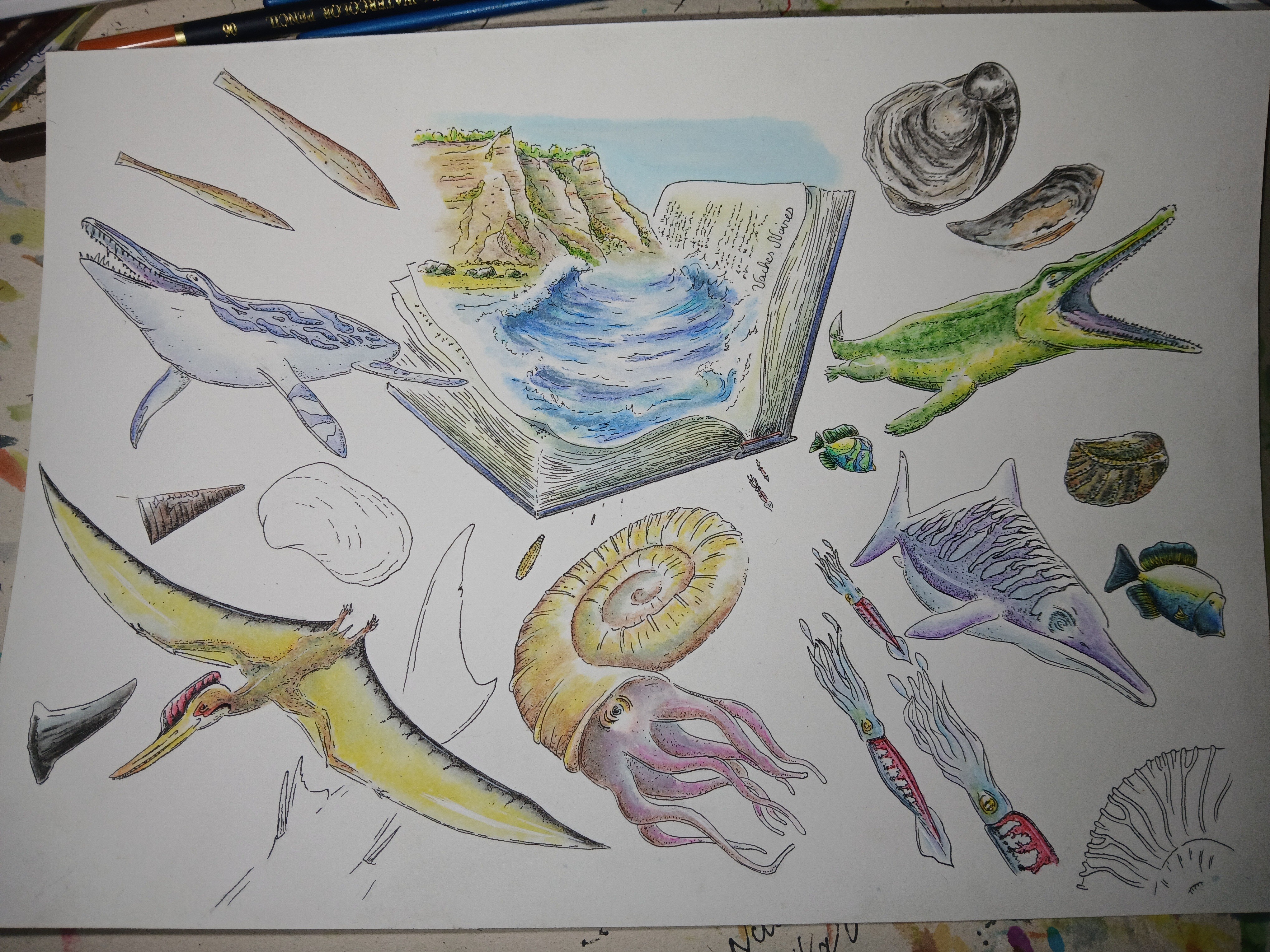 Joli comme toujours, par contre si cela représente le site des Vaches noires la présence de Ptérosaure n'est pas attesté à ce jour, de rares restes laisse l'entrevoir, mais aucunes publications n'as encore validés la présence de ce groupe, pareil pour les tortues pourtant très abondantes au Kimméridgien du secteur du Havre