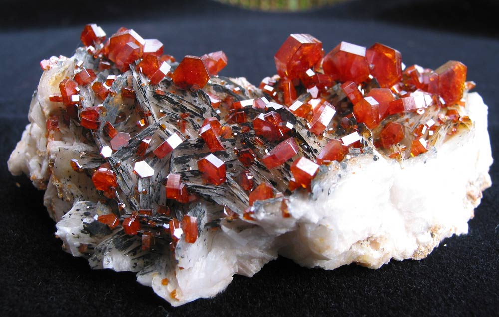 Bonsoir, toutes vos cristaux de vanadinite sont très beaux, les autres minéraux du Maroc sont pas mal du tout, voici une vanadinite sur baryte crêtée givrée de calcite de 8cm x 6cm. Personnellement, je la mets dans l'eau de temps à autre, ça ravive les couleurs.