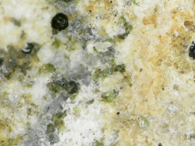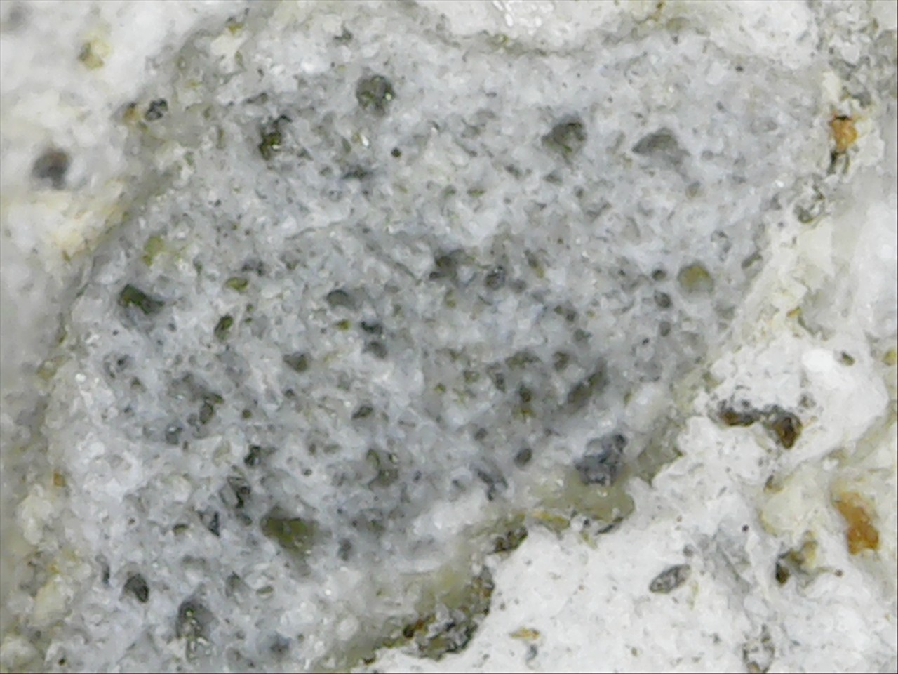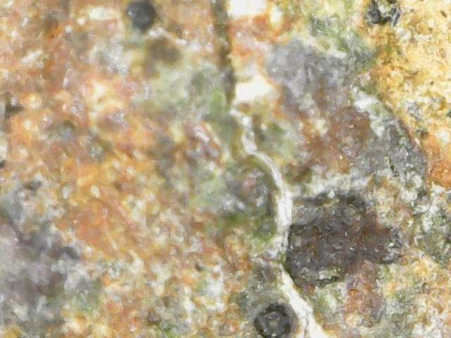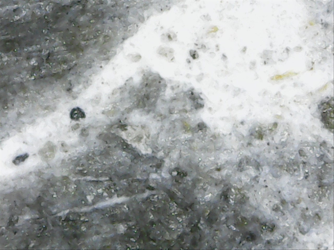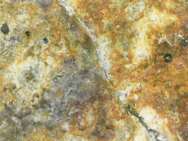 Bonjour, Aujourd'hui pour conclure  comme il fait un temps pourri j'ai pris en photo du seul morceau que j'ai conservé au sec à domicile, de même des macros de la face  poncée et non plus de la gangue. Cette face grise est faite de groupes de cristaux encerclés de silices comme des cellules sous le microscope. Voilà suite et fin pour cette roche que je trouve belle. Je suis désolée de vous avoir ennuyée avec cette roche, je cherchais juste une réponse. J'avais trouvé des concordances mais je bloquais à chaque fois avec la densité qui ne correspondait pas: marbre, serpentinite, basalte, grès, gypse. Je vais rester sur les brèches monogéniques comme c'était suggéré ici et les roches carbonifères ou la densité peut correspondre.