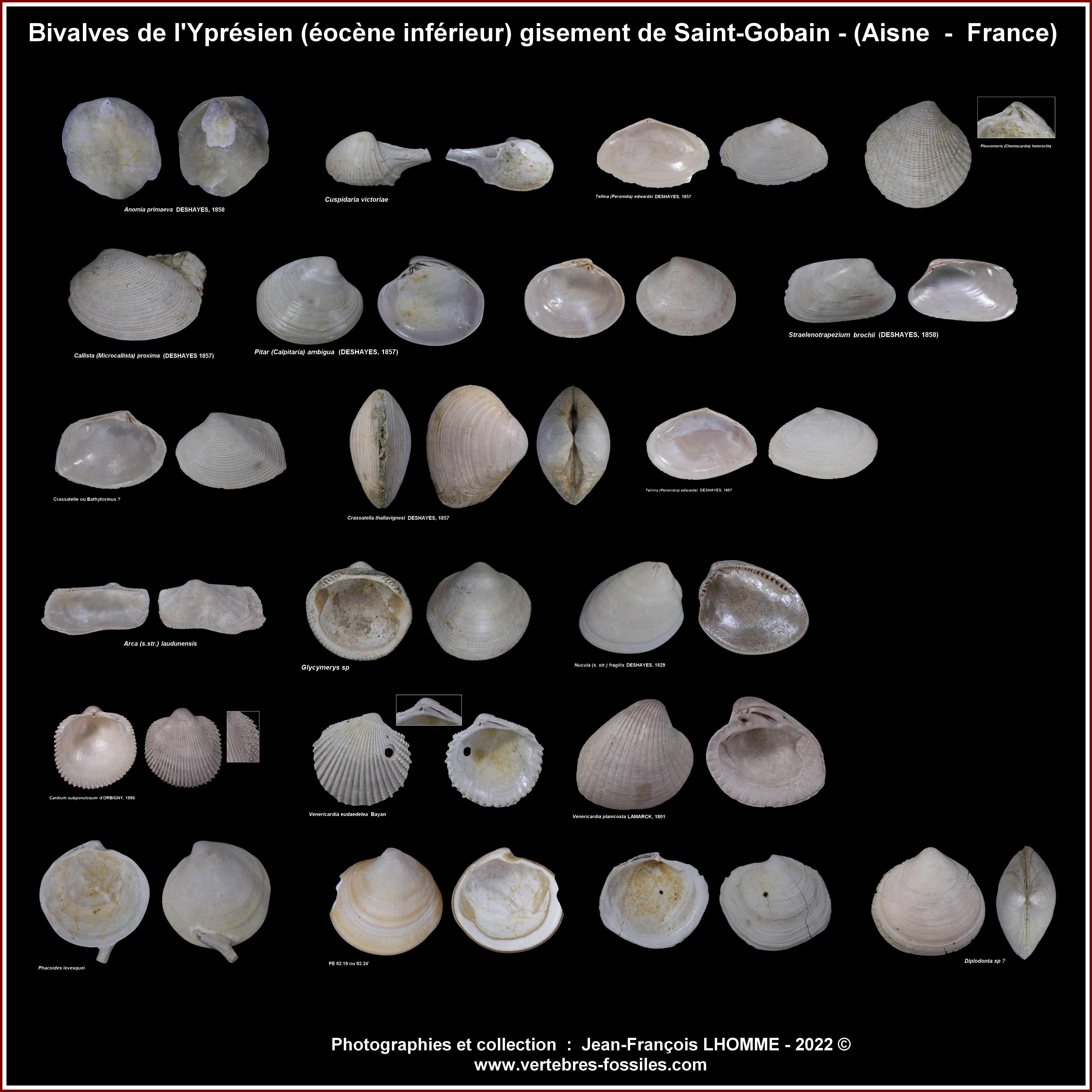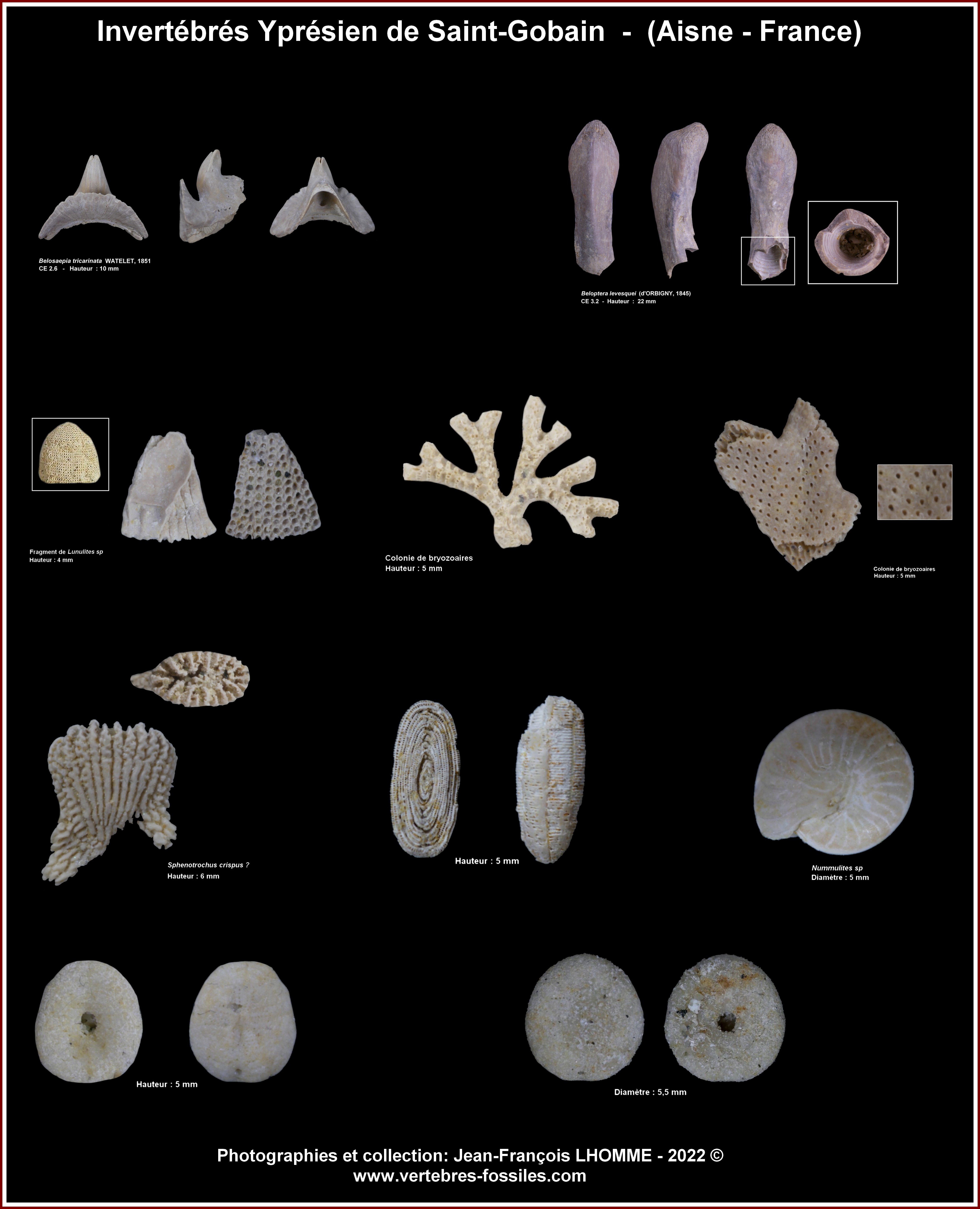 Je commence par les invertébrés du Cuisien, du massif de St Gobain, les planches sont constitués mais pas encore finalisées, cela représente encore du travail, mais cela montre la diversité des formes sur ce faciès marin, tout n'est pas encore photographiés car j'ai privilégié la moyenne et petite faune, exception faite pour la Gisortia