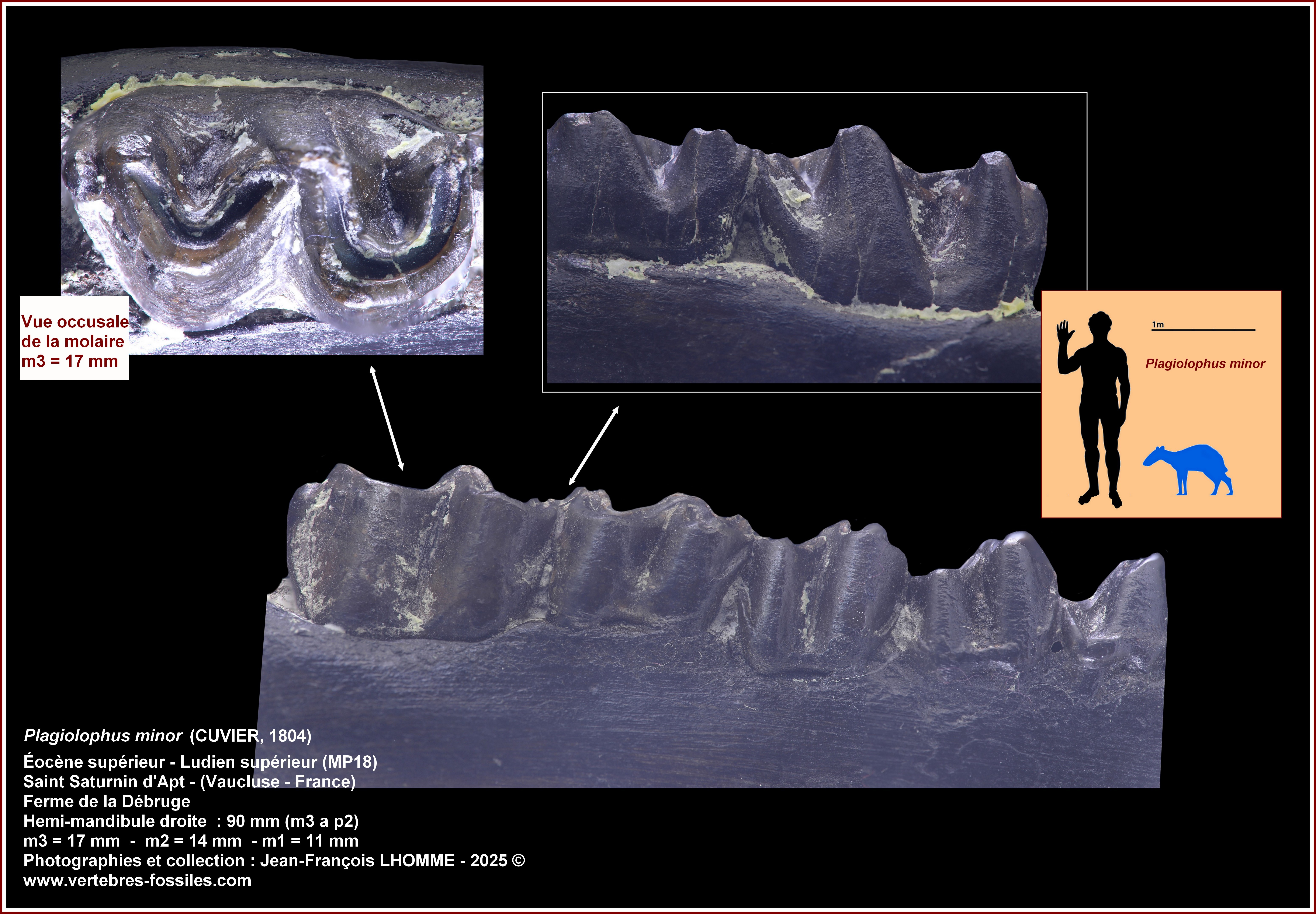 Je commence avec un maxillaire de Plagiolophus de France, d'autres viendront au fur et à mesure