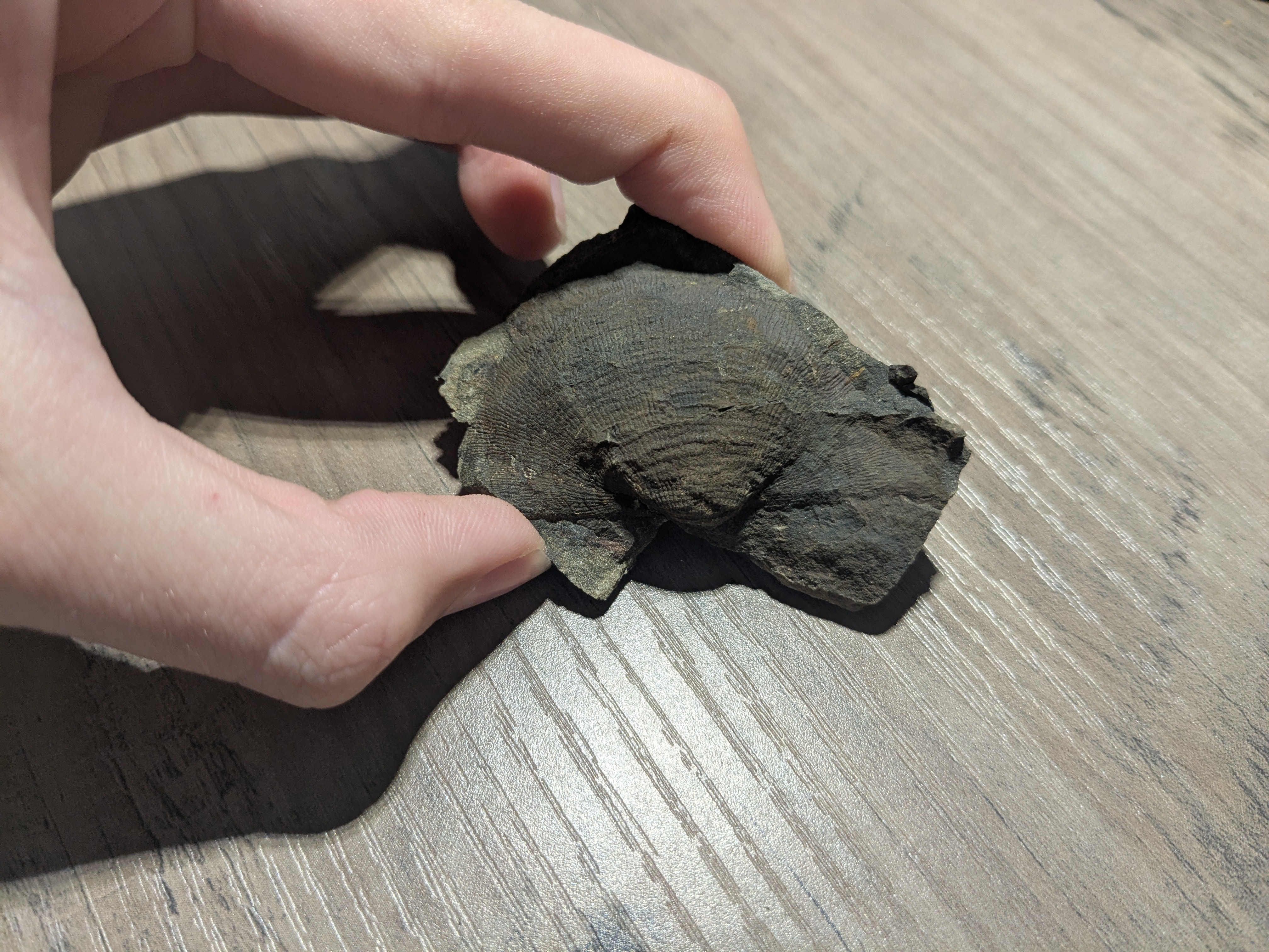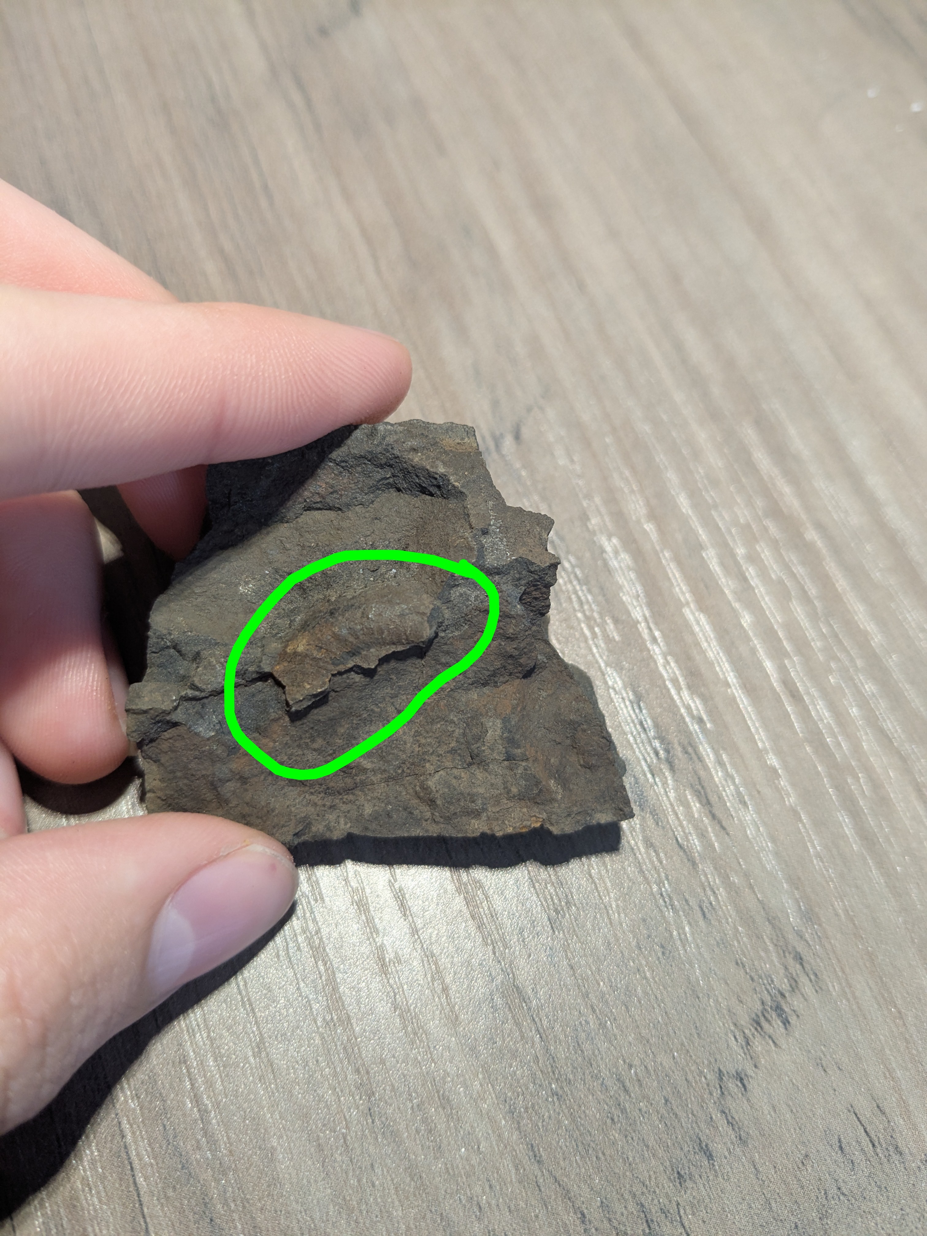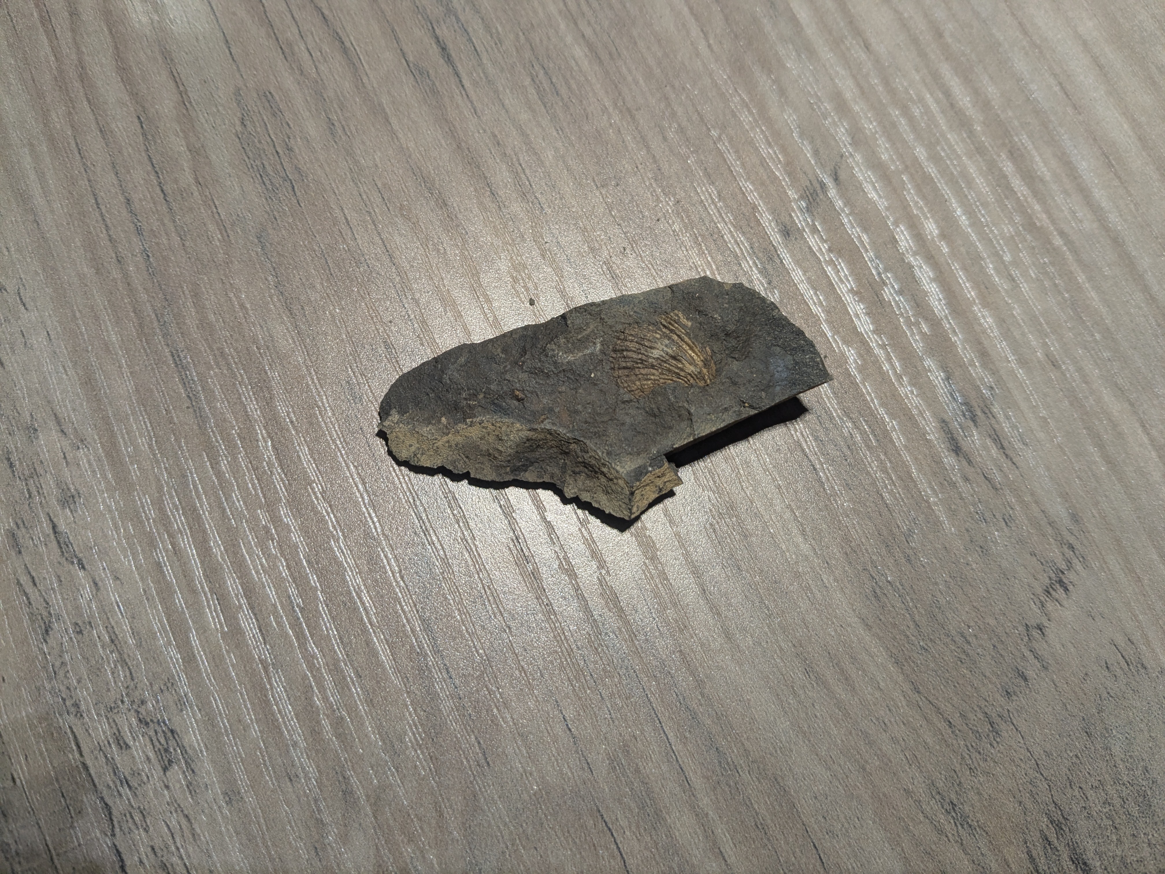 Il y a très peu de temps j'ai fait une excursion dans un petit affleurement au bord d'une route forestière au nord du col du hundsruck dans des sédiments viséens, la route a été rénovée et donc les couches fossilifères ont pu être plus exposées, dans ces couches j'y ai découvert un très bel exemplaire de productus burbachianus et j'y ai découvert un fragment circulaire strié et je me demande de quoi il s'agit