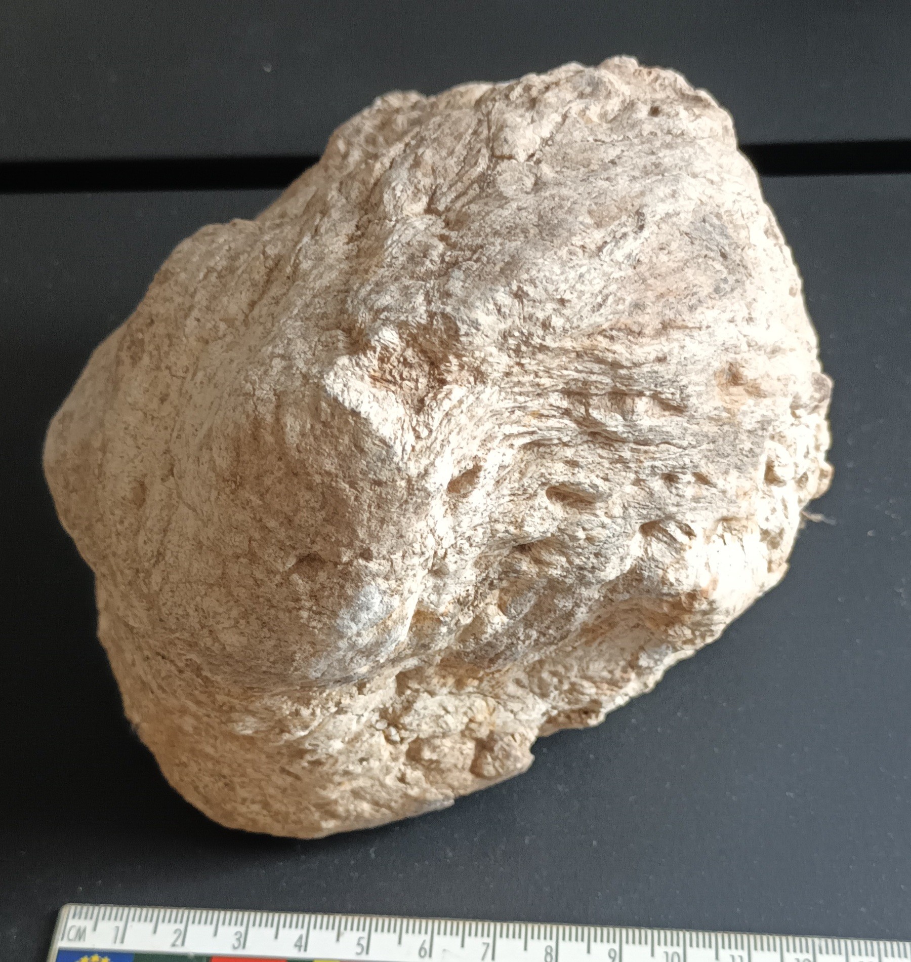 Ça c'est du gros ! Malheureusement roulé mais il est possible que ca soit une tête de femur de proboscidien : du mastodonte ou mammutidae.