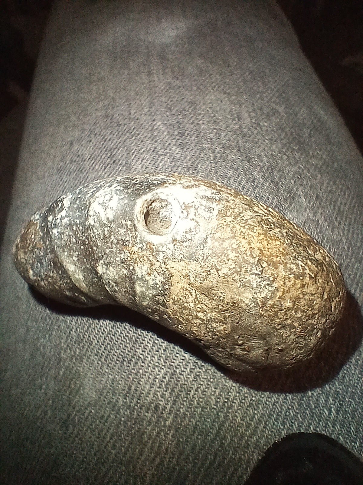C'est peux être un effet d'optique lié au support que constitue l'ammonite, mais tous les trous de Pholade que j'ai vu aussi bien actuels que fossiles sont plats, il n'y a pas de rebord comme on peux le voir sur ton spécimen.
