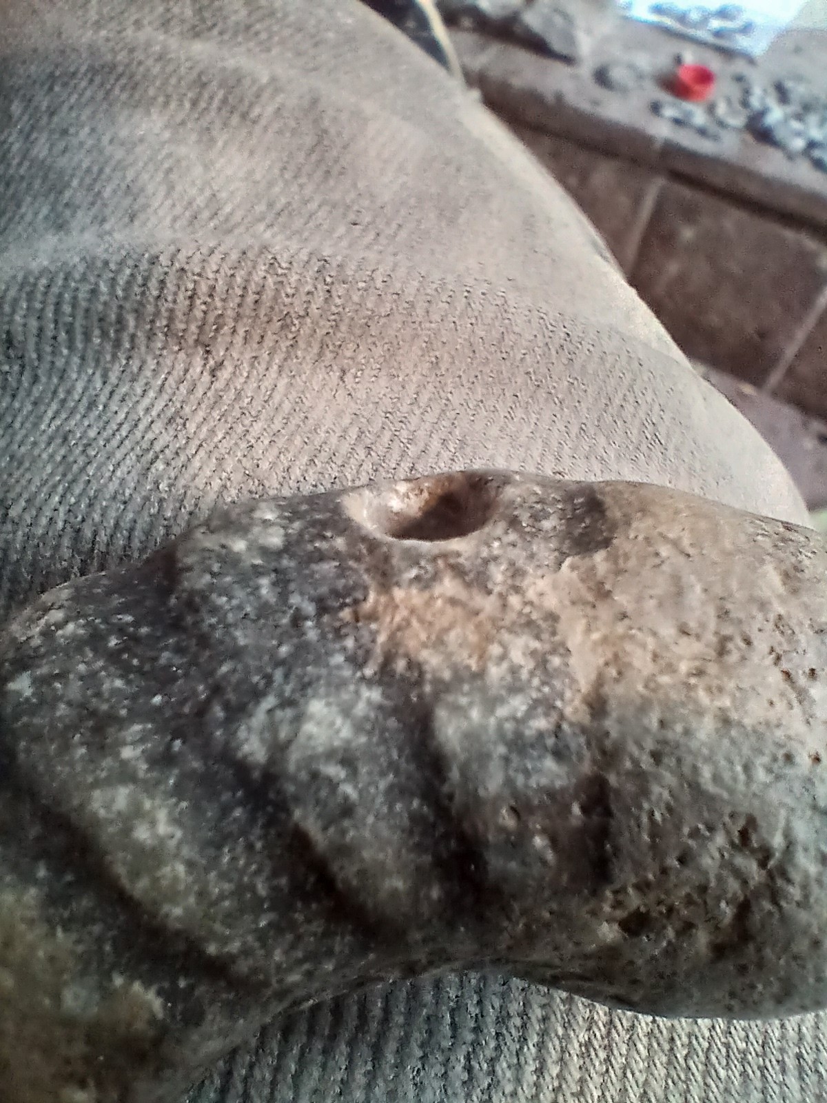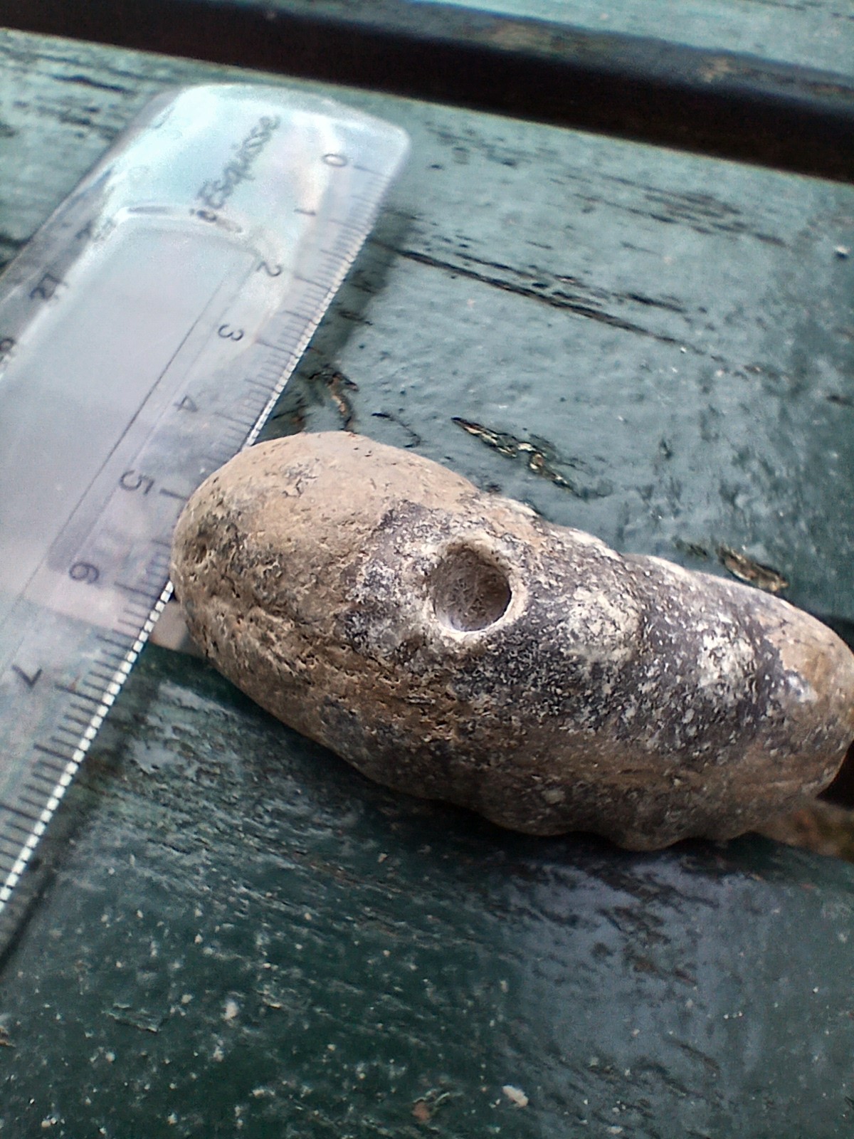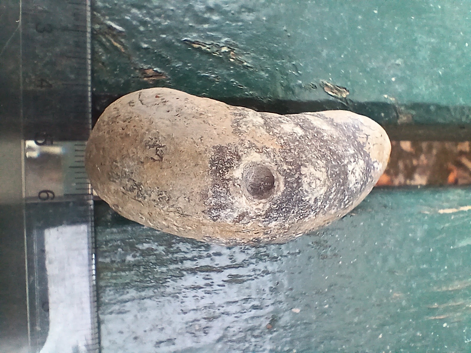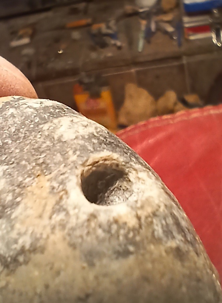 Oui pas évident à voir, il y a perçage soit pendant la vie de l'animal (parasitage) soit post mortem, reste à découvrir quel animal ou végétal marin, ou usure particulière c'est très complexe l'ichnologie (étude des traces).
