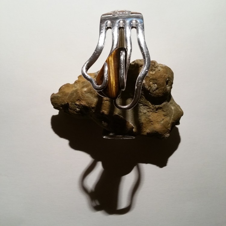A la fin des années 90 (du siècle dernier :P) je partageais mes loisirs non caillouteux entre la peinture sur soie et l'acrylique, avec quelques aquarelles et surtout beaucoup de dessin à la mine de plomb. J'ai peint mes meubles, des boites en bois , etc...Mais avoir un gisement de fluorine très riche en couleurs qui fournit du beau massif à moins de 15 km de chez soi (Le Piboul), ça inspire ! Un jour, mon mari a coupé une grosse tranche de fluo bien zonée et multicolore à la disqueuse et je l'ai polie avec du papier carrosserie à l'eau. Le déclic !  :idee: Je suis passée à la 3D, d'abord avec des formes simples: coupes, cabochons, puis très vite la sculpture de petits animaux et plantes. Je me suis équipée peu à peu, et j'ai bénéficié des cours d'un bijoutier créateur (et ami) pour le travail basique de l'argent. Et du coup... j'ai abandonné la 2D.