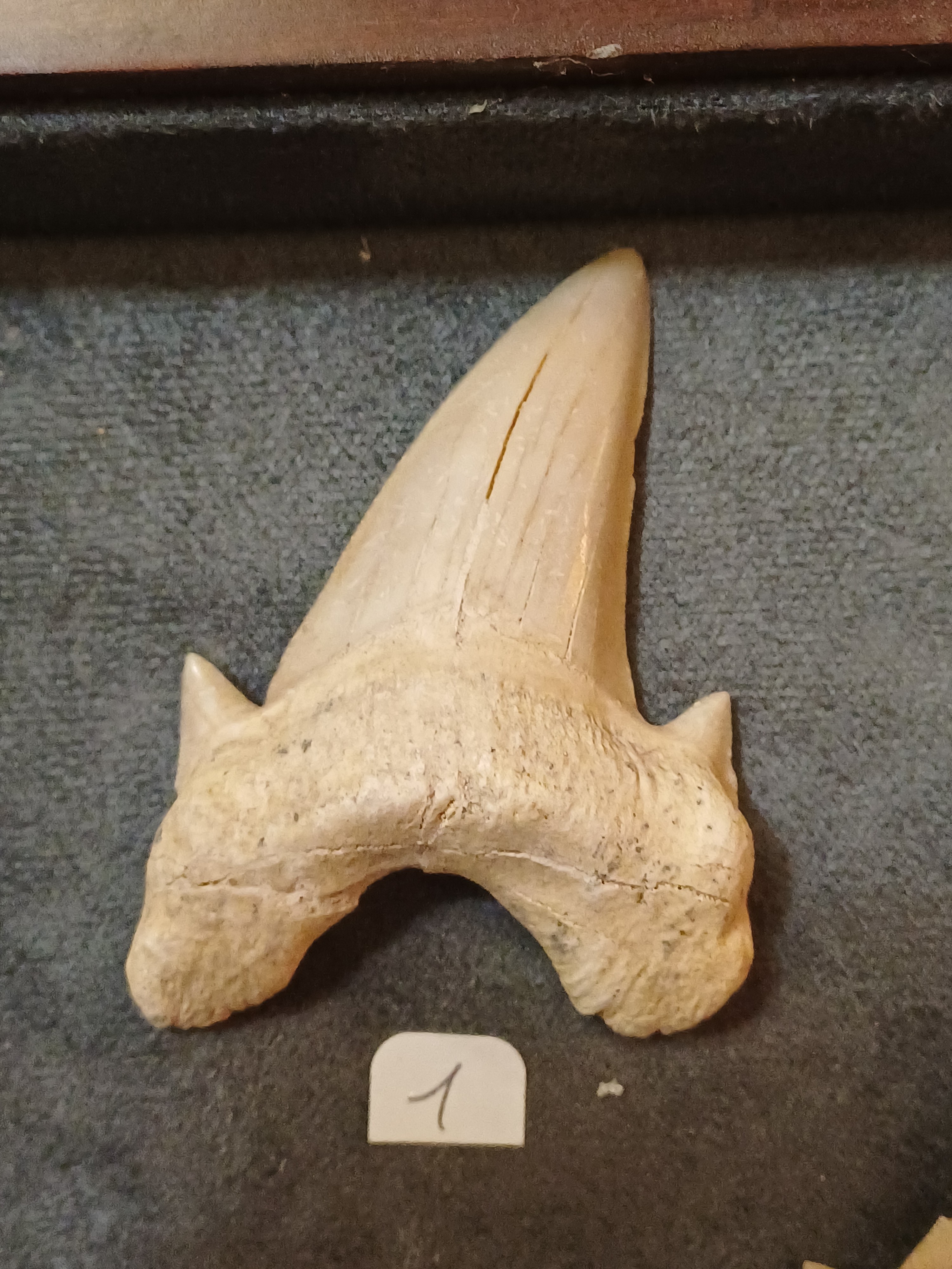 Il s'agit d'une dent de requin très classique faisant parti des grandes dents de requins que l'on trouve dans les Phosphates du Maroc présentent à l'éocène inférieur (48 Millions d'années)