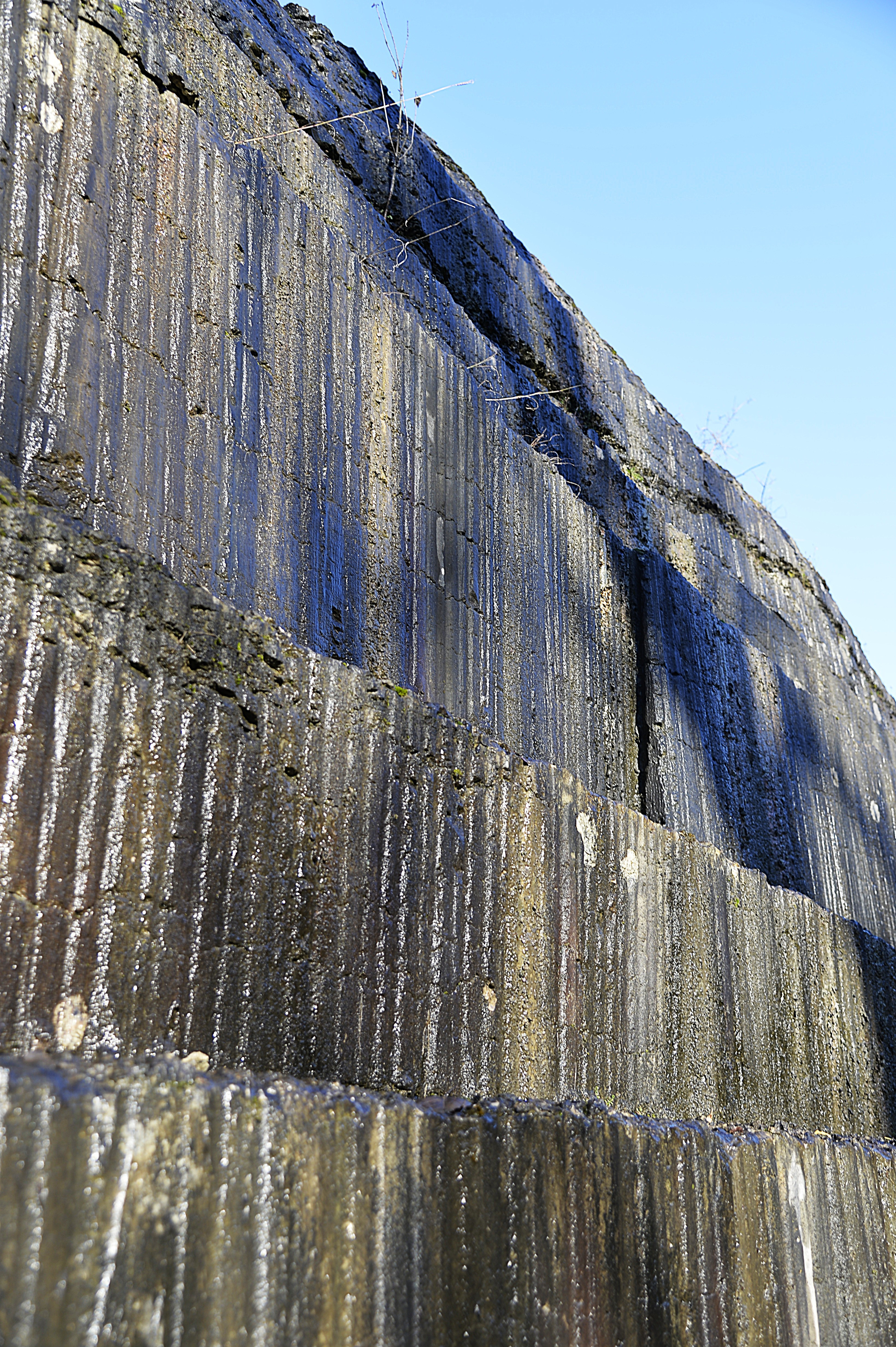 Je ne connais notamment pas la technique employée pour découper la pierre, qui a conduit à la strier. Cf photographie ci-dessous :
