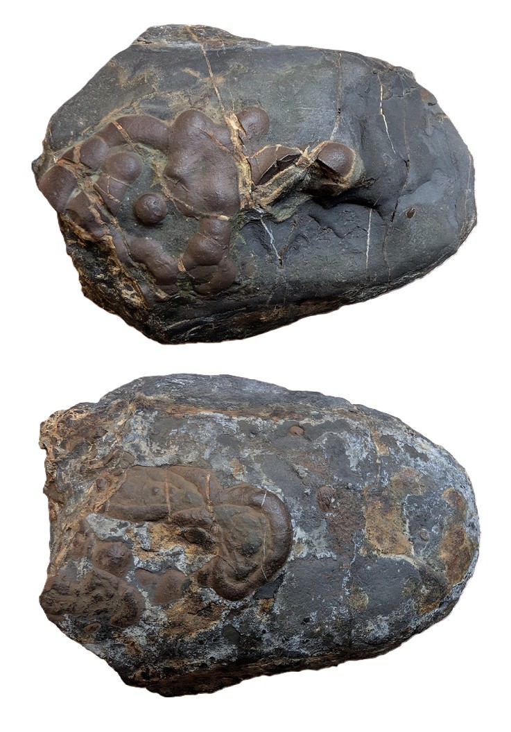 Difficile à dire comme cela, j'aurais tendance à plutôt dire qu'il s'agit de concrétions minérales, peux être ferrugineuses ou d'un autre sulfure ?