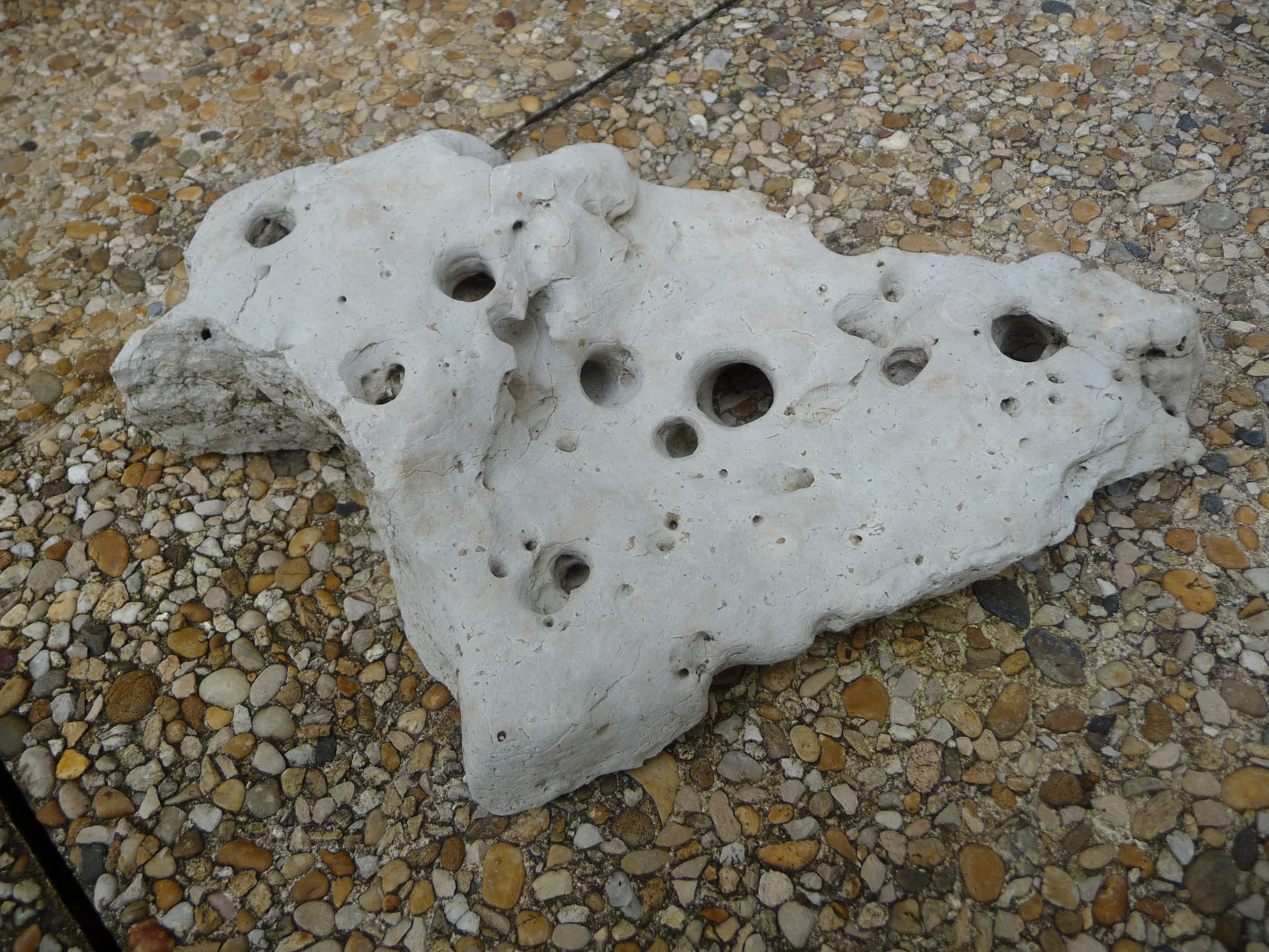 calcaire non solidifié, une grêle fossile, les diamètres les plus forts sont traversants.