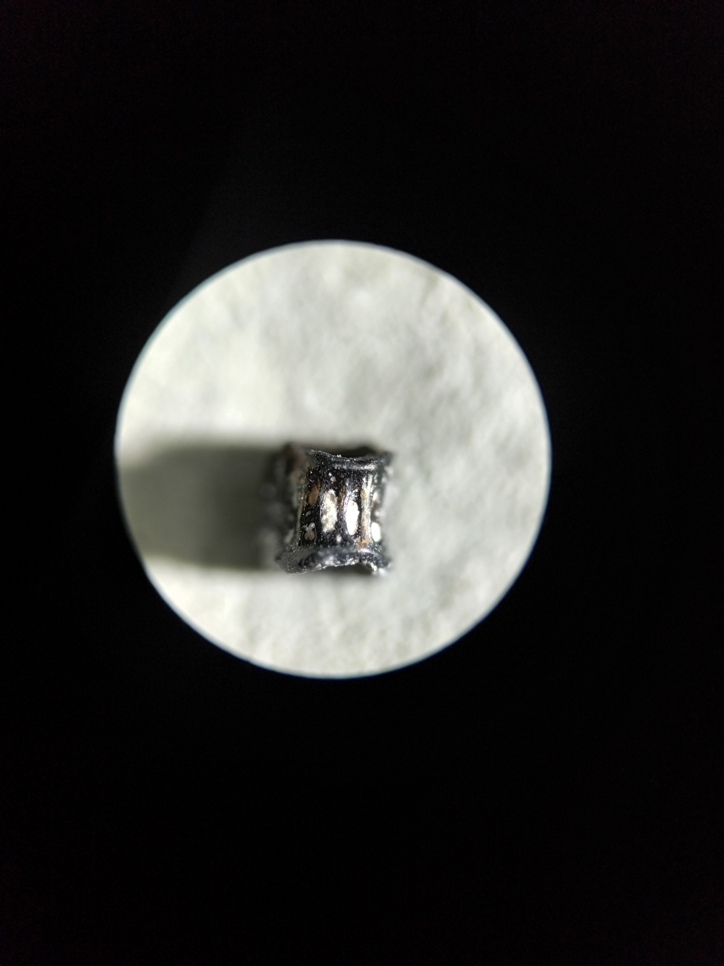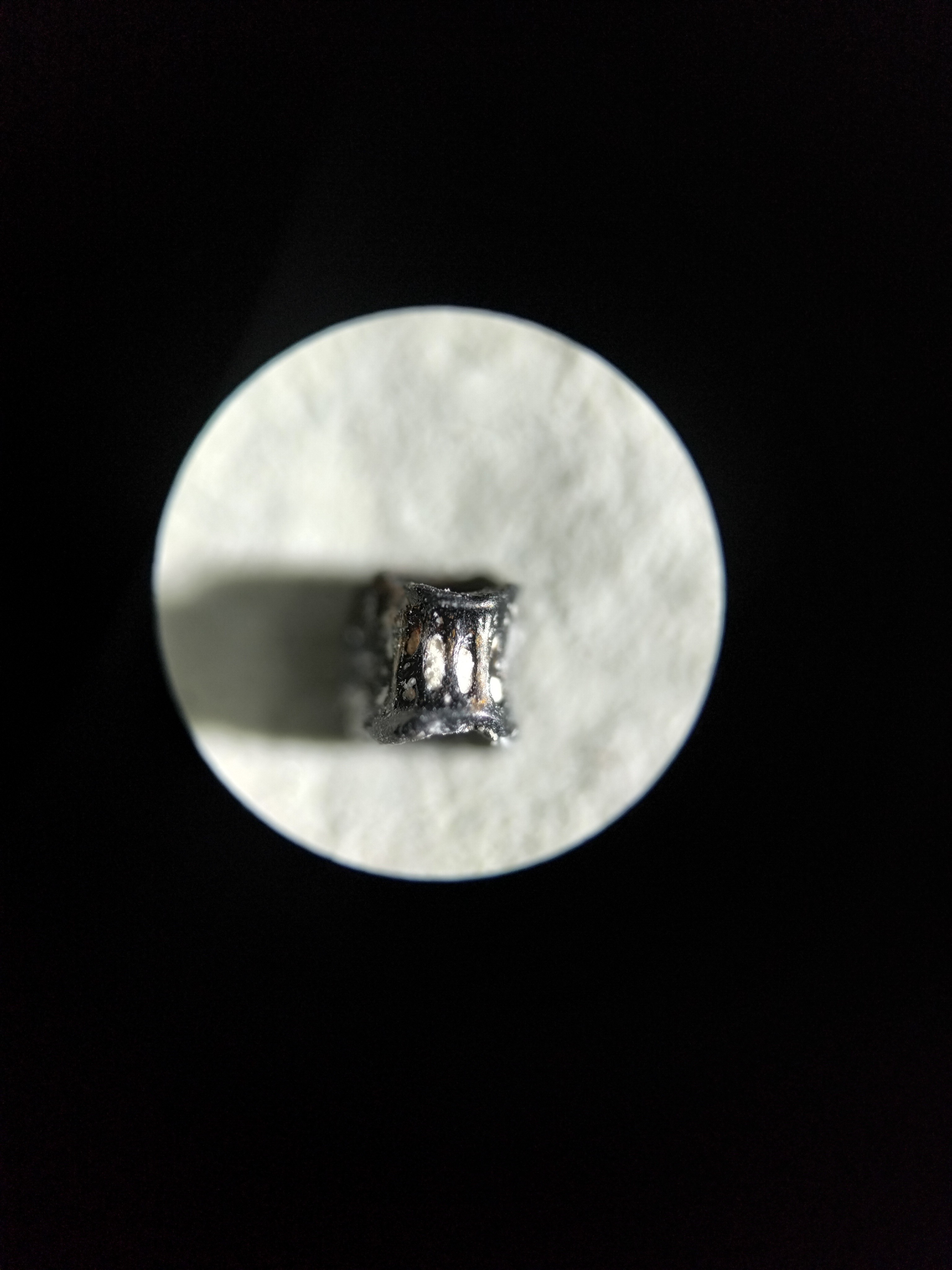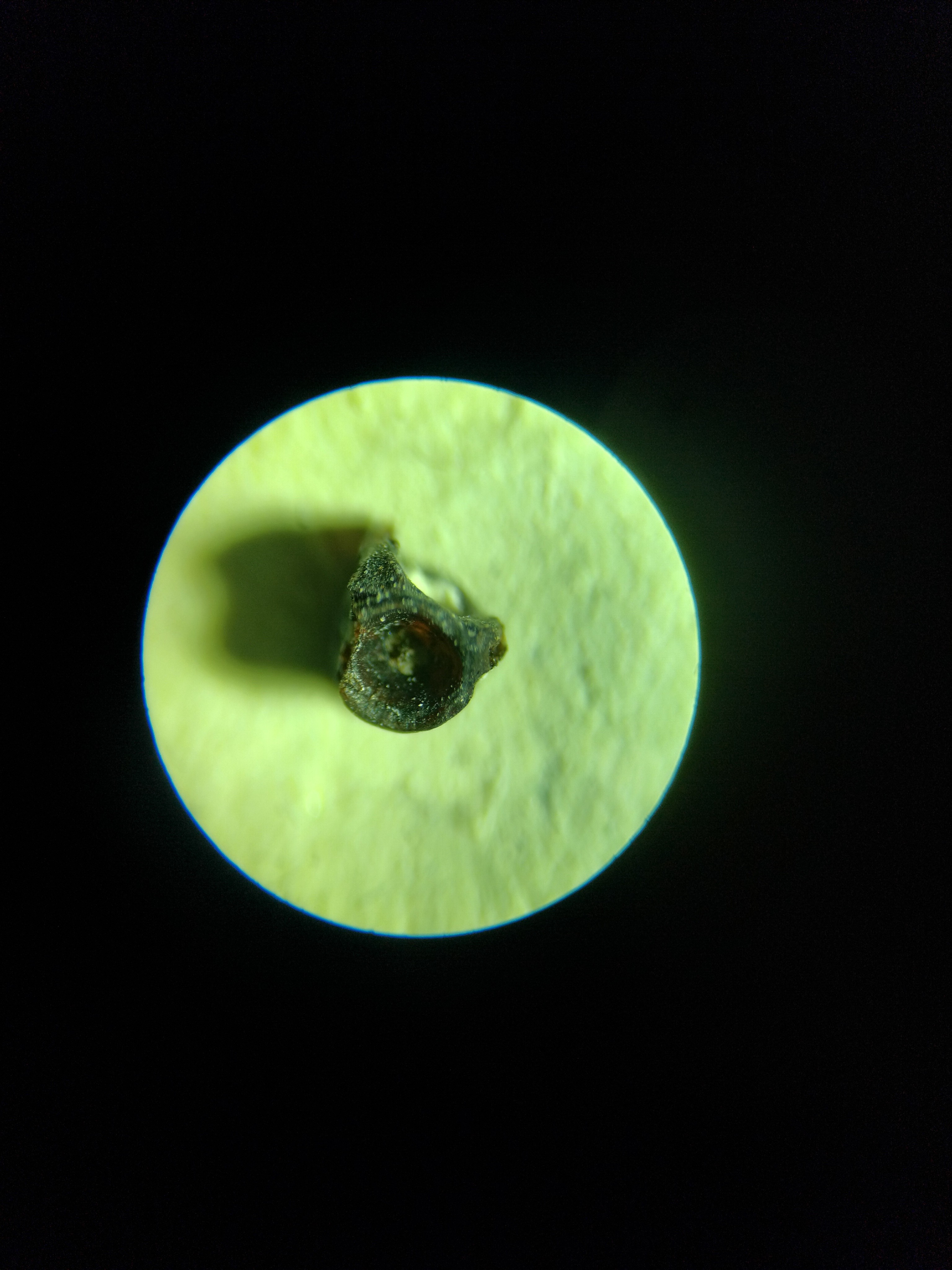 J'ai récemment trouvé cette minuscule vertèbre de 1mm dans l'Oligocène de Limagne (63), pas d'un site classique.
