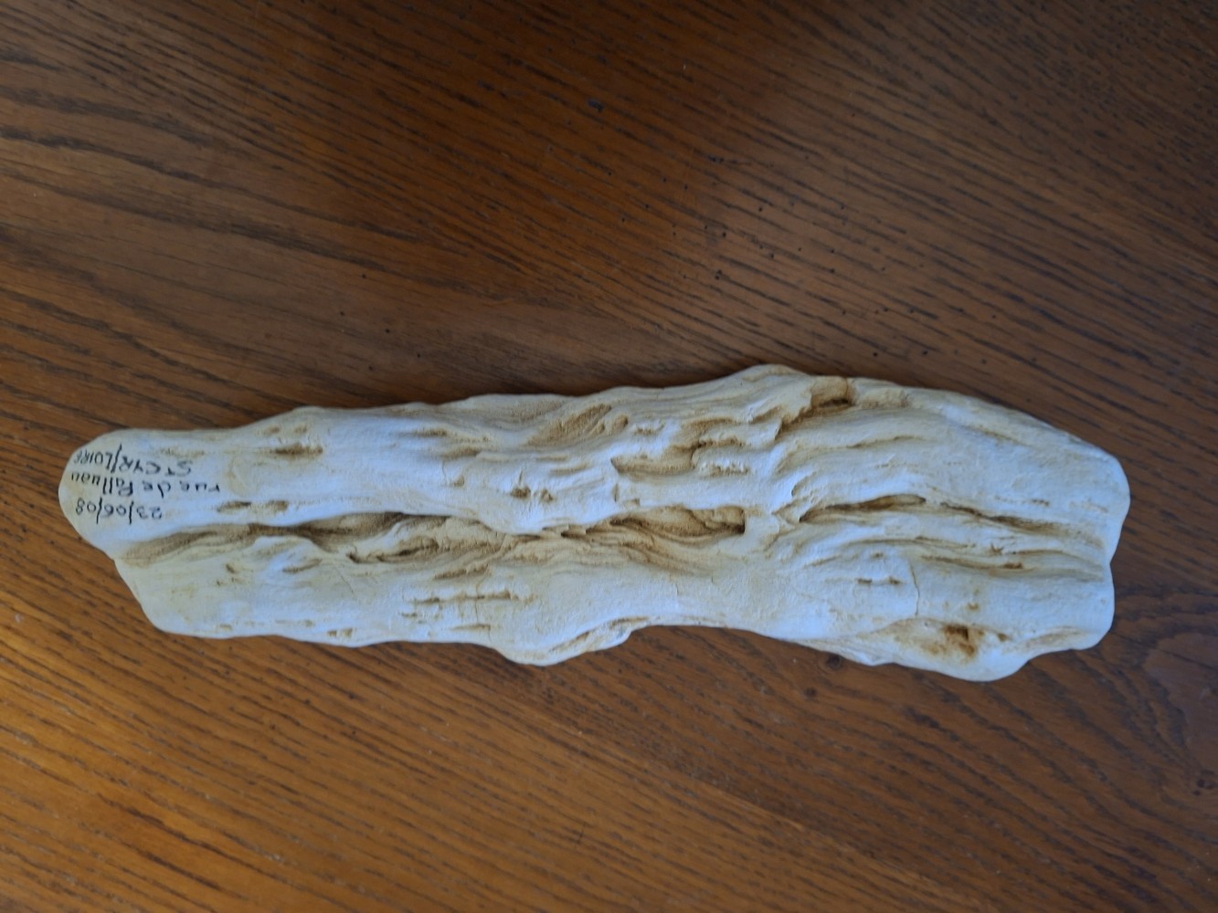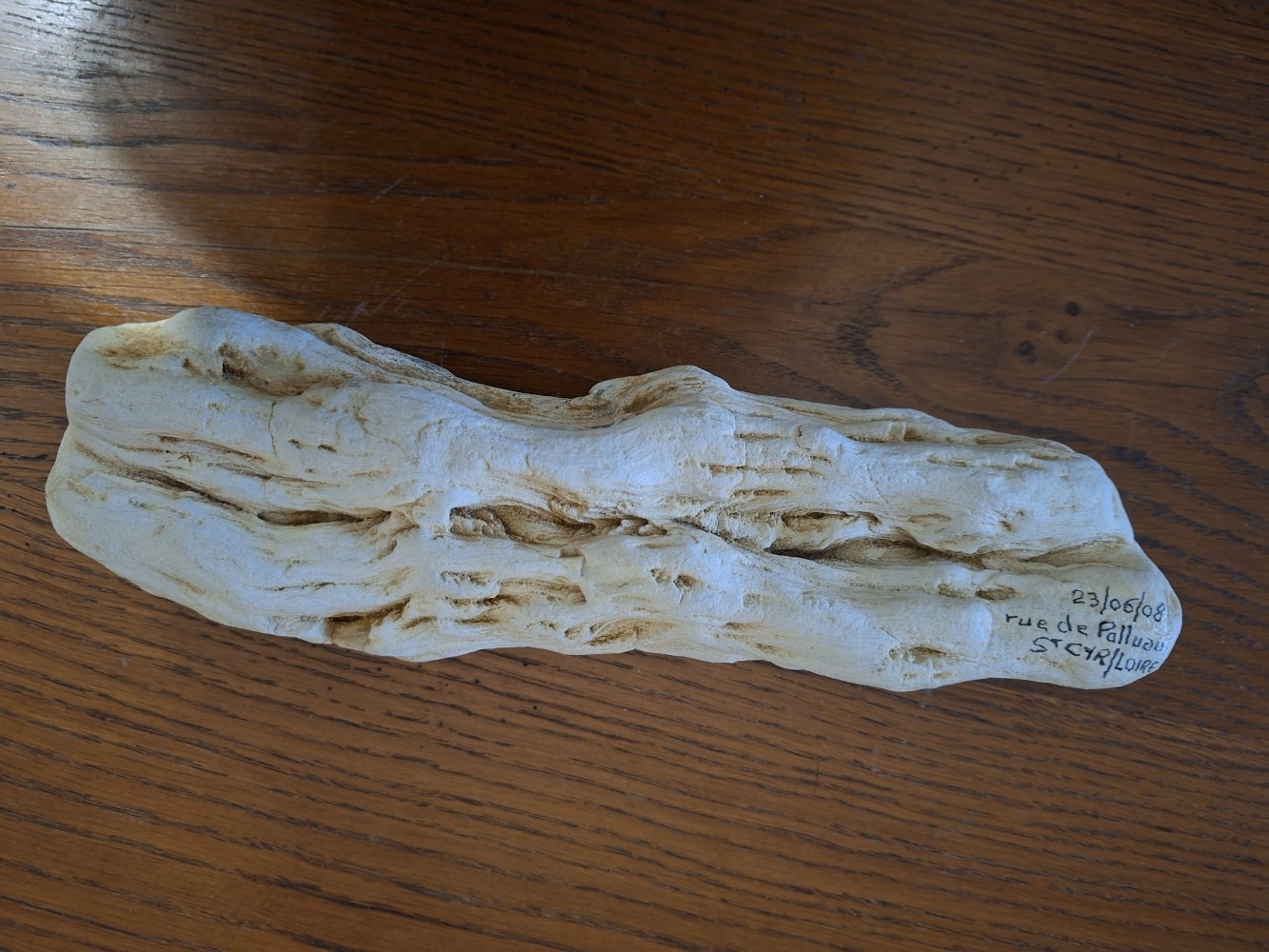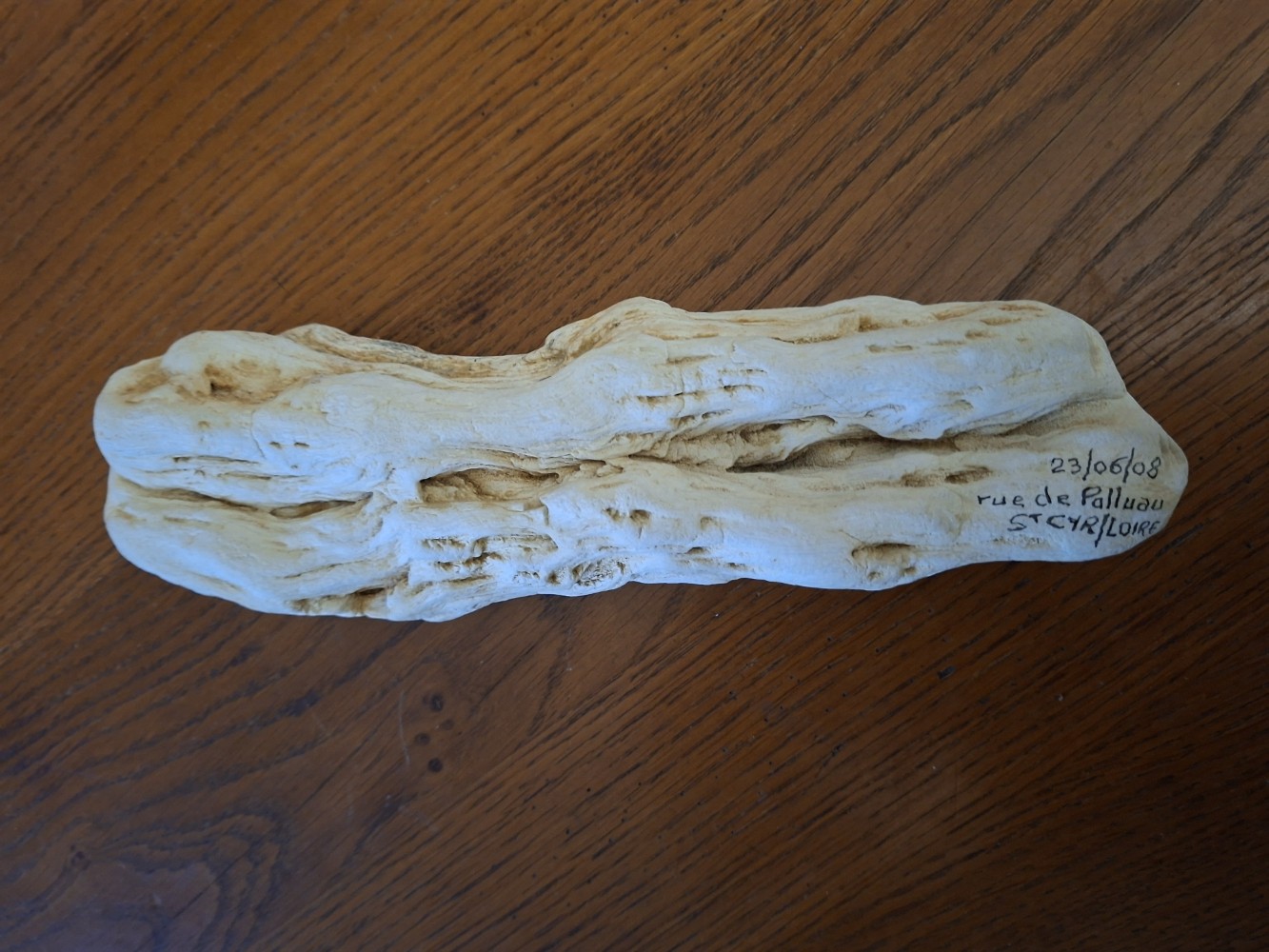 Suite à la publication précédente d'un beau bois pétrifié, je vous soumets à mon tour ce morceau de bois fossilisé que j'ai récupéré il y a 17 ans lors de la construction du boulevard périphérique de Tours.