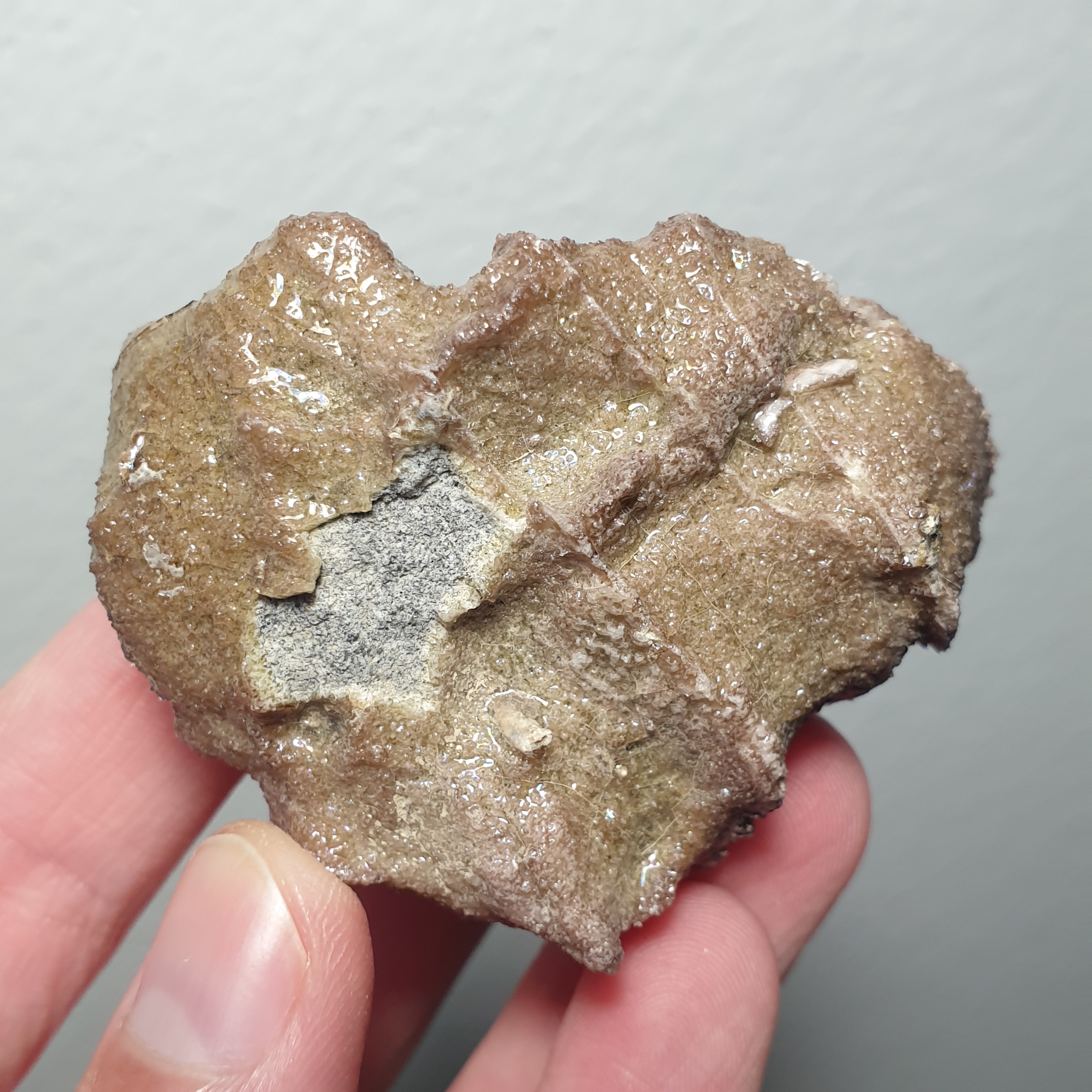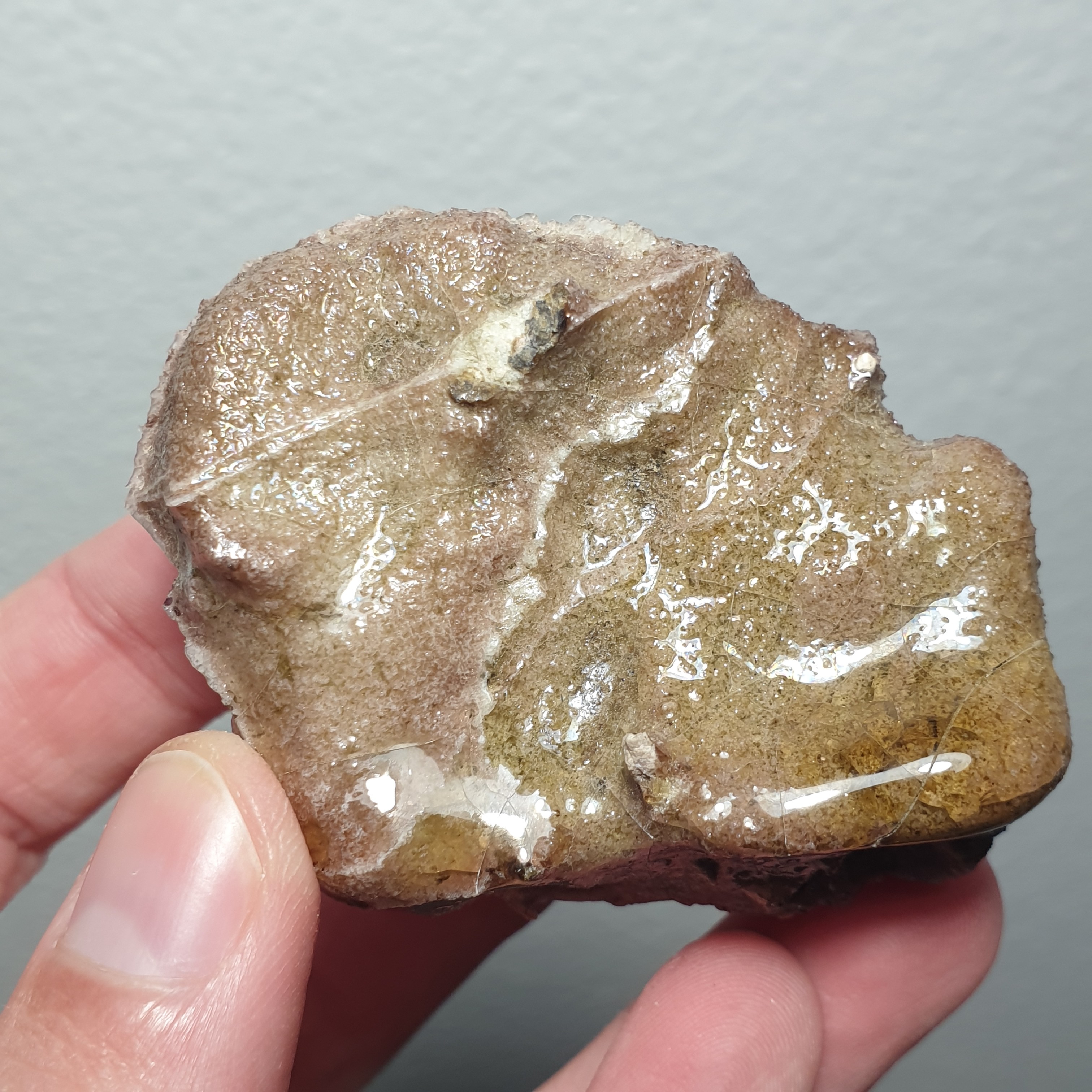 C'est très jolie, ça semble être humide mais ne l'est pas, ça semble avoir recouvert une roche flottante sur une fine épaisseur 1 à 3mm à vue de nez.