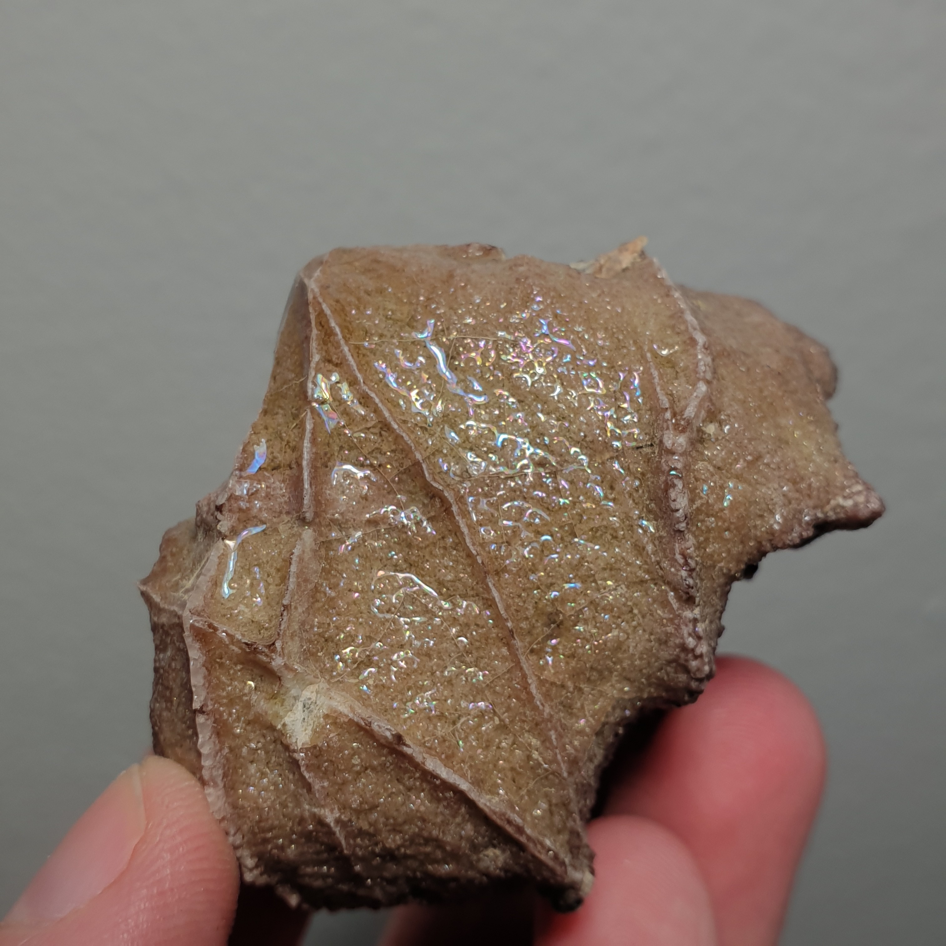 Les test de base ont ils été fait ? On distingue bien les irisations  en zoomant .J'ai eu le meme résultat par accident  en faisant couler de la super glue sur un béte caillou .Mais comme le dit ELASMO attendons l'avis des pros du forum .