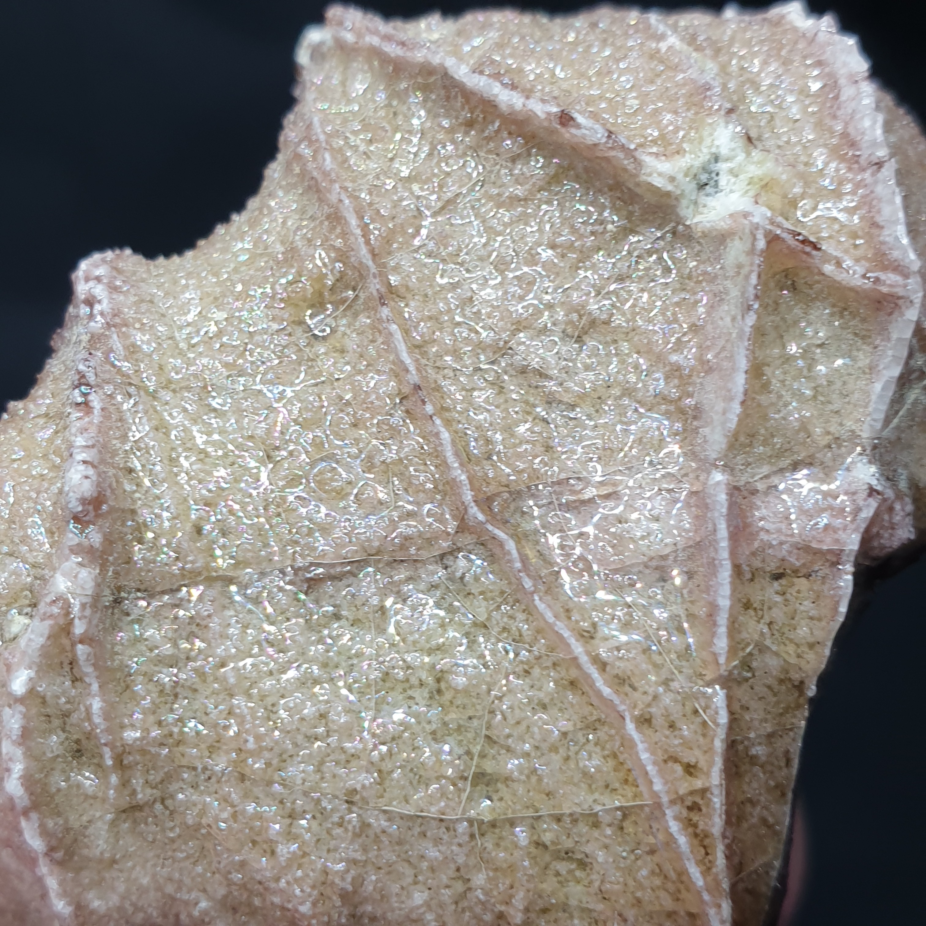 On peut y voir facilement à l'oeil nu des "scintillements" rose, vert, voir bleu, bref un genre "d'irrisation", même si c'est un abus de langage.