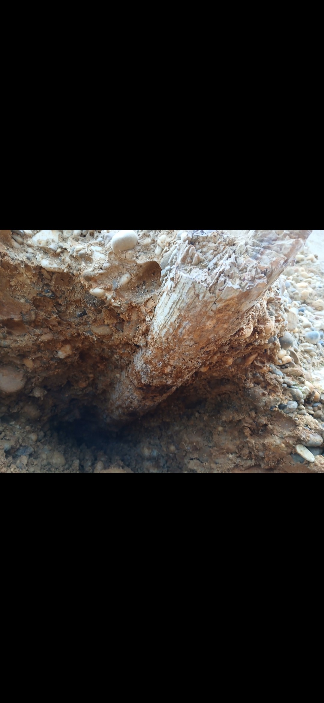 Ci dessous, trouvaille de l an dernier, fragment de défense d'Anancus arvernensis du pliocène d' 1m de long. Déja postée sur le forum. Malheureusement je n'ai pas pu la plâtrer, au vu de sa position et j'ai du sous caver (dans du sable) sur 1 m de profondeur. Je l'ai sortie en 4 tronçons qui heureusement peuvent être parfaitement assemblés.
