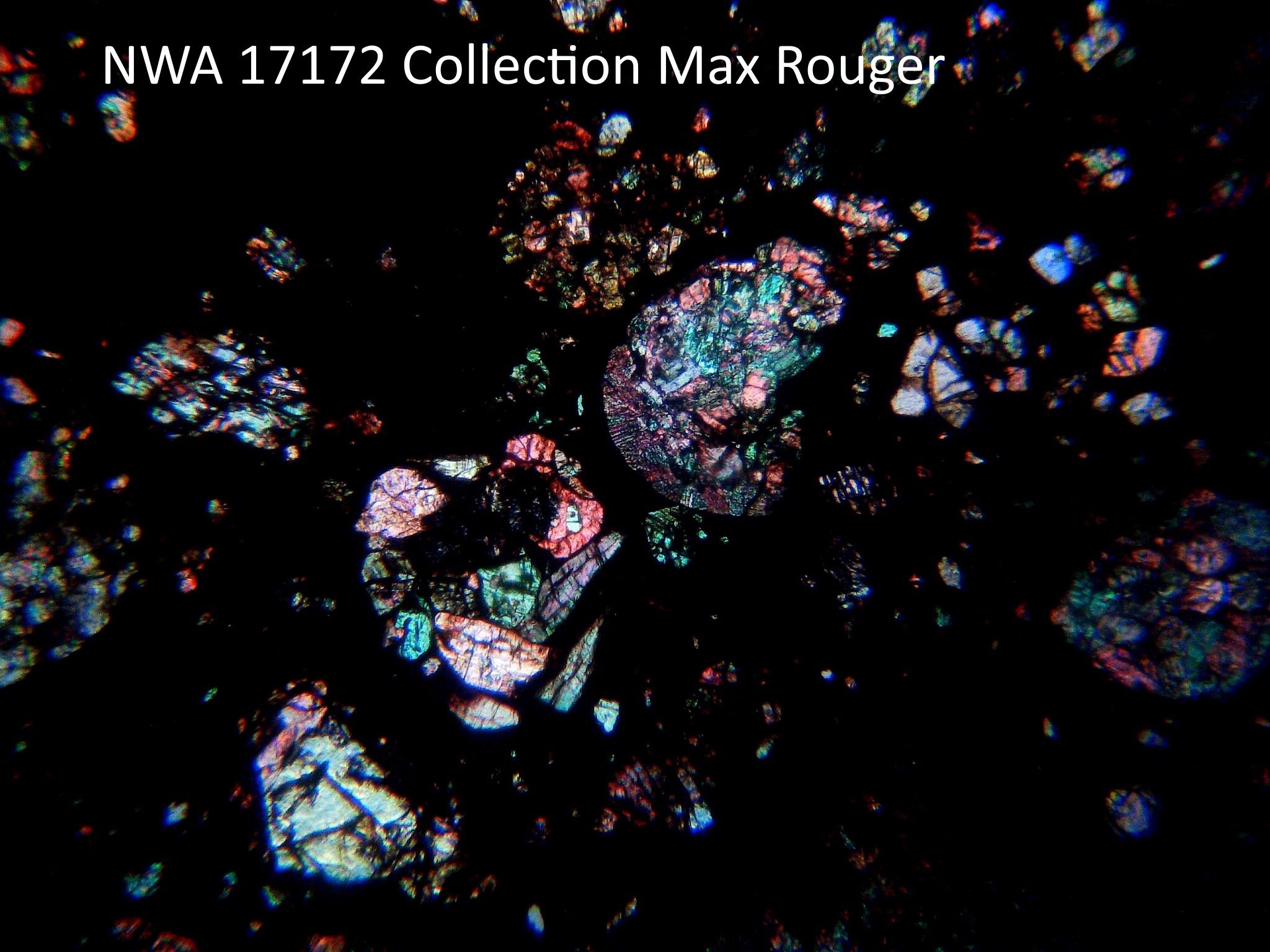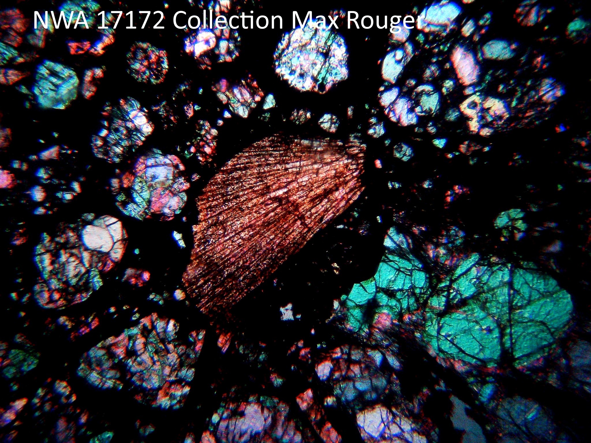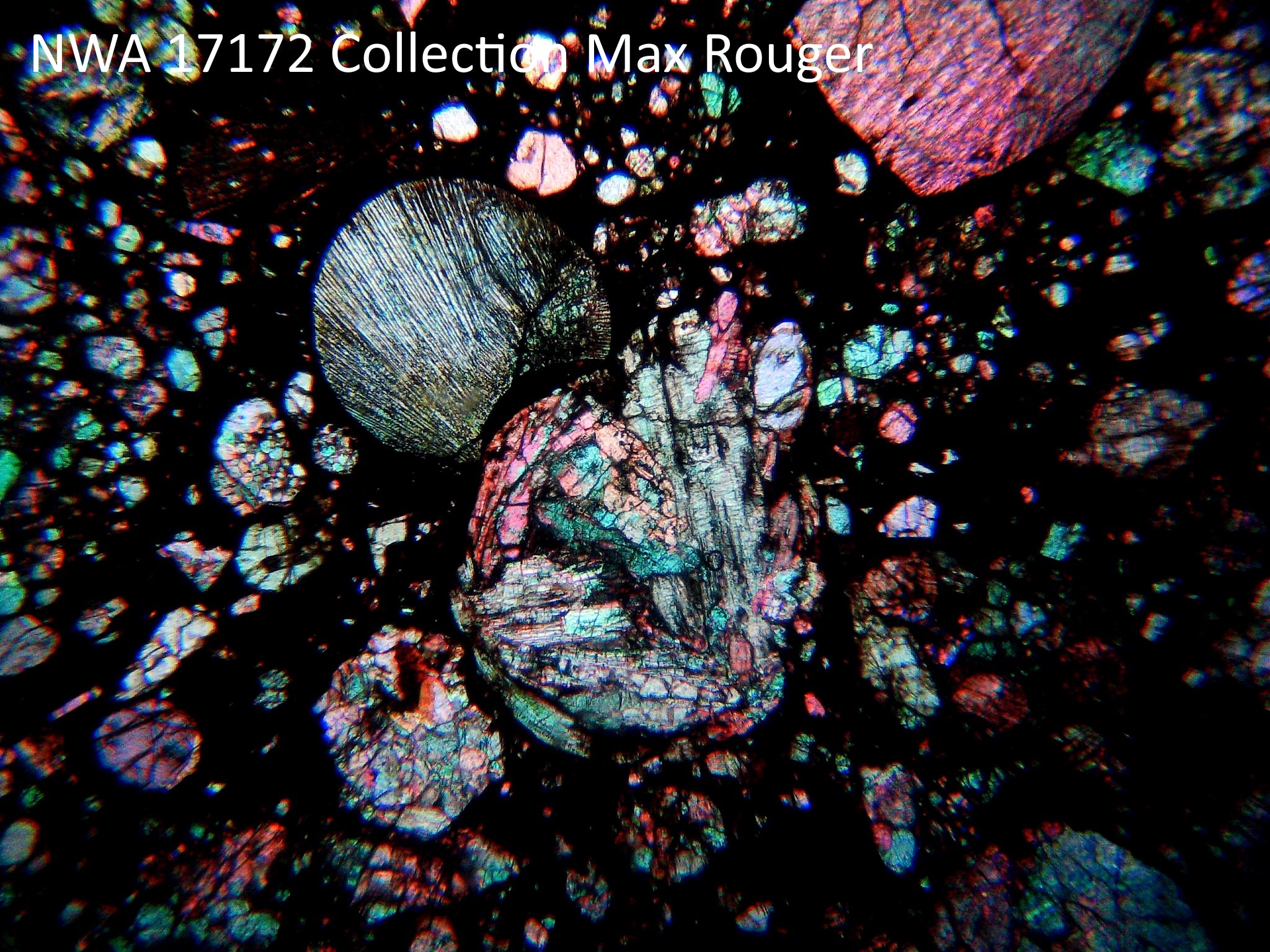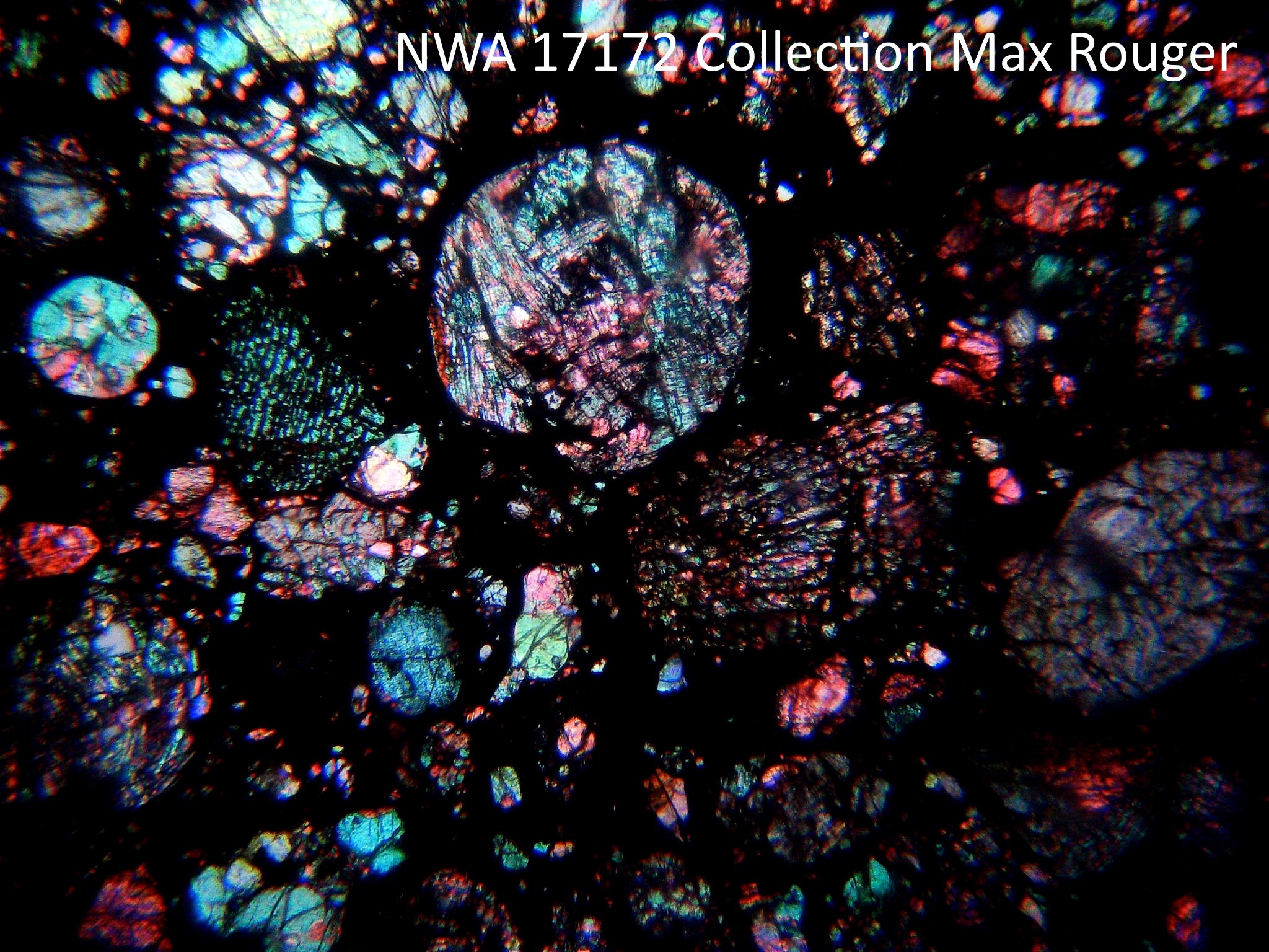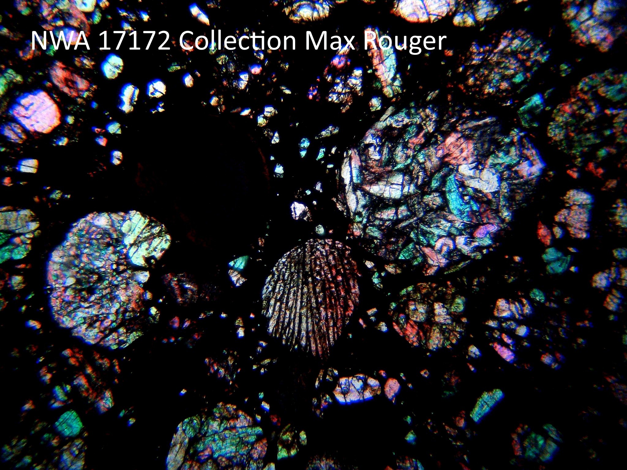 Je commence avec le partage de photos prises au microscope grossissement x40 en lumière polarisée/analysée d'une lame mince de NWA 17172.