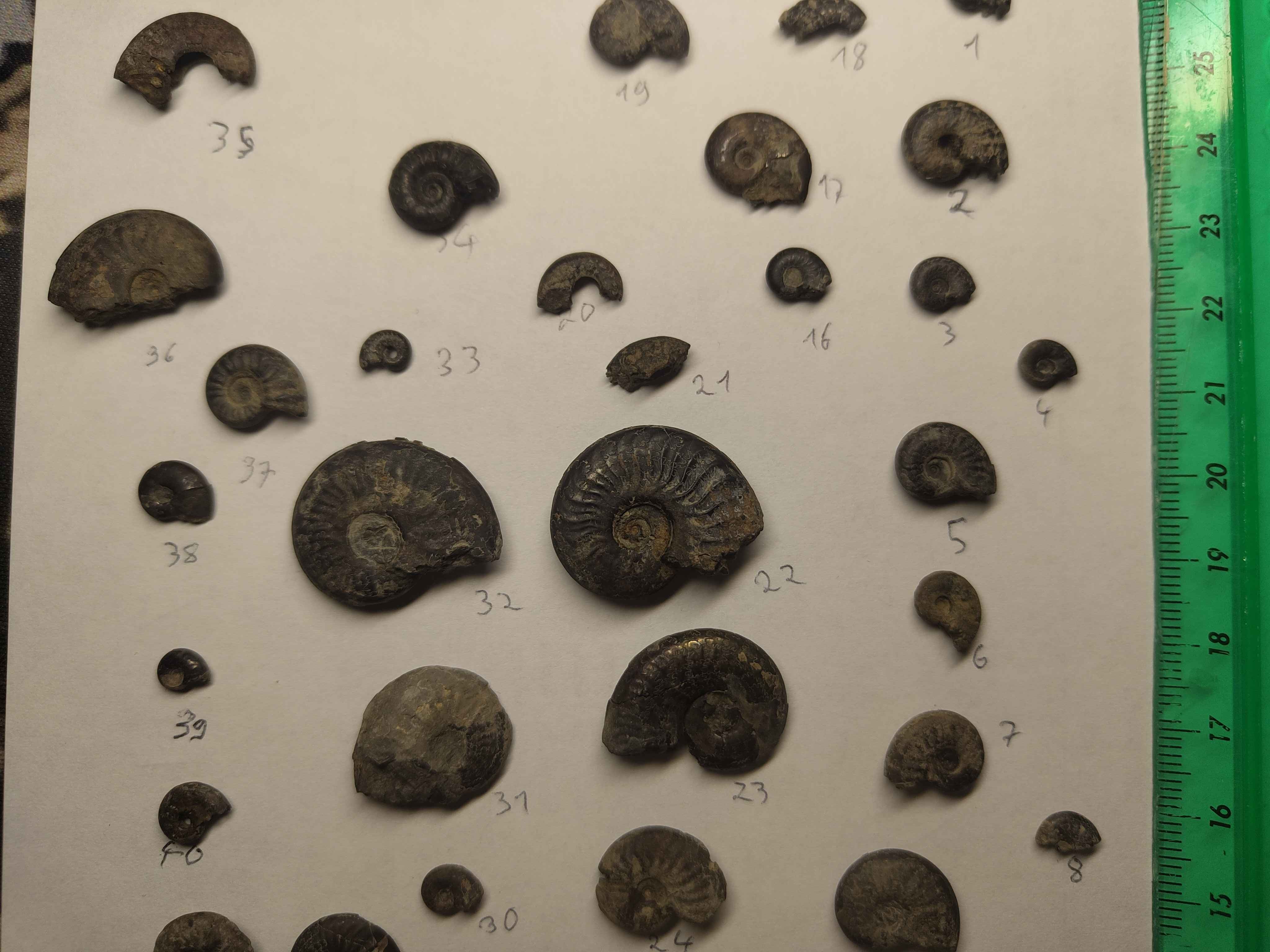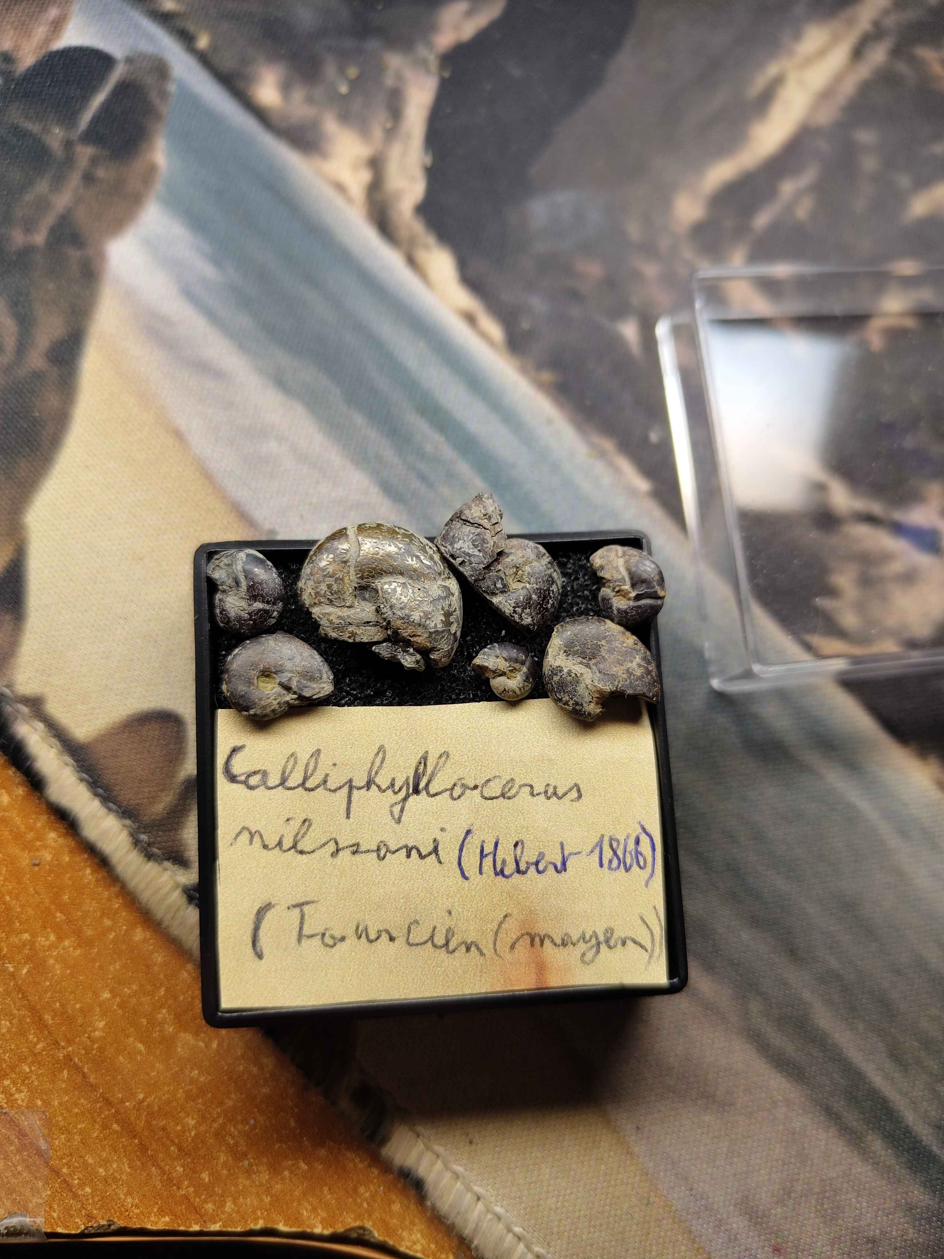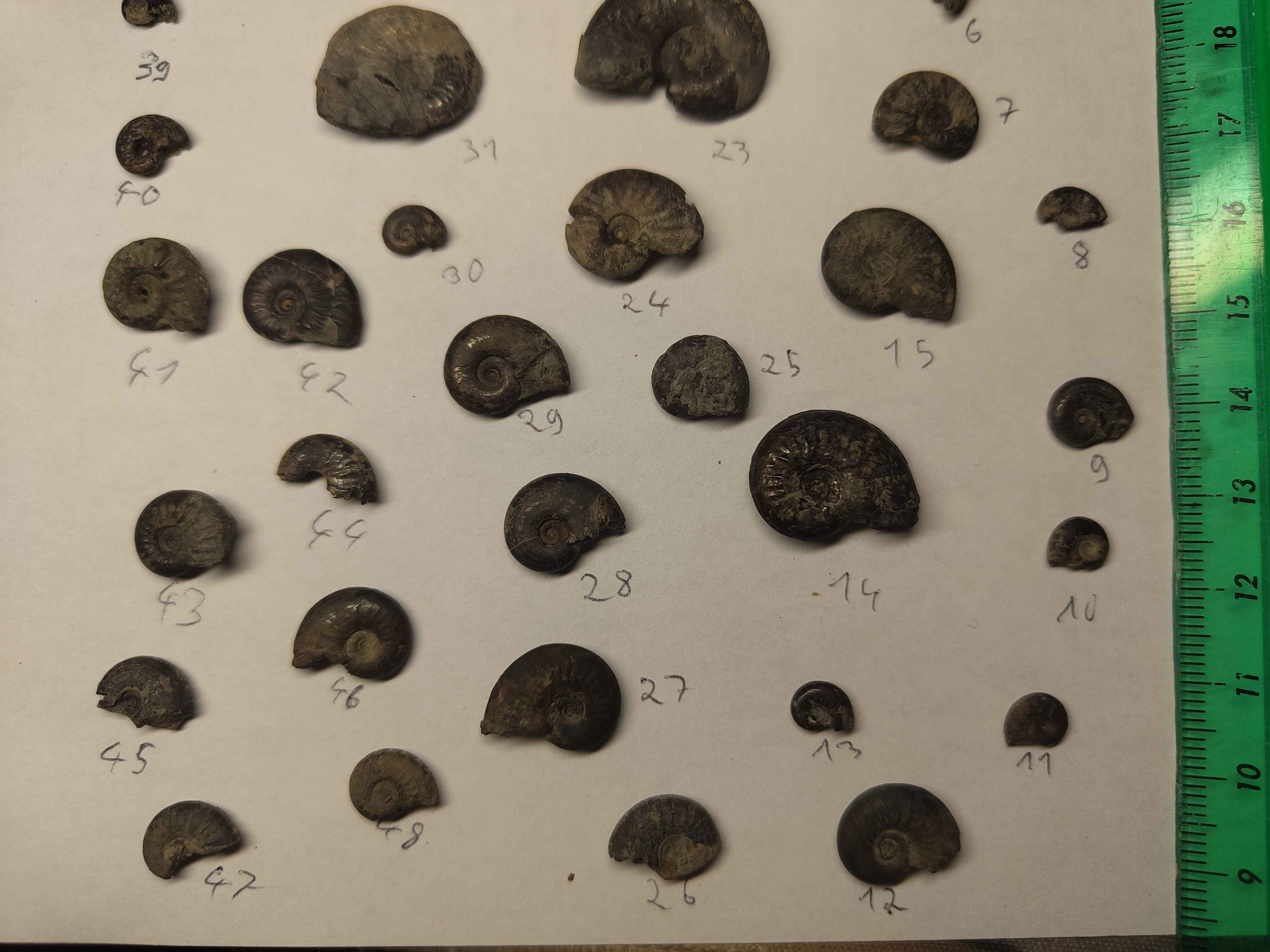 Je joins les photos des ammonites que j’avais rangées en Grammoceras. Bien sûr, je ne les envoie pas dans le but que des personnes me les identifient toutes, mais si vous en voyez certaines qui sont « académiques » et qui pourraient m’aider à comprendre comment les classifier, cela m’aiderait beaucoup.