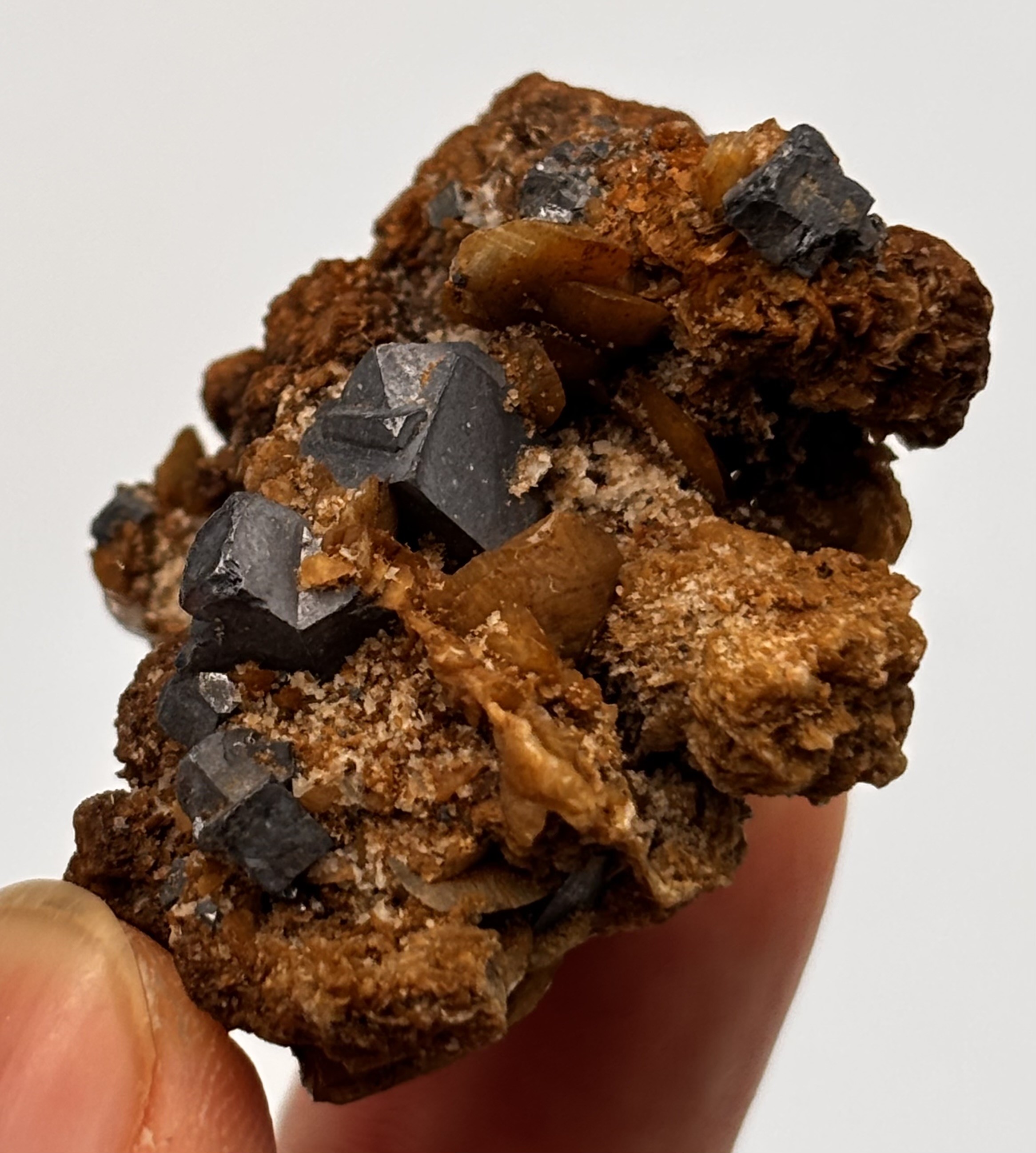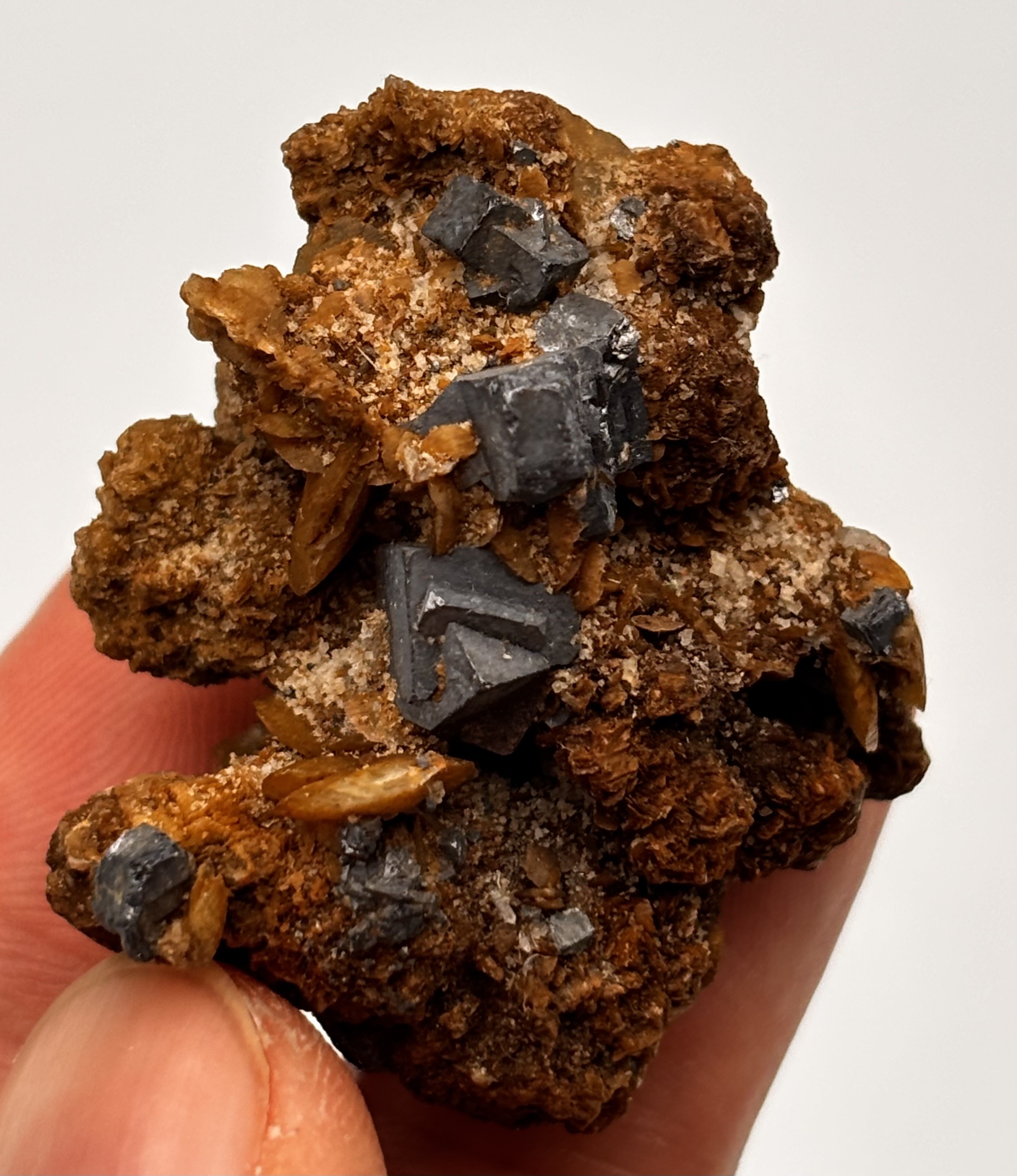 Si la localité parle à quelqu’un, je suis preneur…. Je pensais à Allevard mais les sidérite (pas trop oxydées) sont en lamelles comme à Vizille, pas en rhomboèdre. Les galènes semblent cubiques forme assez classique avec troncature sur arrête.