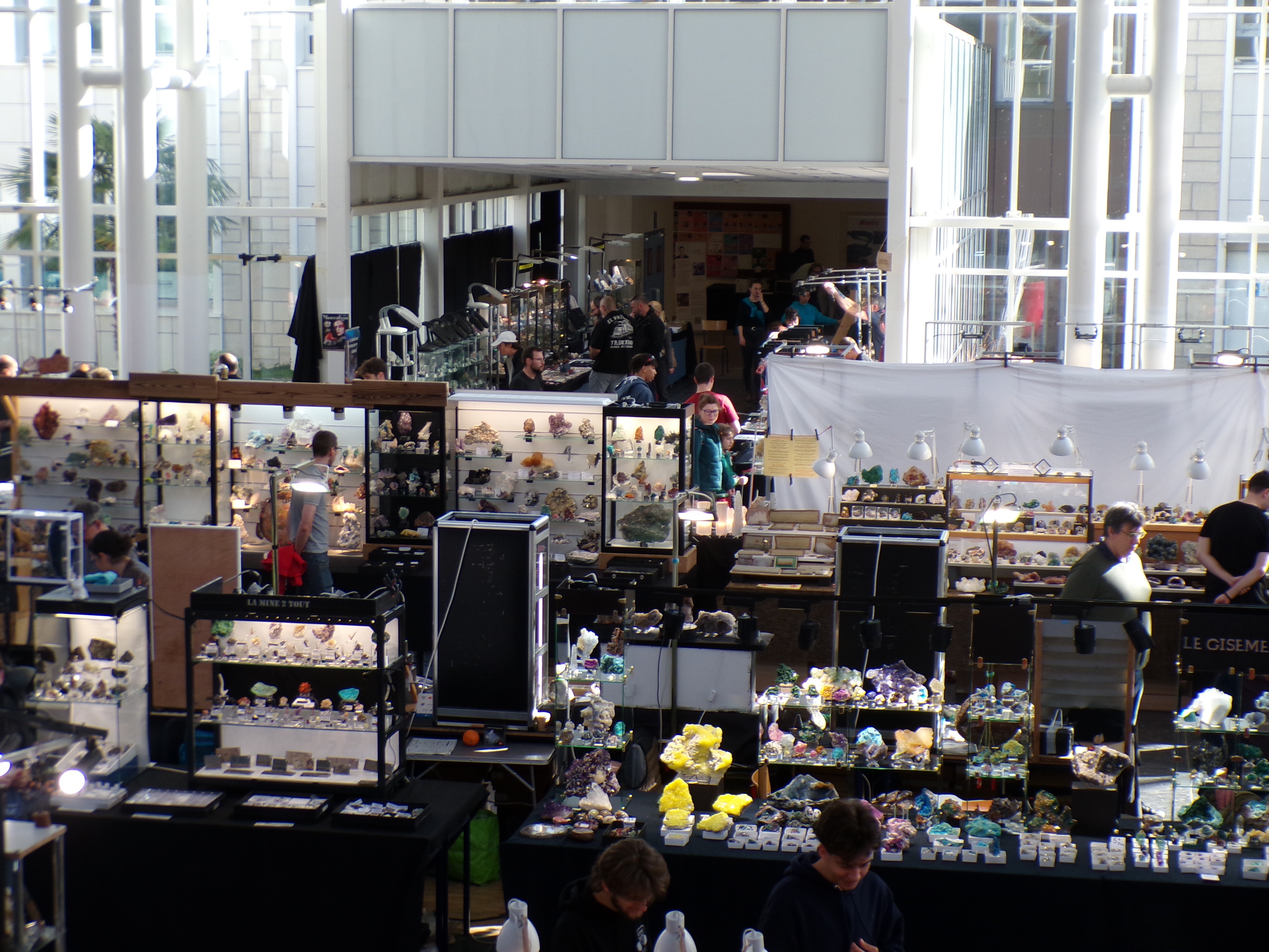 Bourse minéraux à Paris, avec fossiles et gemmes.
