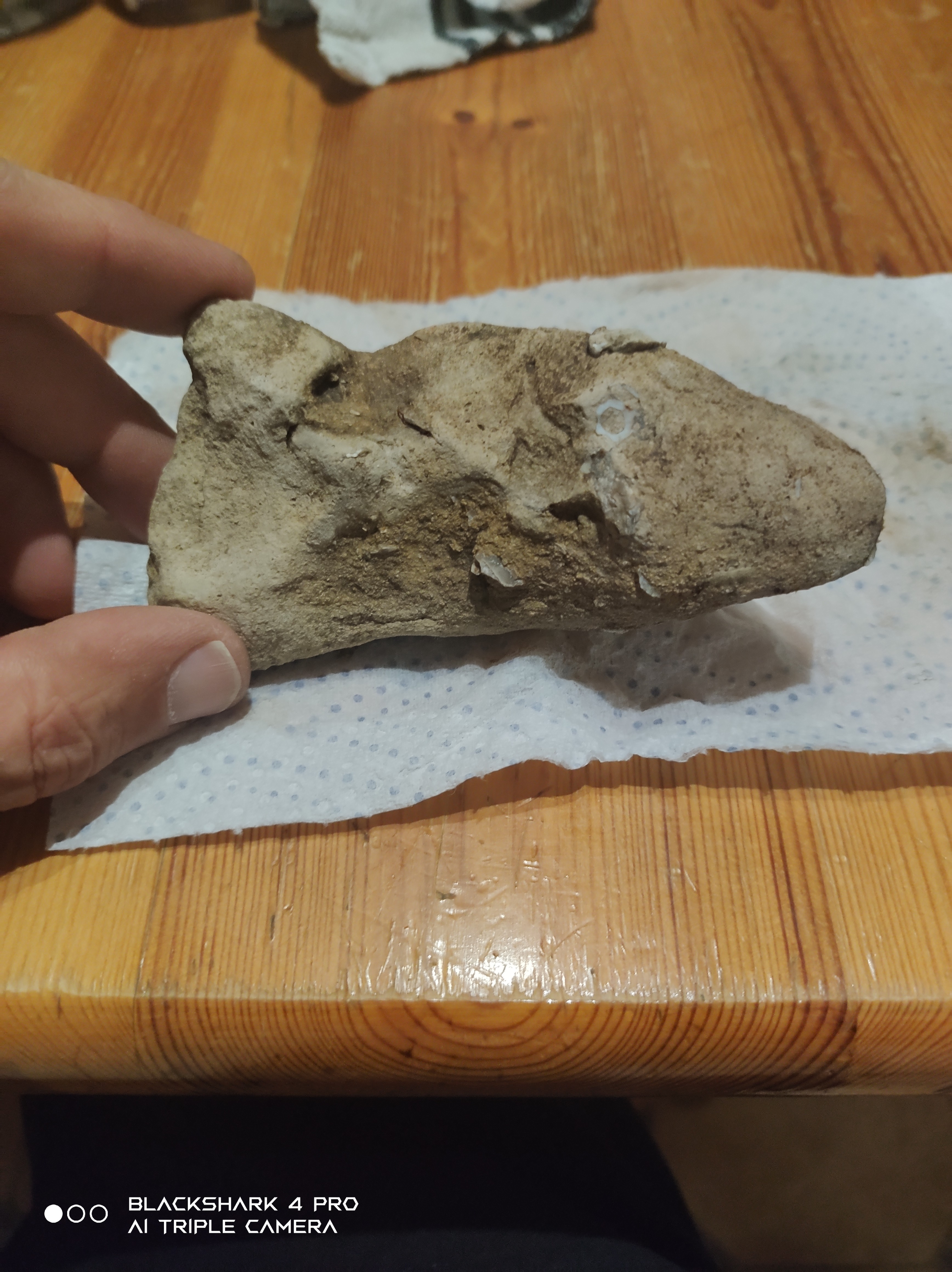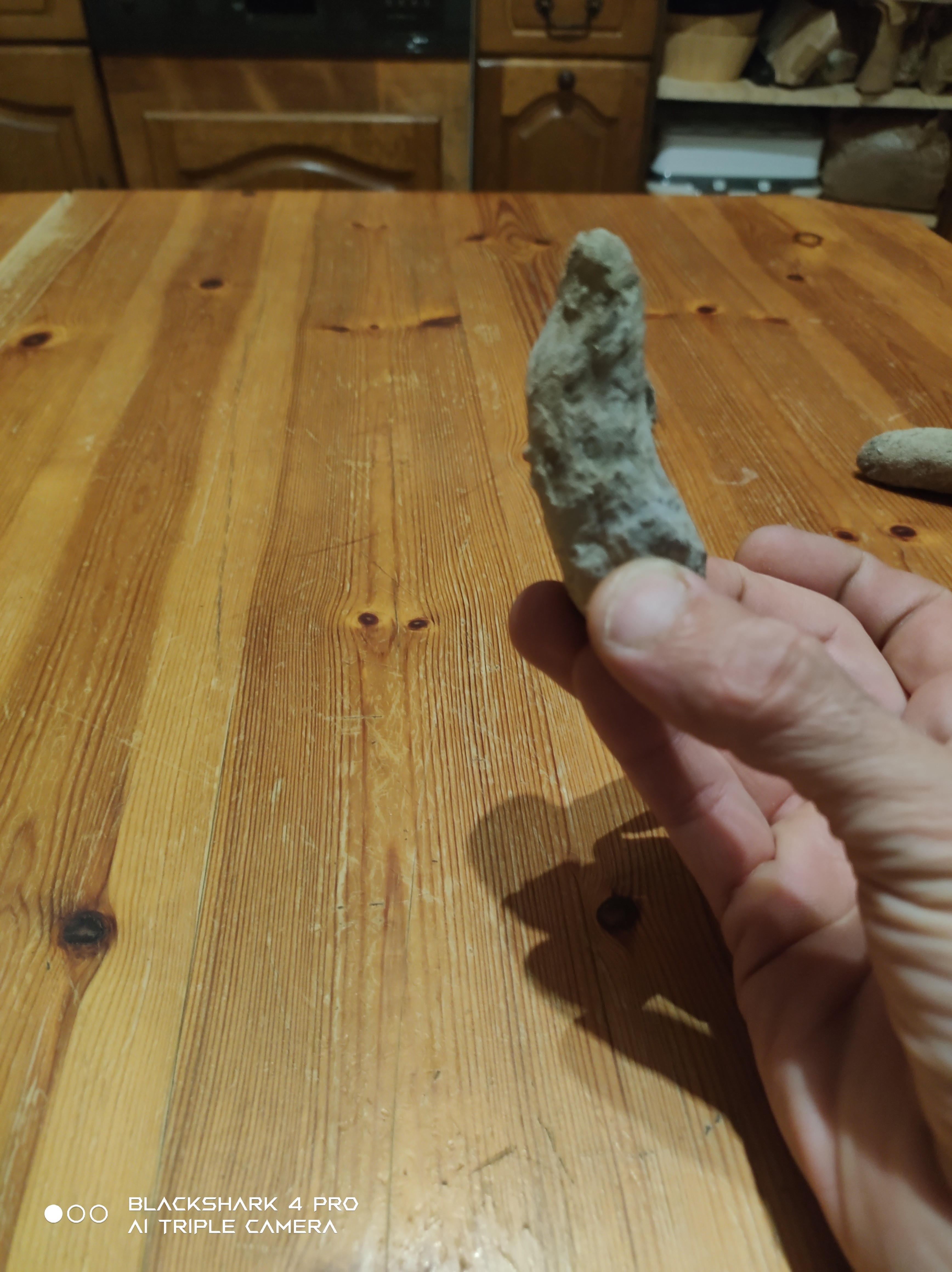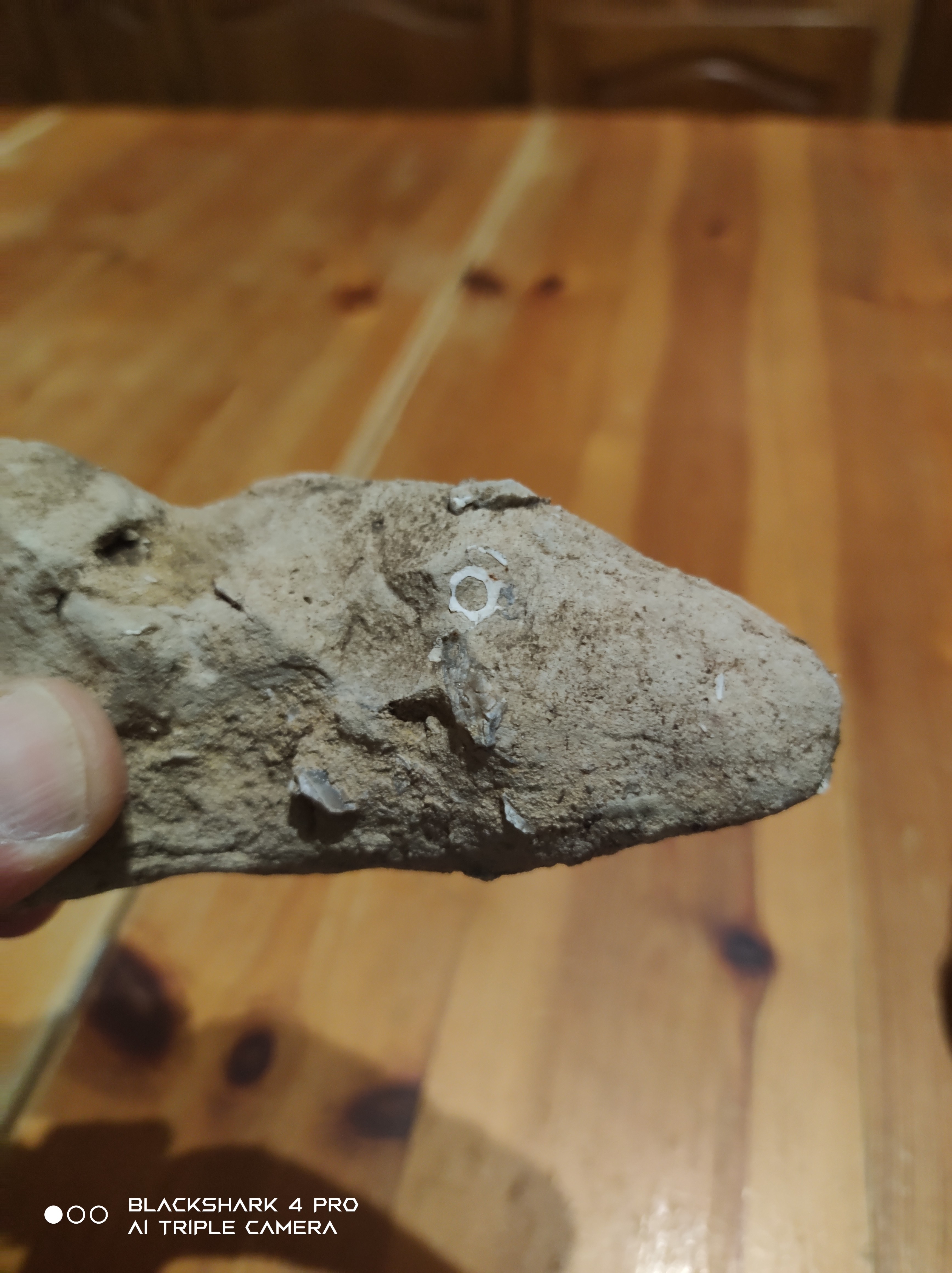 Étonnant quand même que la nature reproduise une forme similaire 3 fois, sachant que c'est sur le même site et que sur ce même site j'y ai trouvé encrines et différents bivalves (je suis bien sur un récif de zone calme et peu profonde, du jurassique- dévonien) avec présence de lumachelle, donc je reste nuancé sur votre réponse, je veux bien croire que le cerveau peut facilement interpréter mais le crochet est clairement visible et tout correspond il s'oriente vers l'arrière il est très fin et pour finir il est épais et s'affine pour se terminer en aiguille.