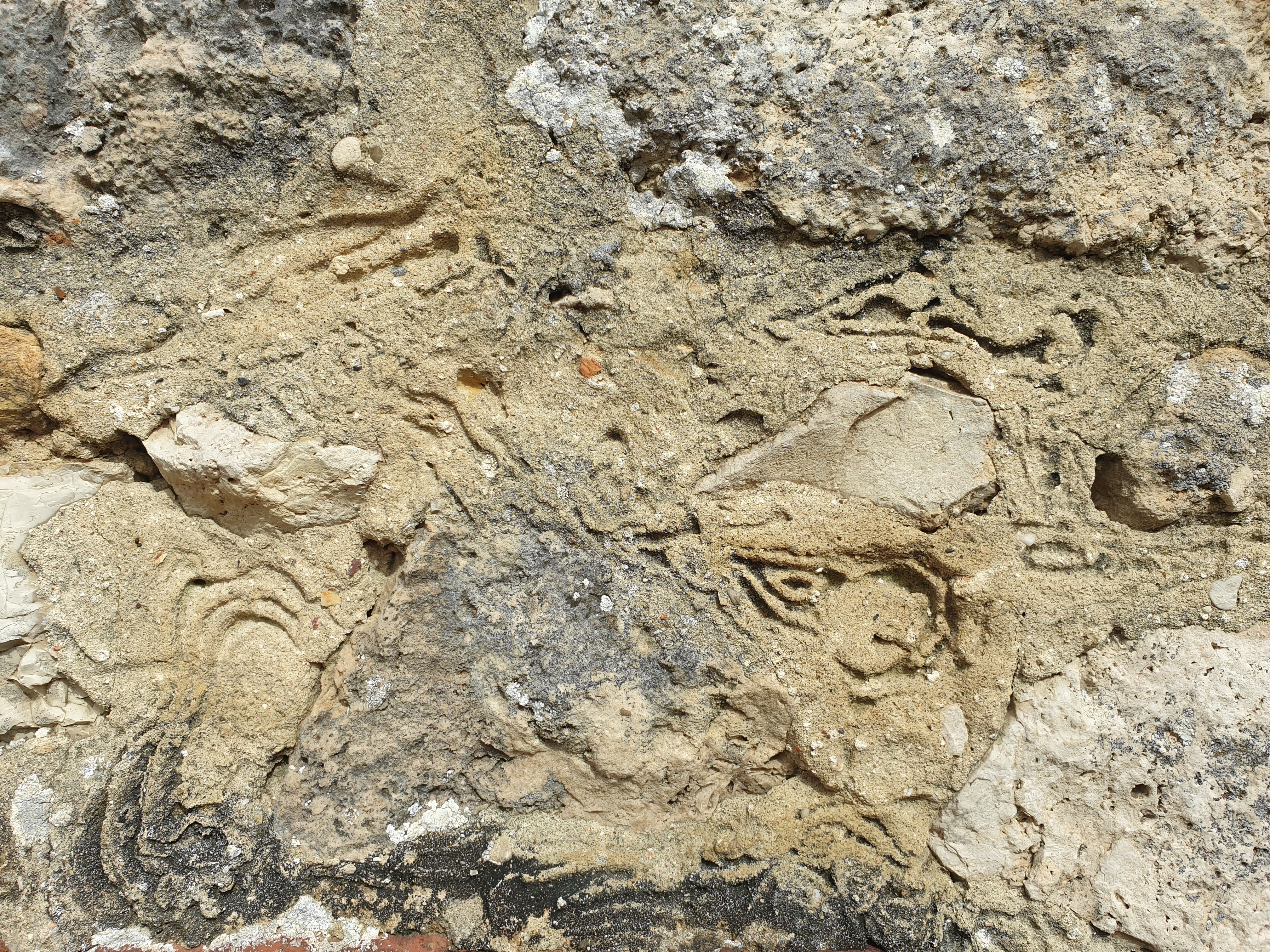 Donc nous avons la verticalité d'un mur en pierres du cru, et ces formes apparaissent  dans la partie "joints" de l'édifice.