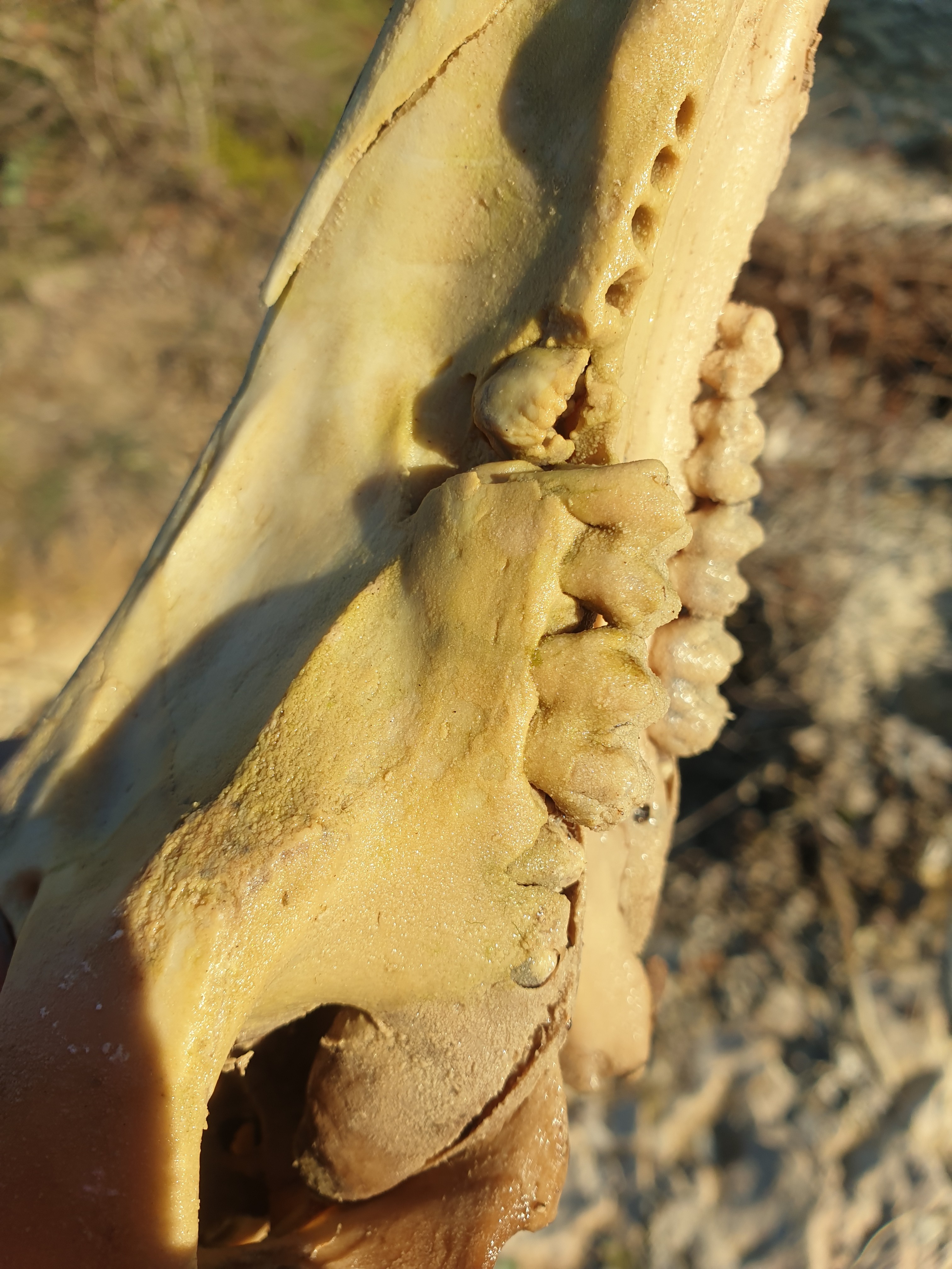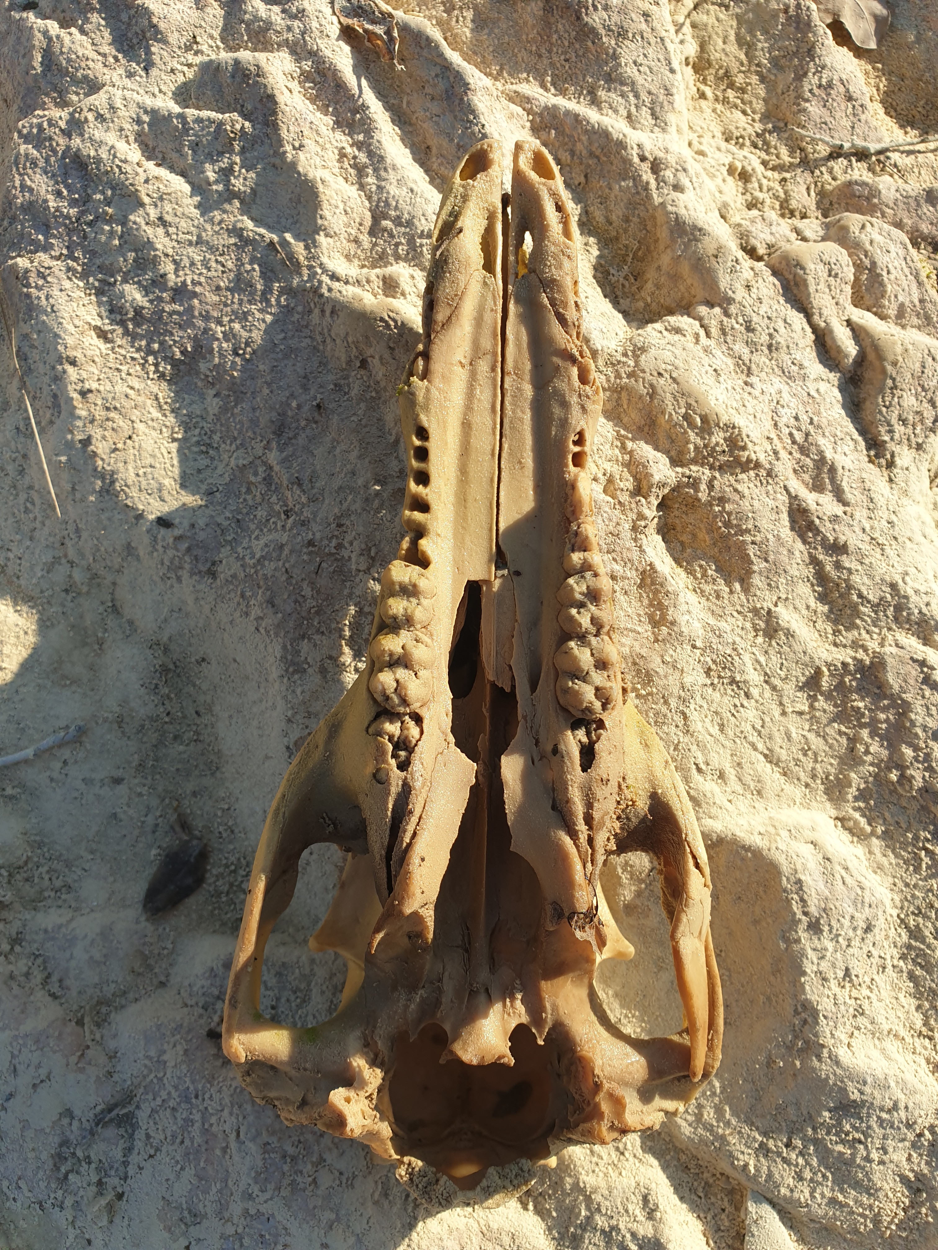 @Stazzian merci aussi . Oui pas fossile du tout. Trouvé en bord de ruisseau en garrigue calcaire .  Le crùne est cependant recouvert de calcite comme s'il avait séjourné sous une paroi calcaire ruisselante  ... Bonne continuation