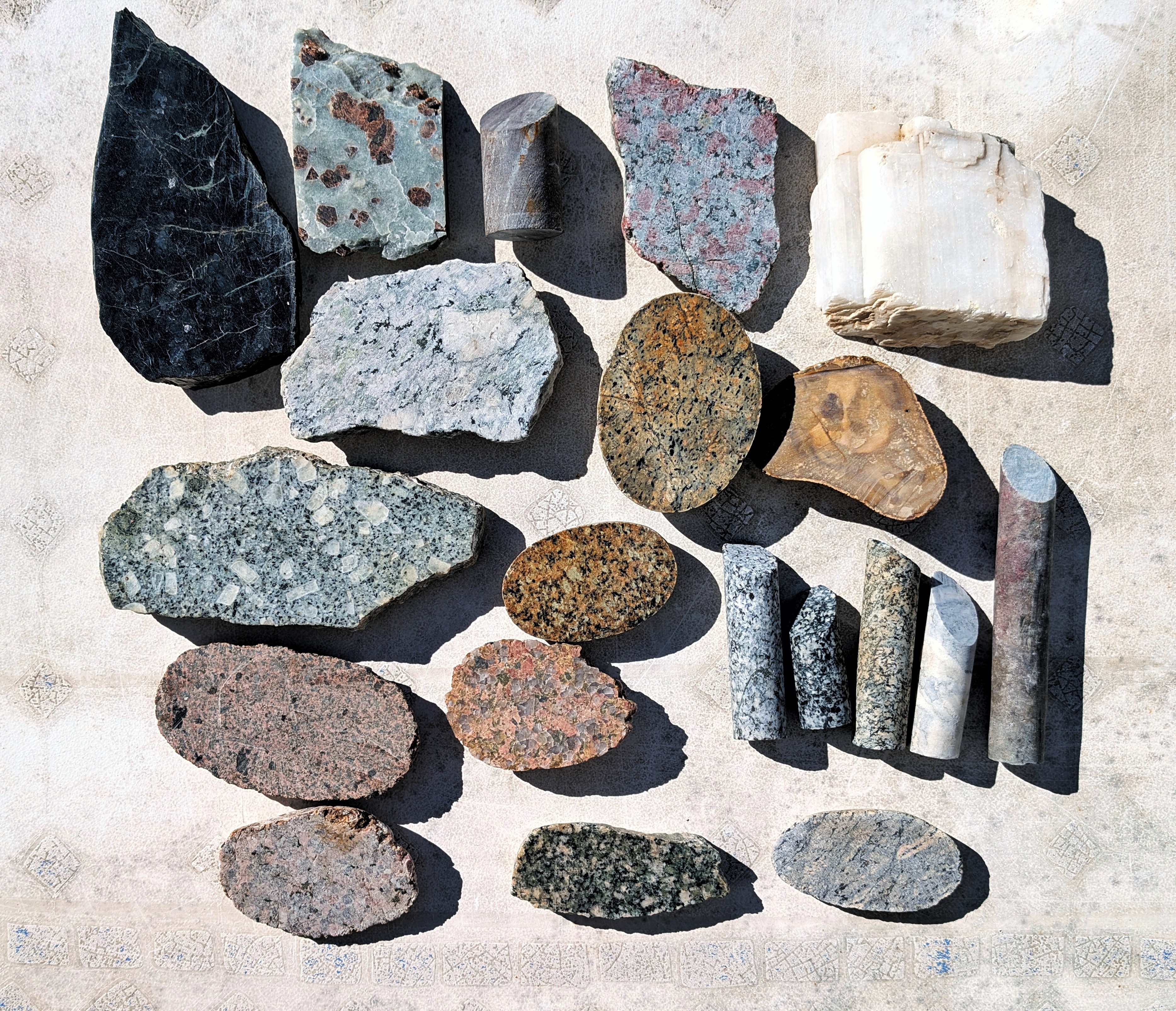 J'ai récupéré, au milieu d'une collection, un lot de de granites et autres roches, en "tranches" ou en carottes.