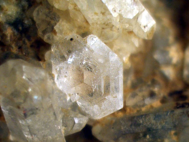 Les deux premières photos montrent la section du prisme parfaitement hexagonale (001).