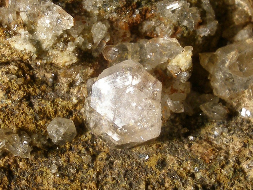 J'ai réussi à retrouver quelques apatites sur mes échantillons, certes pas aussi belles que l'échantillon dissout à l'acide, et j'ai fait une photo que voici.
