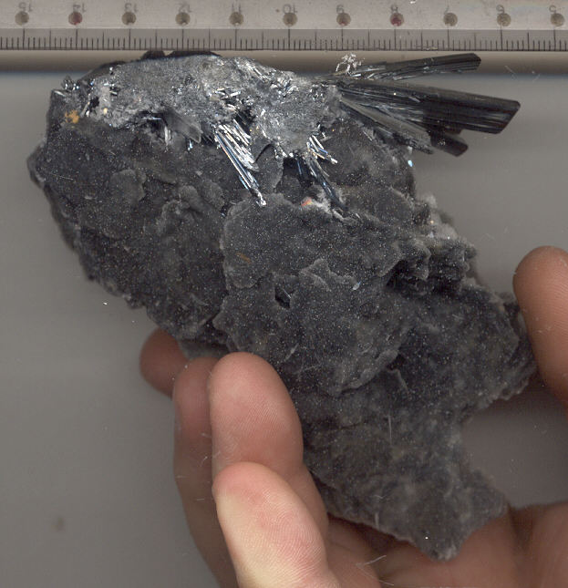 Stibine, mine d'Ichinokawa, Shikoku, Japon. Cristaux de presque 40 cm.