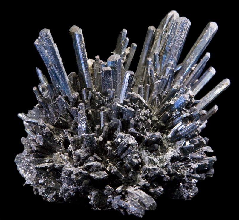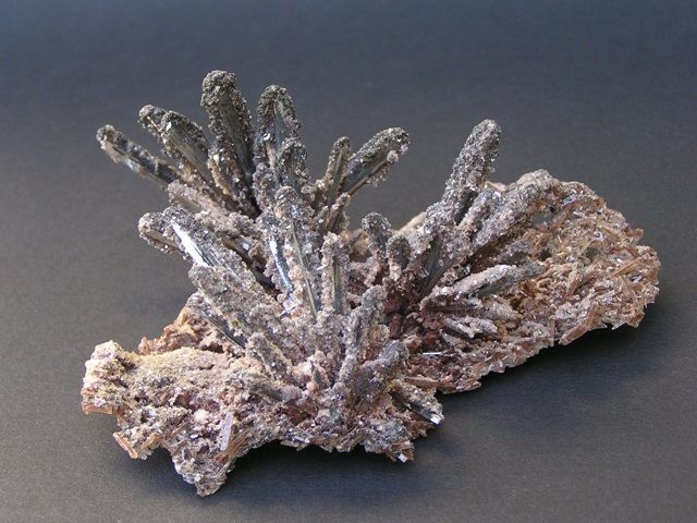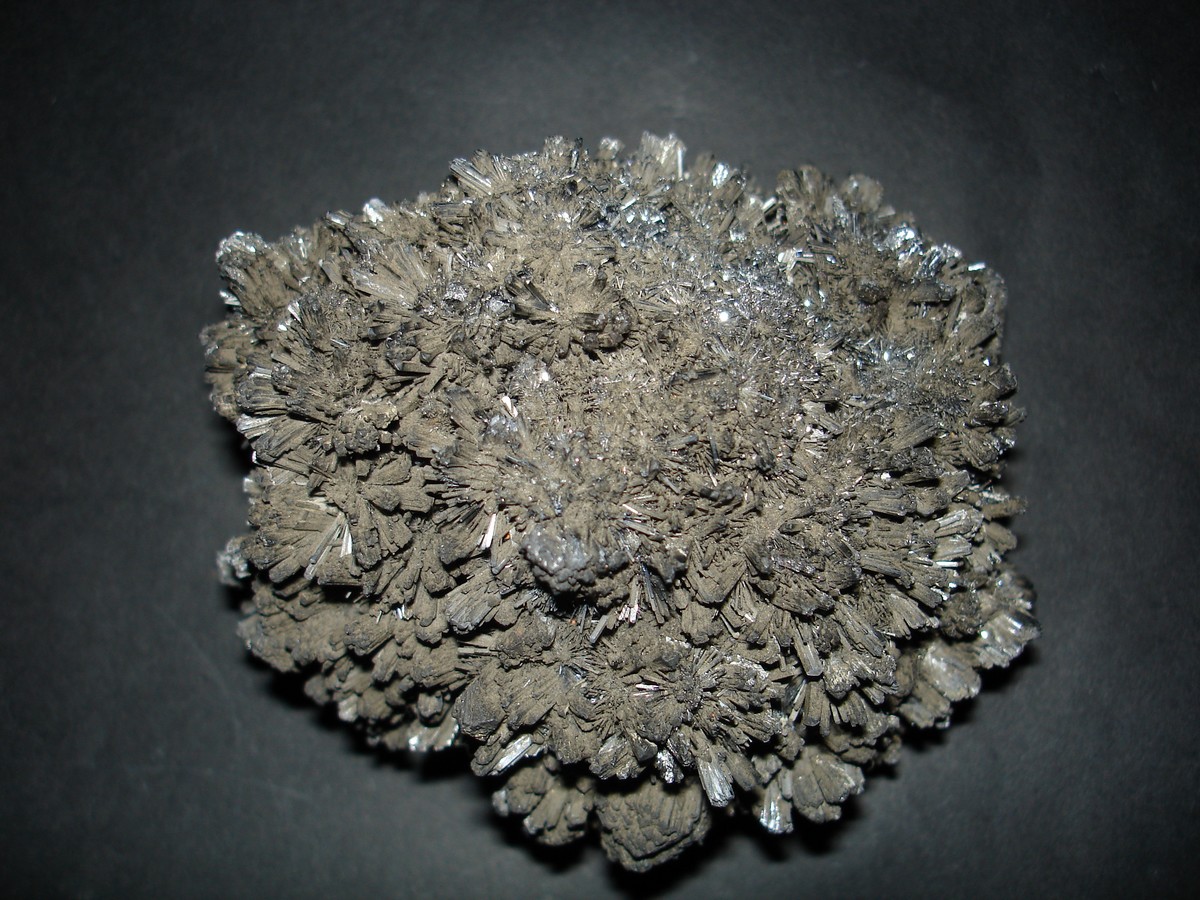 Photos de cristaux de Stibine, les gîtes de cette espèce minérale, un sulfure d'antimoine, et leur géologie, sa minéralogie et cristallographie, discussions et échanges autour de la stibnite.