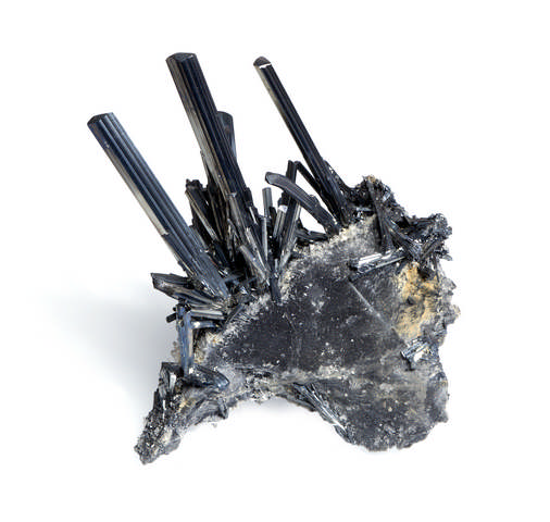 Définition Stibine : c'est un minéral (stibnite en anglais), du sulfure d'antimoine de formule chimique Sb2S3, les cristaux de stibine sont bleu-gris, gris, grisâtre, noir, avec un éclat métallique, mats à brillants, ils sont prismatiques et très allongés ("baton" ou "crayon") avec de nombreuses faces sommitales. C'est un minerai d'antimoine, connu depuis l'antiquité, il est évoqué en 77 par Pline l'ancien. Le nom est créé par le minéralogiste français François Sulpice Beudant, à partir du grec « stibi » ou du latin « stibium». Avec une température de fusion faible, elle fond à la flamme d’une bougie en la colorant en bleu. Du point de vu de la géologie, la Stibine se rencontre dans les filons hydrothermaux à travers un large éventail de températures. En France, on a exploité la Stibine à la mine de La Lucette en Mayenne, à la mine de la Forge à Leyvaux et à celle d'Ouches à Massiac (Cantal), à la mine des Brouzils en Vendée et à celle de Ty Gardian à Kerdevot dans le Finistère (Bretagne), à La Boussole (Aude) ou encore à La Bessade (Haute Loire). Les plus grands cristaux connus, jusqu'à 60 cm, viennent de la mine d'Ichinokawa, Shikoku, au Japon, ils ont été trouvés au XIXème siècle. La Chine a produit dans les années 1990 et 2000 de superbes spécimens de collection.