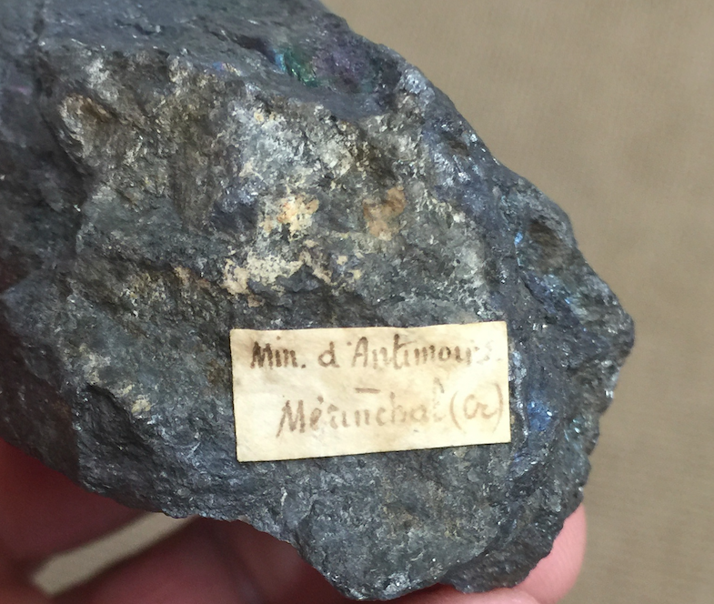 Remarque très pertinente, la détermination est un peu exotique. Dans l'étiquette (soignée) seule la localité est juste. Je mettrai en ligne des photos des minerais de Pontvieux, ils sont différents.