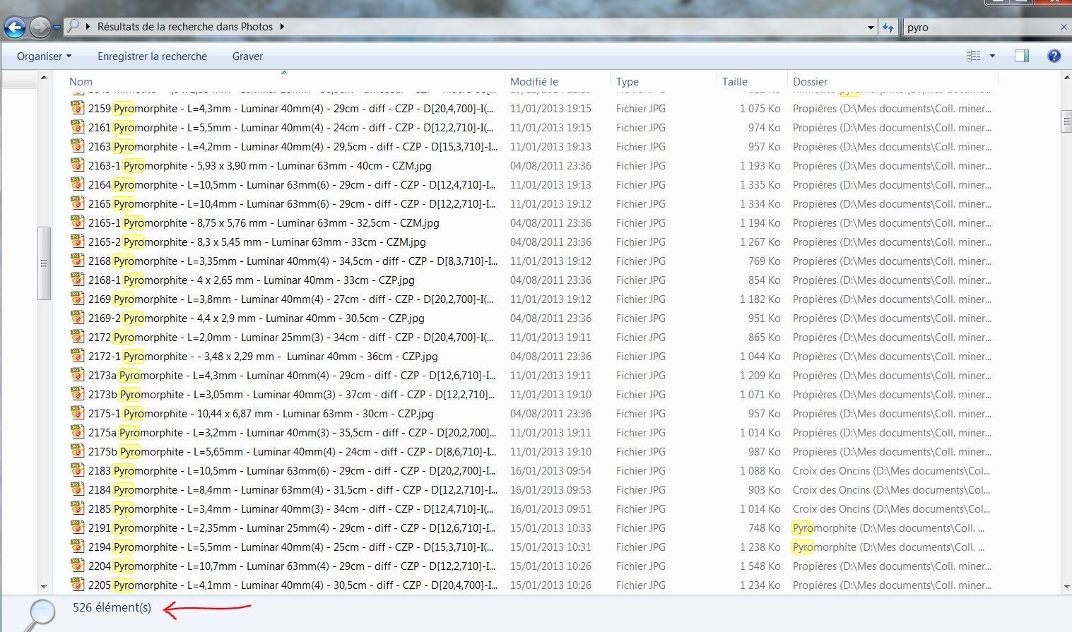 Quand j'indique pyro 3 c'est pour présenter sur le forum sinon elles ont un  archivages/  catalogue. Je ne photographie pas non plus tous mes minéraux.