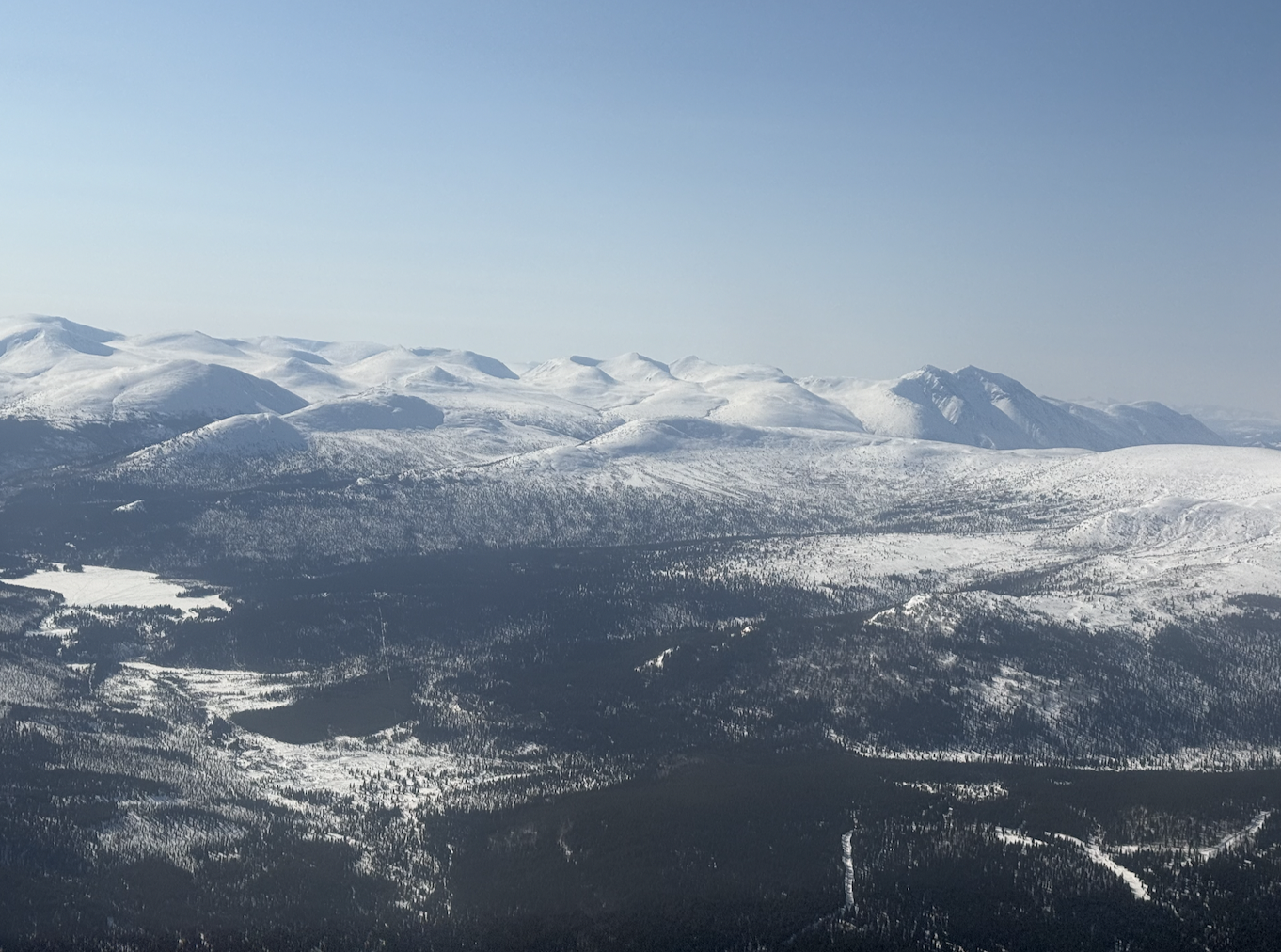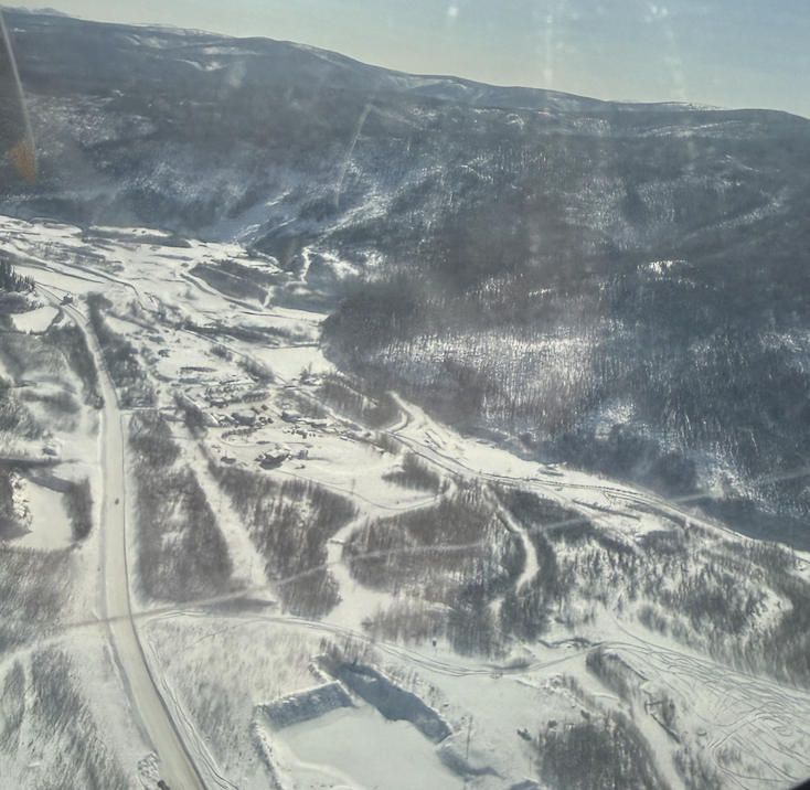 vue d'avion sur les 650 km de la route Whitehorse - Dawson ( en voiture)