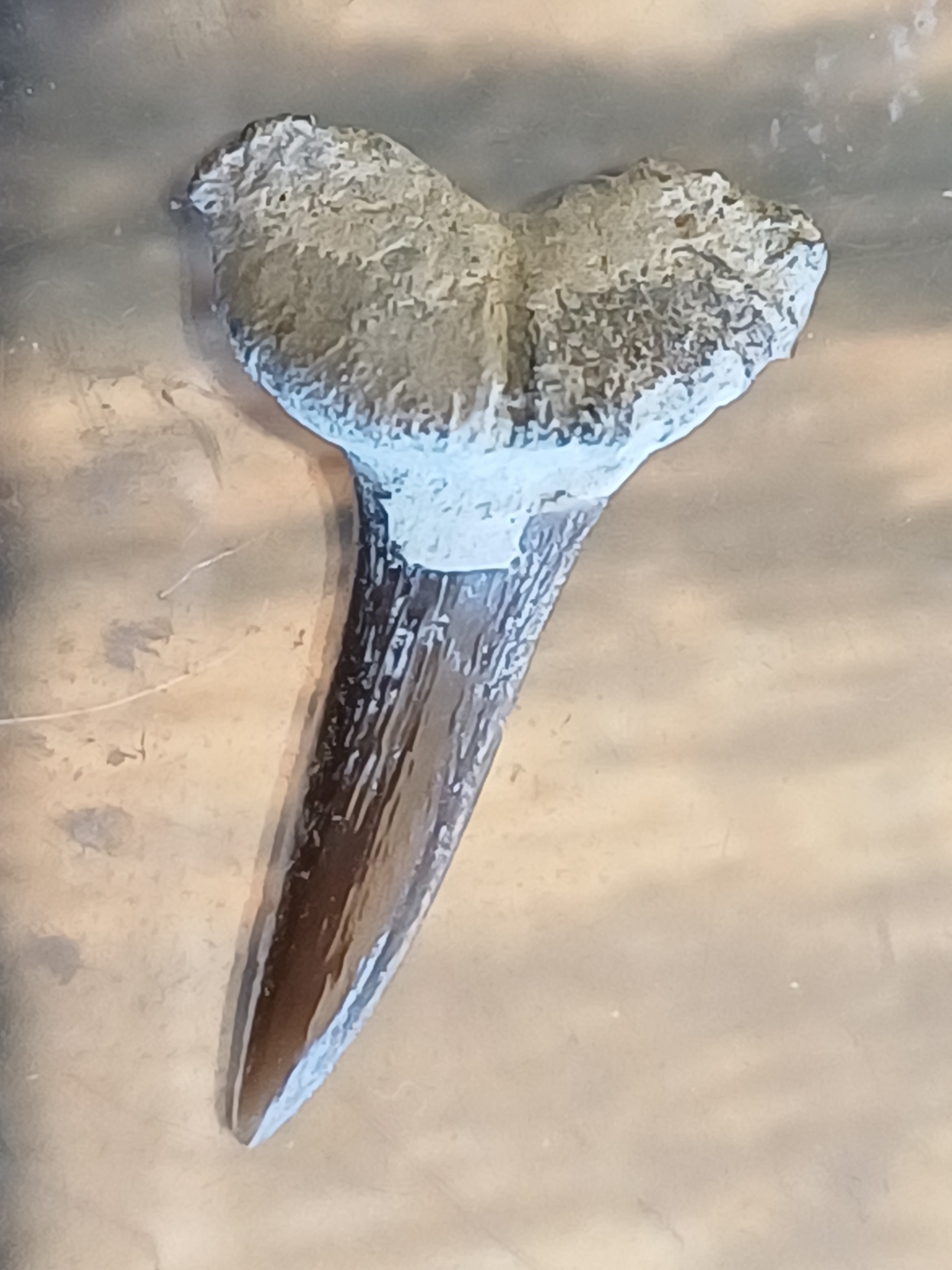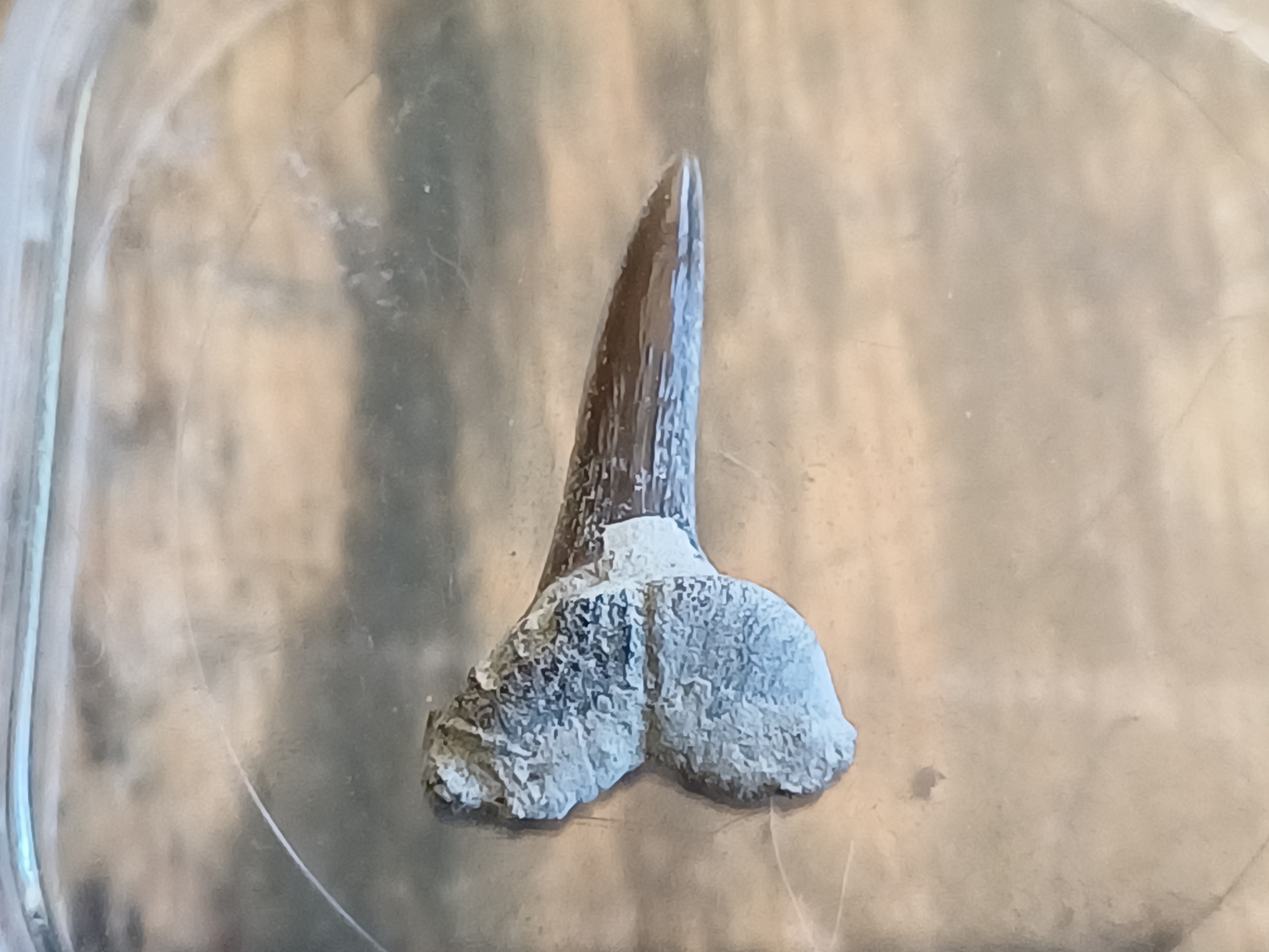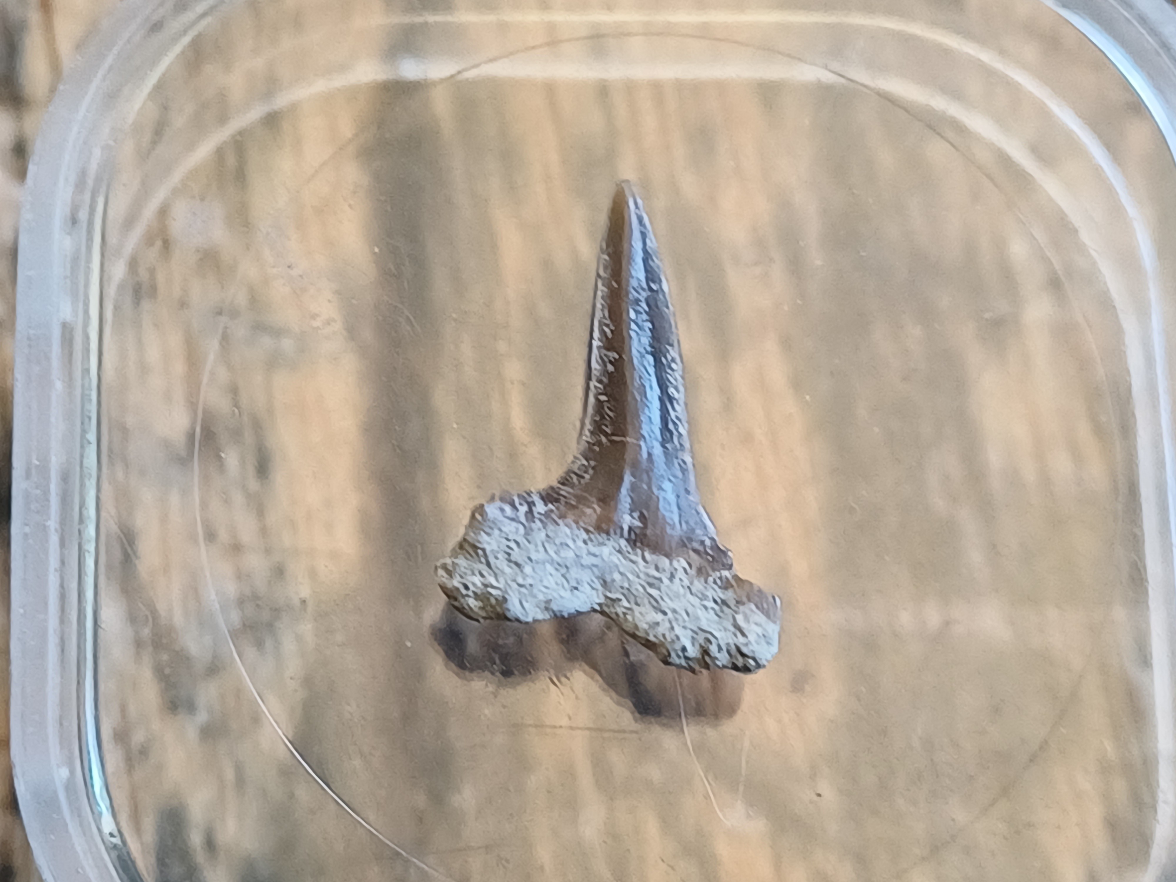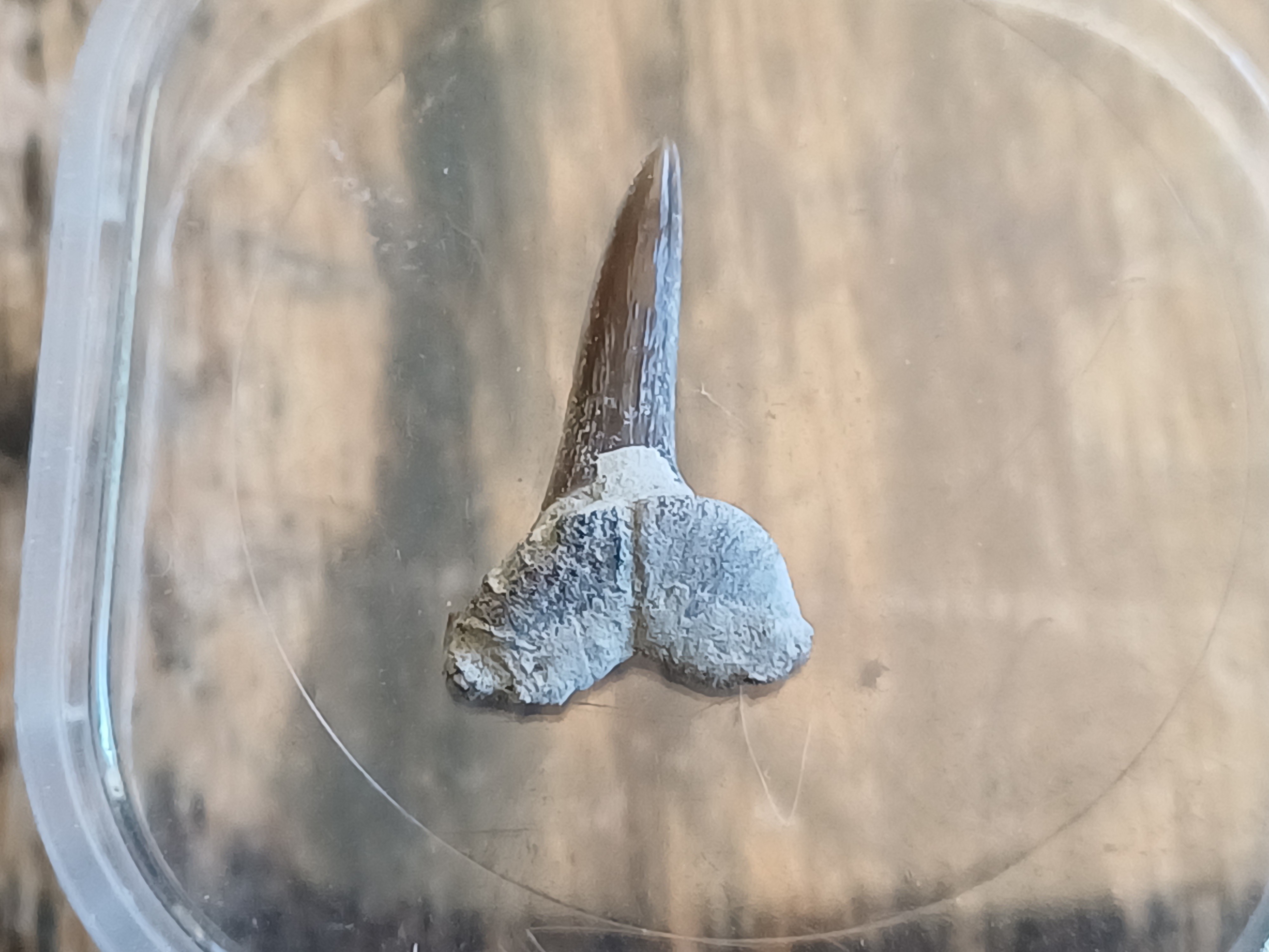 On m'a récemment donné un lot de fossiles contenant notamment cette dent de requin trouvée dans le Barrémien des Alpes de Haute Provence, proche de Redortier.