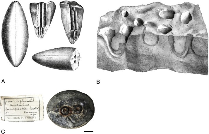 Ça ressemble pas trop. D'autant plus que je vois qu'au jurassique il n'y a n'avait plus. Après je dis moulage externe - je choisis peut être mal le terme. Je pense que la dent s'est dissout, n'est resté que la cavité qui l'abritait, et elle s'est fait remplir par le sédiment - est-ce possible ? Merci.