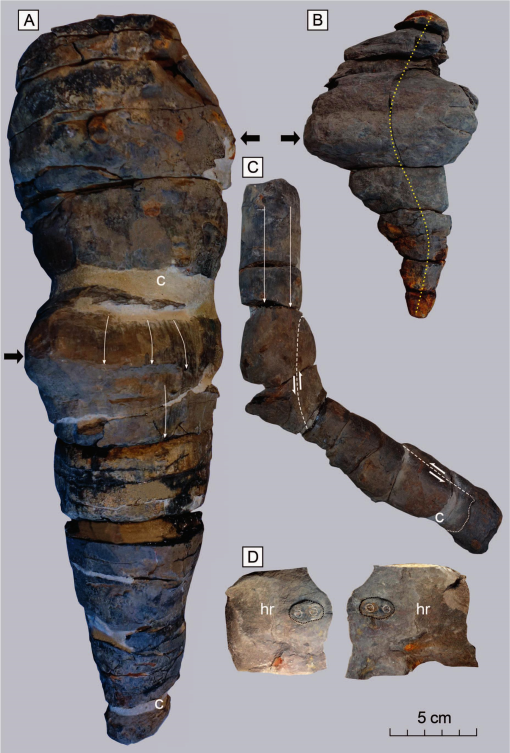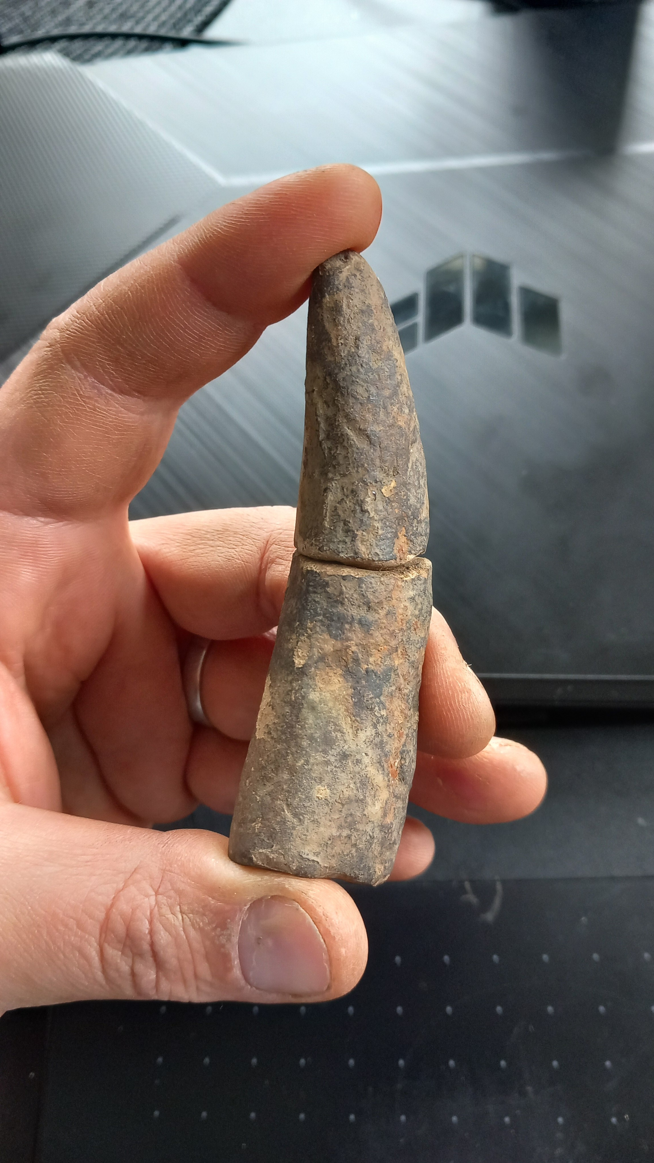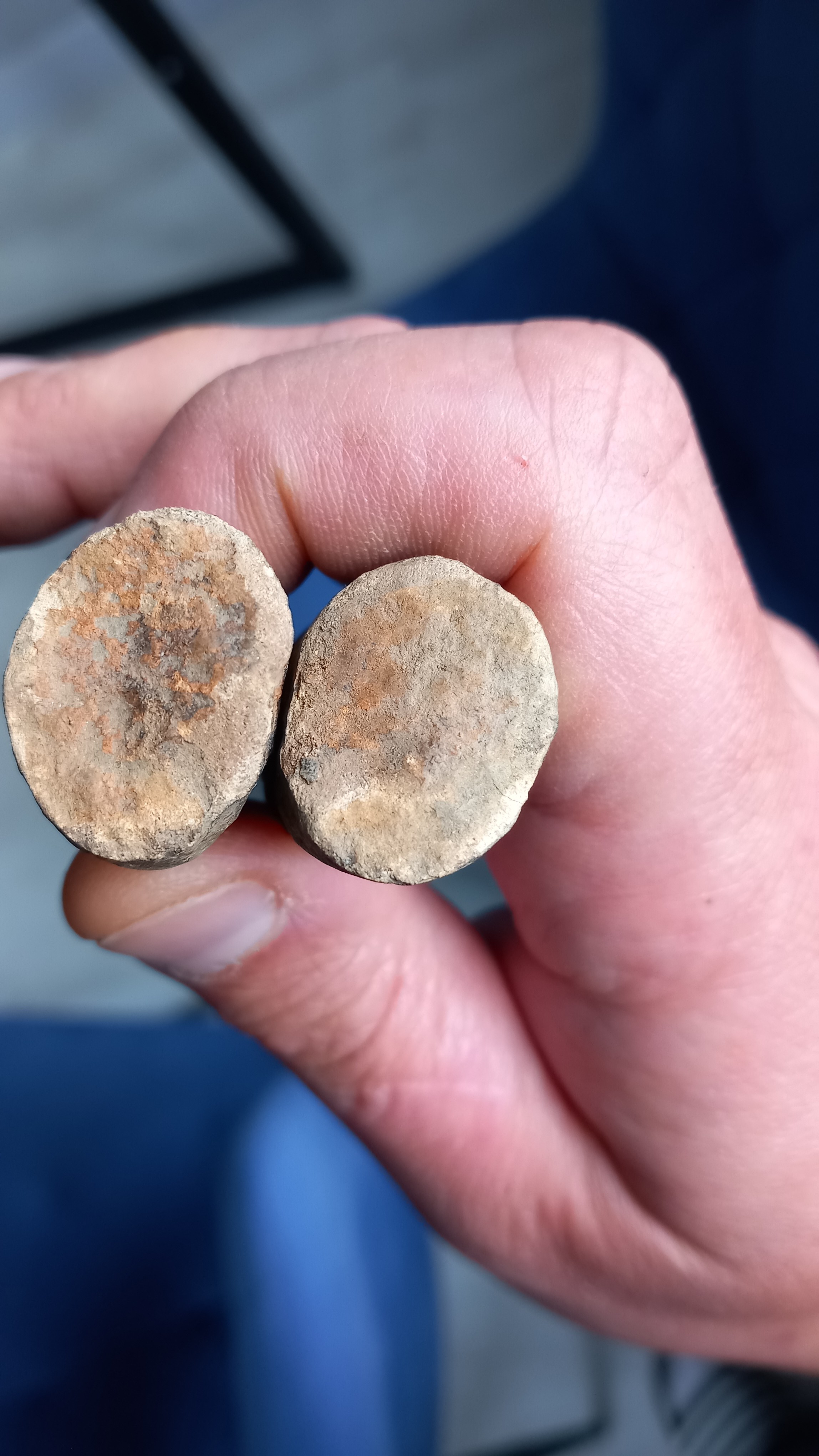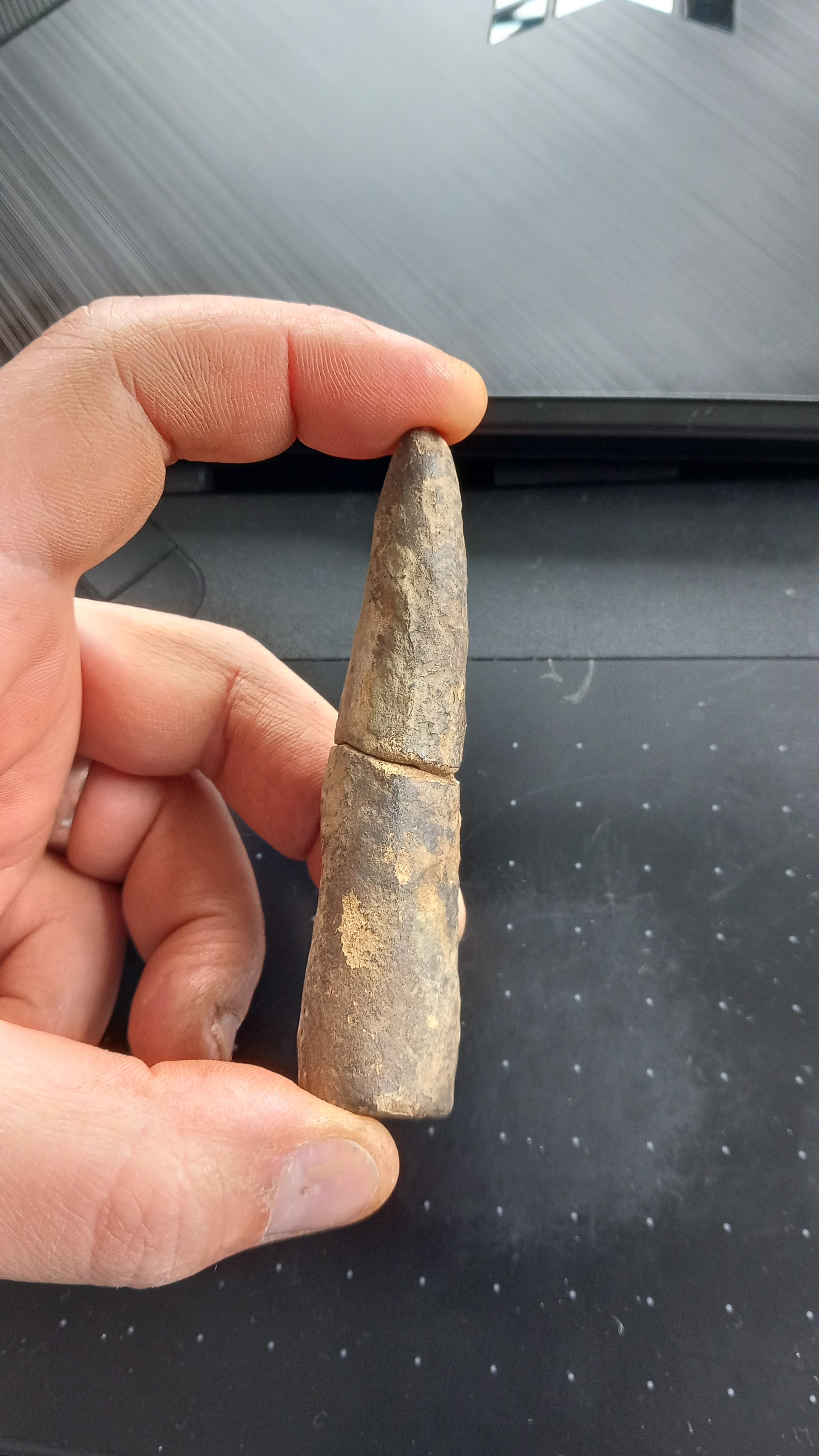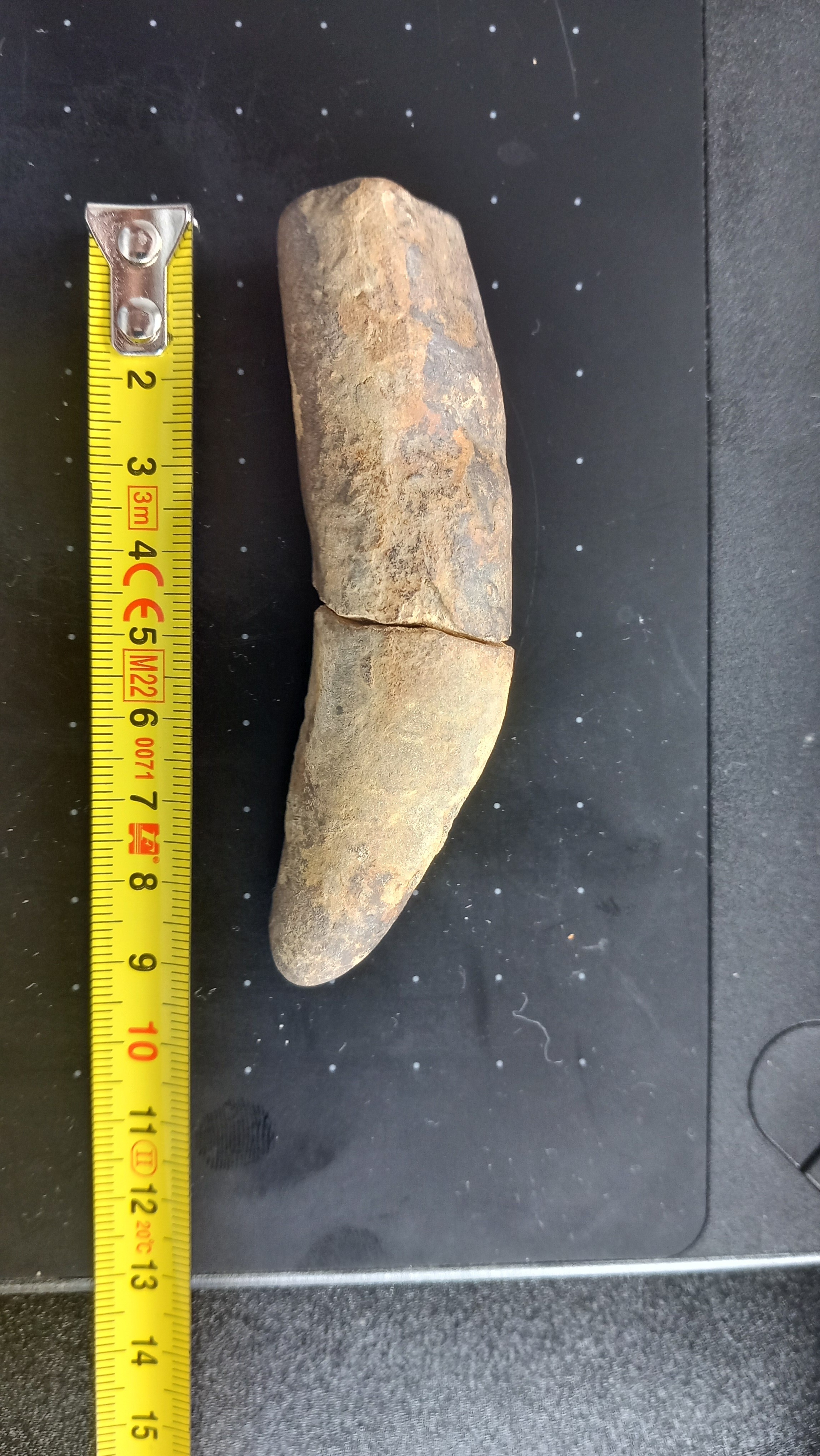 Bonjour. Il y a à peu près un mois, j'ai trouvé ceci dans les dépôts de pliensbachien à Turenne (19). L'objet étaient dans les couches des marnes très fines et fragiles (je ne suis pas géologue). Le nom exactes de la couche : "Domérien supérieur. Calcaires roux bioclastique" La pierre était déjà cassée en deux et ne ressemble à aucun fossile que j'ai pu trouver auparavant. J'ai en ma collection quelques terriers et bélemnites : ce n'est pas ça non plus. On m'a suggéré un moulage interne d'une dent (?). Je voulais savoir si quelqu'un pouvait me le confirmer ou proposer d'autres hypothèses ? Merci et bonne journée !