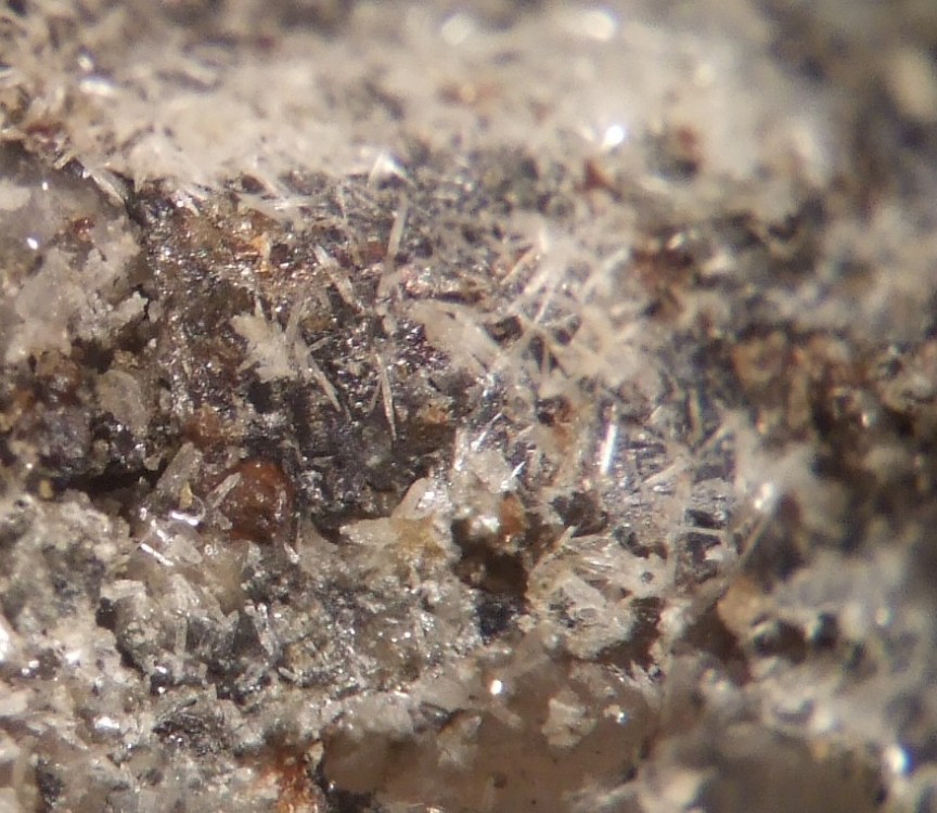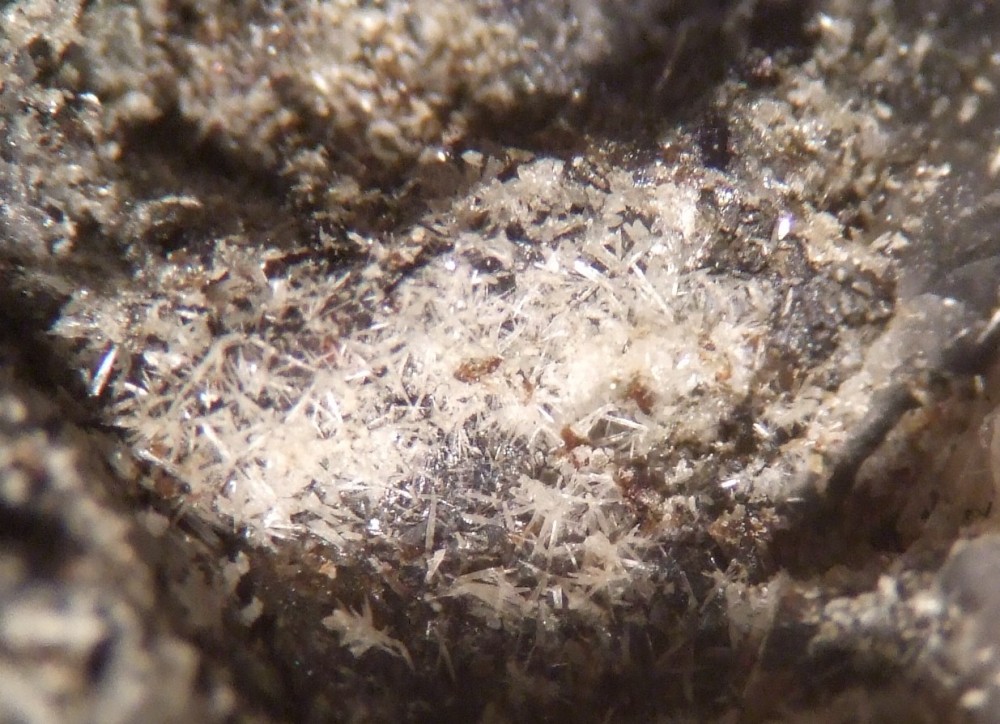 On dirait du sucre mais c'est pas avec des angles droits ; et pour cousin, çà ne réagit pas (sûr de sûr) à l'acide (donc pas calcite ). Les cristaux font 1 mm environ !