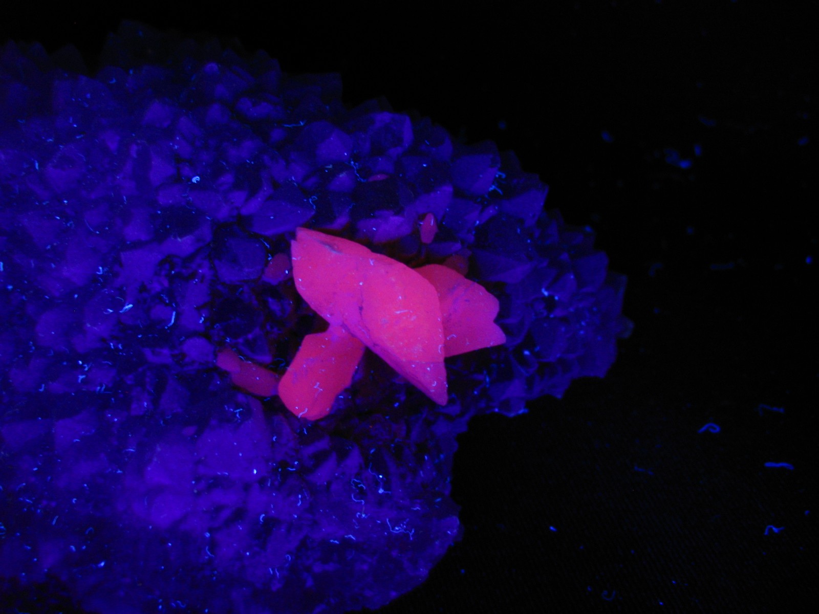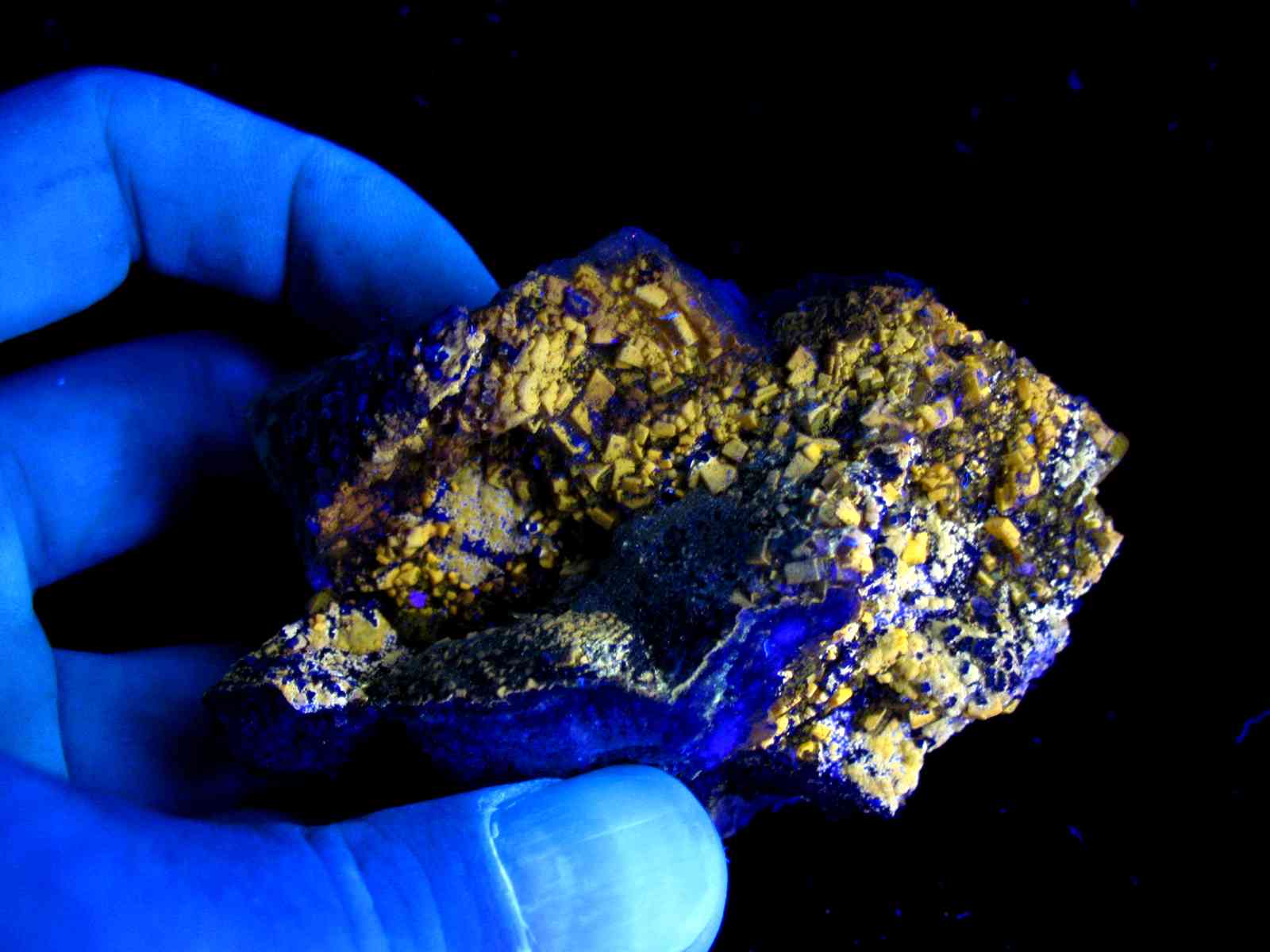 la lumière noire du commerce (rayonnement dans les violets-et proche ultraviolet) est moins efficace que les lampes UV courts ! En UV longs, moins de minéraux réagissent ! Mais les lampes UV courtes sont assez chères !