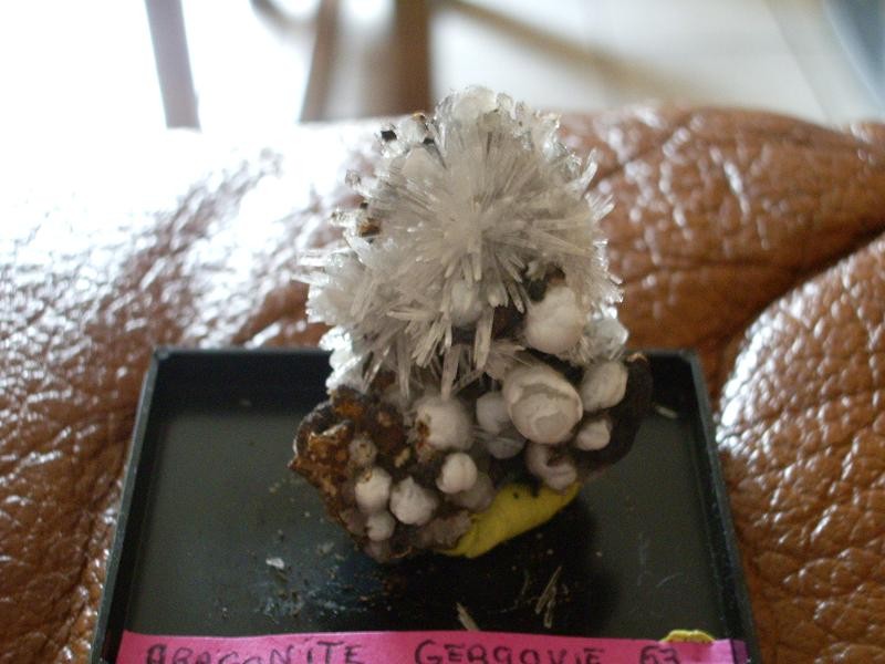 Oui, c'est possible que ce soit de la calcite, la différence aragonite/calcite est tellement ténue. J'ai une encyclopédie minéralogique en dvd (mineralia pour ceux qui connaissent) ou l'on voit les deux cristallisations dites "sphérolithique" et en "gerbe" sur le même échantillon, comme à Gergovie ; j'ai toujours été persuadé que c'était tout de l'aragonite, mais je peux me tromper, si quelqu'un à des informations la-dessus qu'il/elle n'hésite pas...