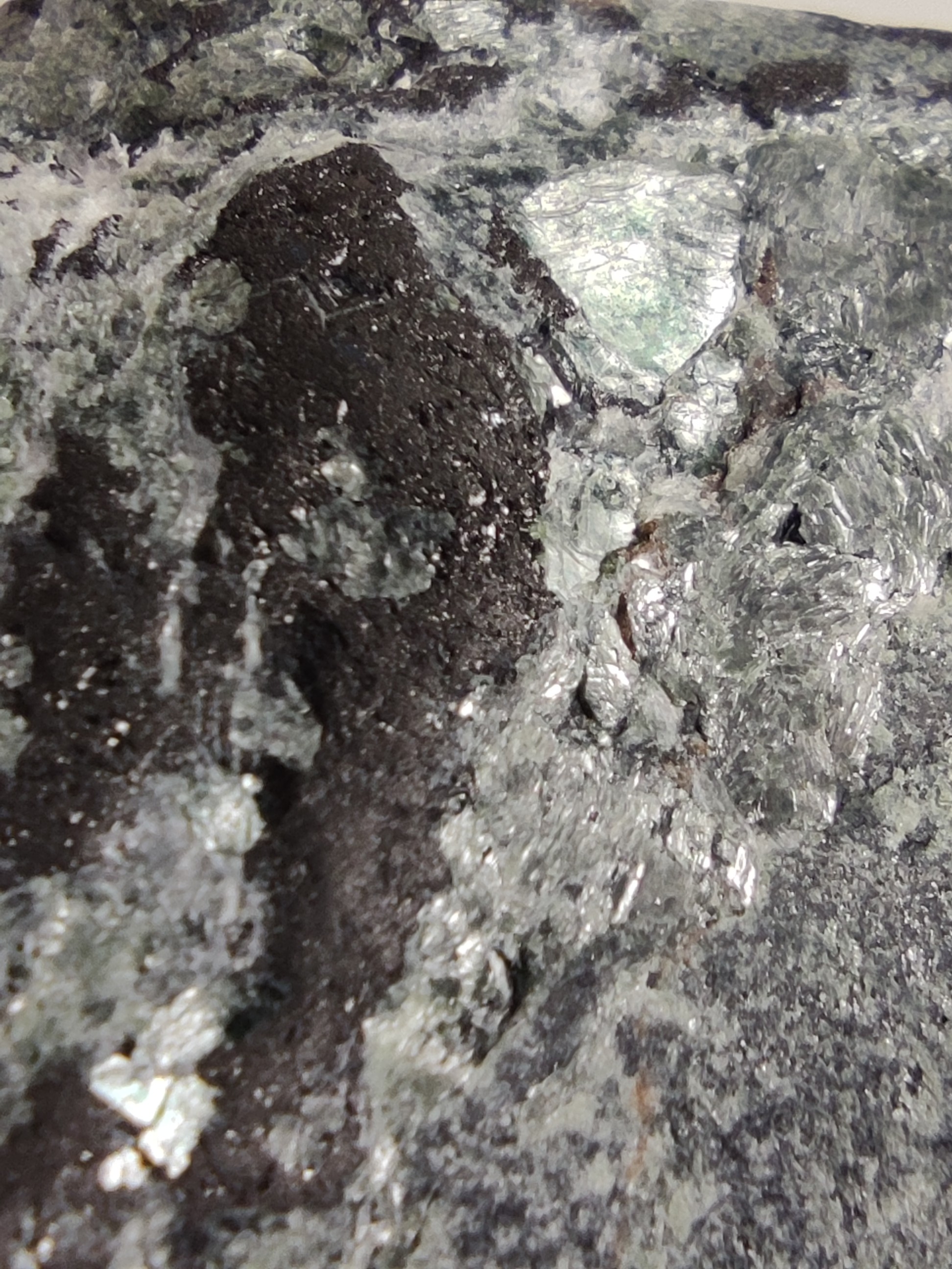 La photo ne rend pas bien les couleurs, c'est en fait très argenté. A la loupe on dirait des feuillets comme la molybdénite.