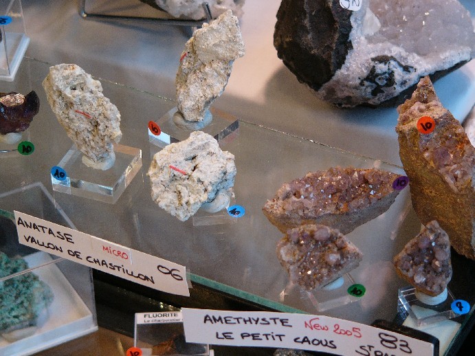 :coucou!: ouai pas mal, :exclamation: c'était ou celle ci, au parc phoenix, sur la prom :question: je ne me souviens pas des vitines, mais ça devait etre en 2006/07, je n'y suis pas aller, ouai :exclamation: pyrite d'aiguebonne je dois avoir une plaque d'une 10zaine de Cm, et l'amethyse de St-Raph, quelques petites pièces, quand a l'anatase, j'en ai une aussi et c'est le copain qui a trouvé le site pour la 1ere fois qui me l'avait donné, le reste fluo,baryte, et autre c'est fréquent sur cette bourse, je crois que gurdil a raison, ça manque de motivation et de jeunesse, dommage, c'était magnifique avant :triste: