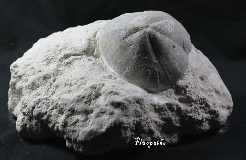 Voici un micraster sur gangue (craie) après dégagement (cf plus haut, bien que sur la photo de l'ensemble, je l'avais déjà bien dégagé, à l'origine seul un bout du test apparaissait !)