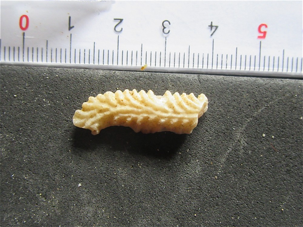Je ne suis pas tout-à-fait convaincu de ma détermination pour Pterynotus (s.str.) tricarinoides. Je ferai de meilleures photos et je demanderai l'avis sur le forum. Elle ressemble quand même pas mal au dessin de Deshayes.
