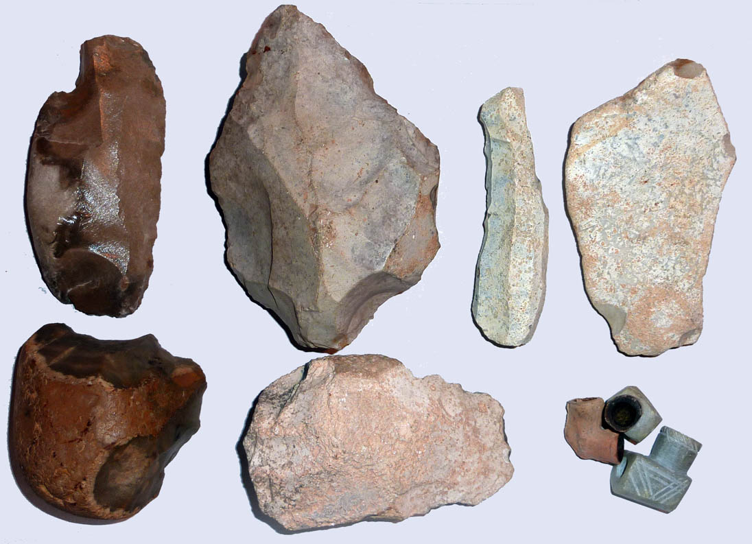 Ci-après: des cailloux taillés, (et quelques débris d'œufs d'autruche)