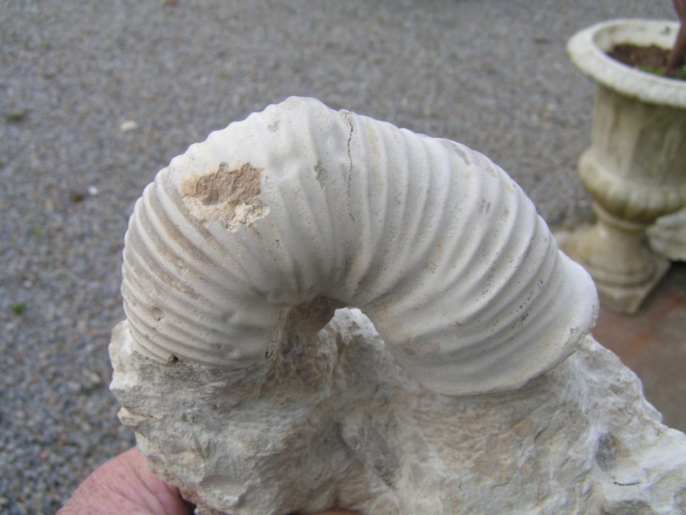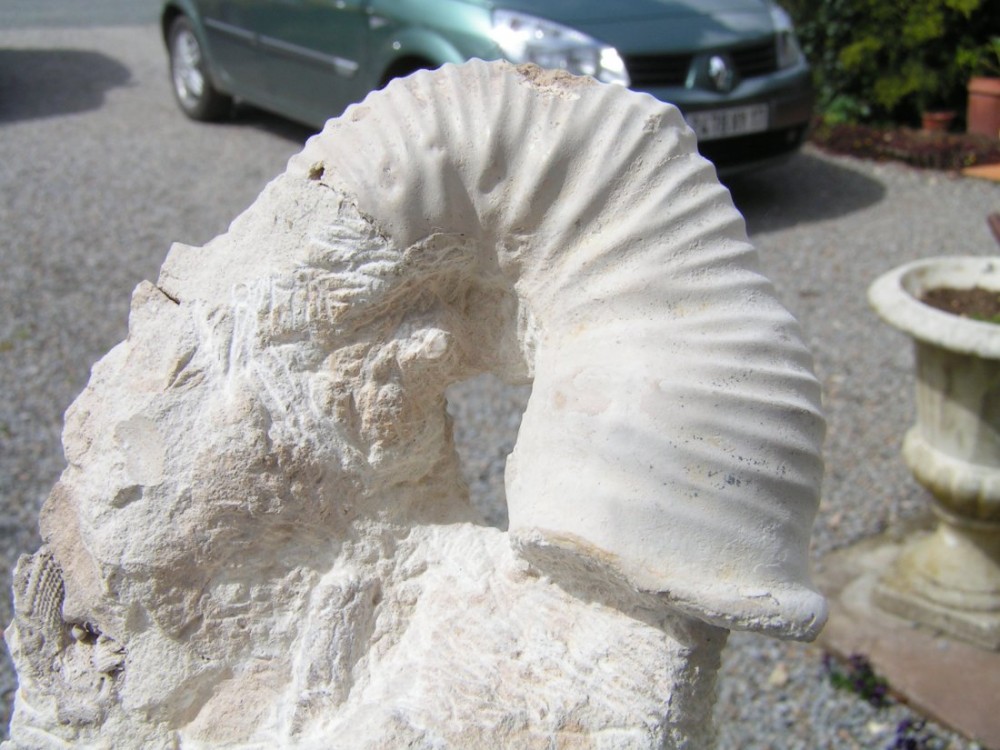 A priori, il s'agit d'une partie d'Ammonite (ça c'est la partie facile), peut-être de celles qui sont "déroulées". Mais quant à son identification... je préfère laisser les spécialistes s'exprimer.